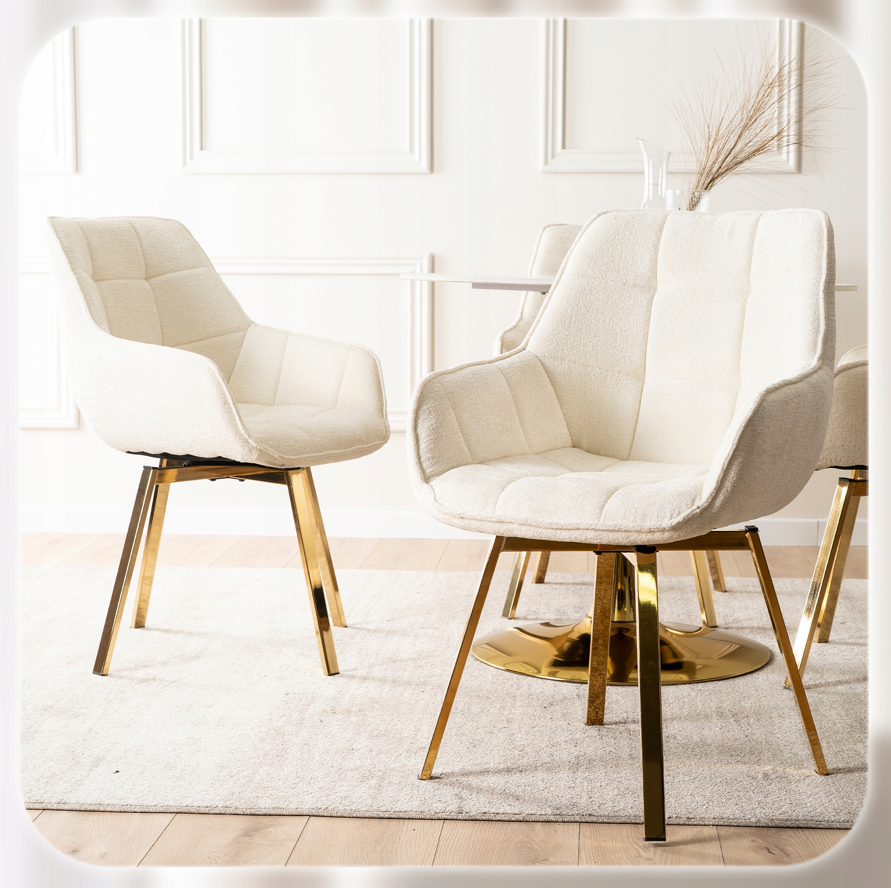 ✨ Krzesło Tapicerowane Obrotowe 360 Do Jadalni Kuchni Salonu Kremowe MIA