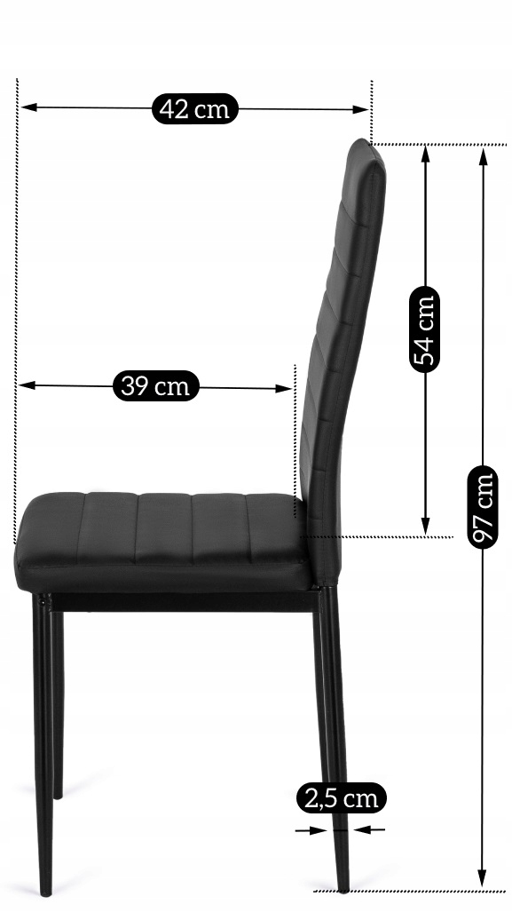 Subtelne nogi z malowanego proszkowo metalu są proste i lekko zwężane ku dołowi – to większa wytrzymałość i nowoczesna estetyka. Spójna czarna kolorystyka dodaje elegancji.