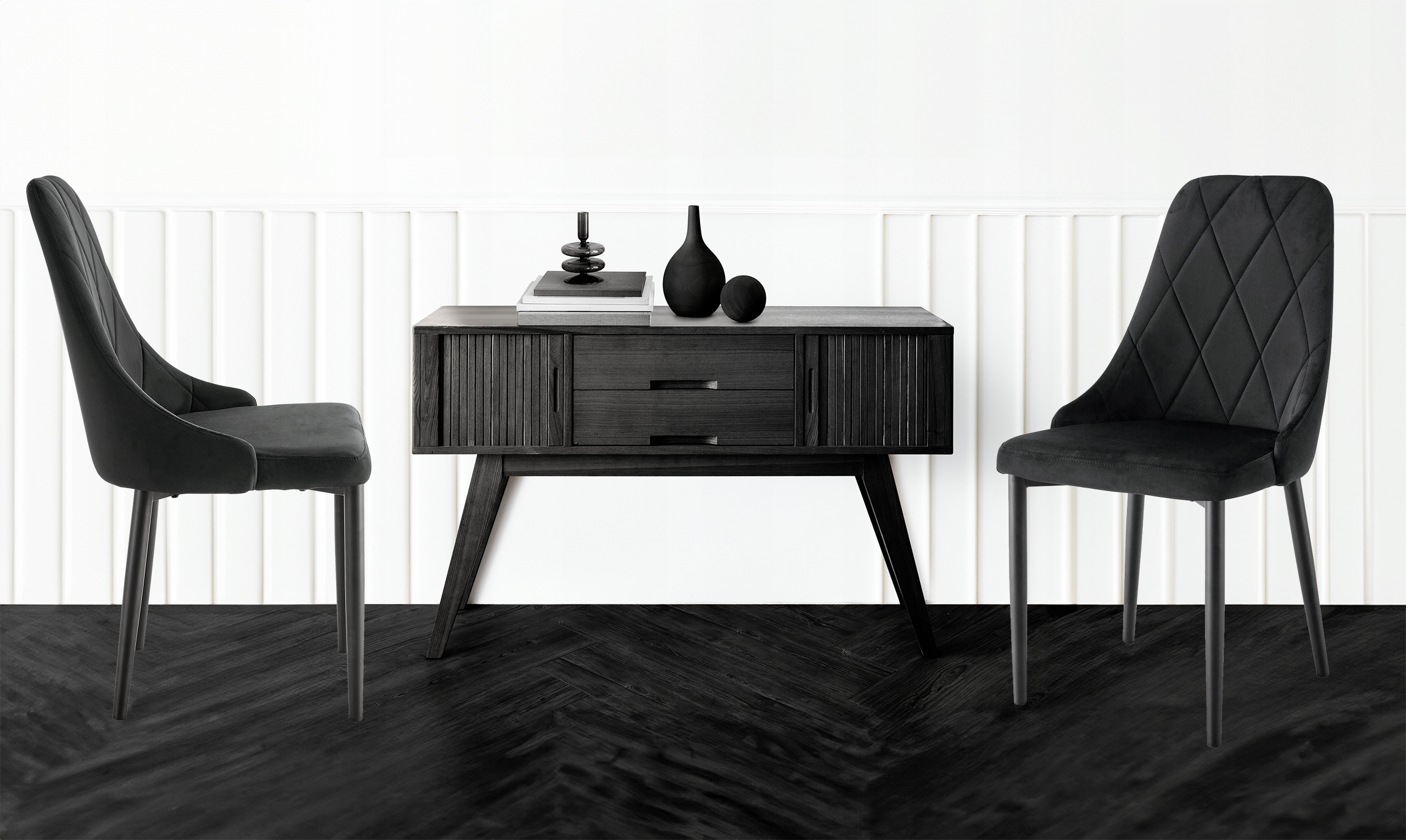 JAKOŚĆ PREMIUM KRZESŁO TAPICEROWANE DO SALONU JADALNI STYL GLAMOUR EVA 2 KOLOR CZARNY