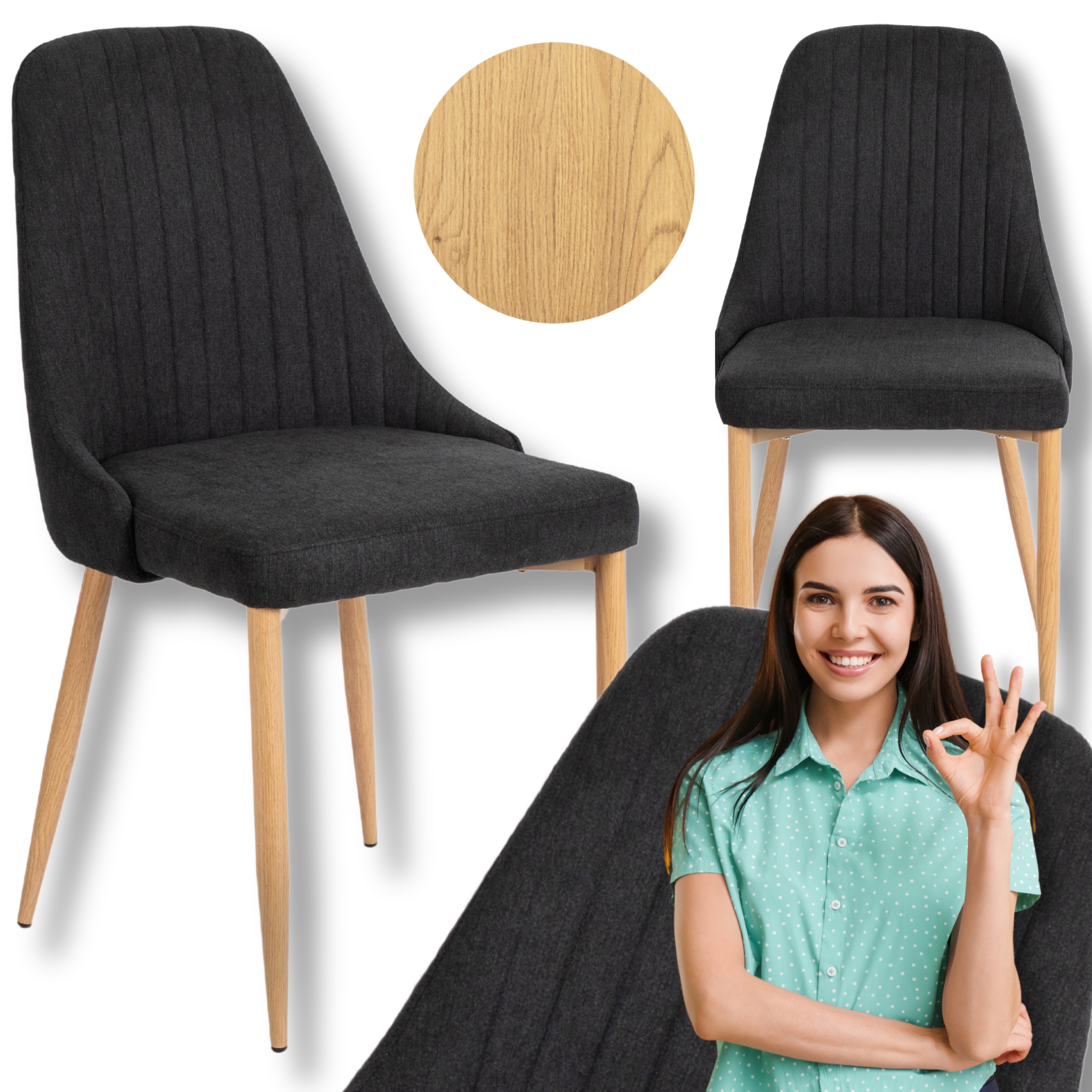 Krzesło Skandynawskie Tapicerowane Do Salonu Jadalni Kuchni Czarne TORINO ⭐⭐⭐⭐⭐
