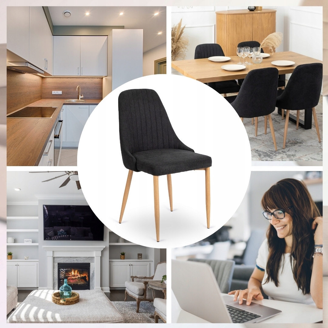 Krzesło idealnie pasuje do nowoczesnych kuchni, jadalni oraz eleganckich salonów i pracowni.