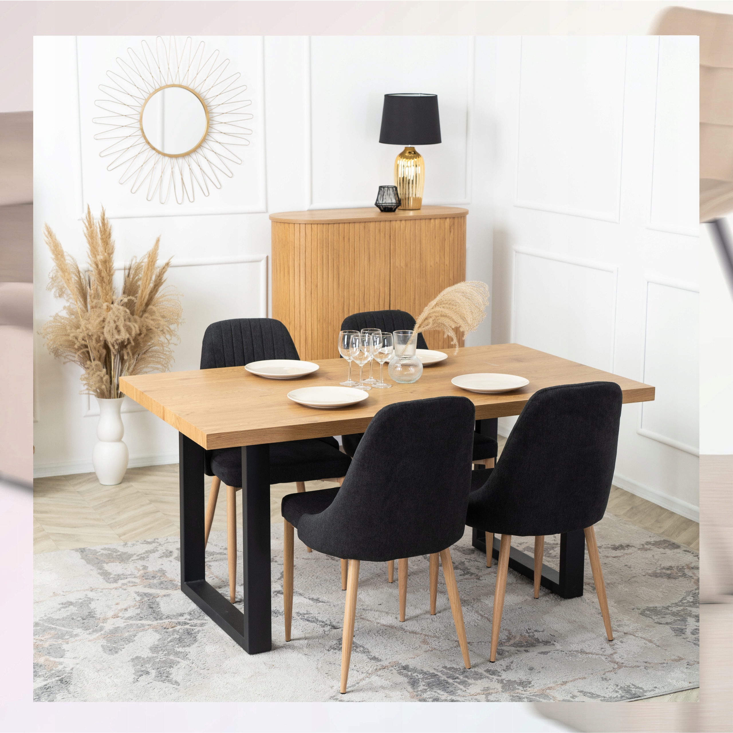- Krzesło Tapicerowane TORINO w kolorze czarny - złoty dąb