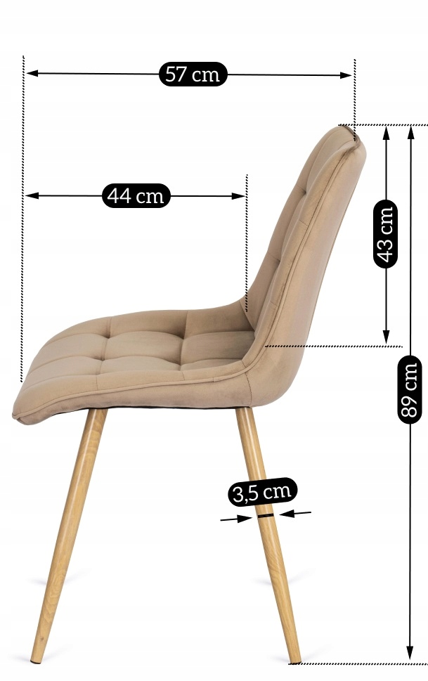 - Głębokość krzesła: 57 cm