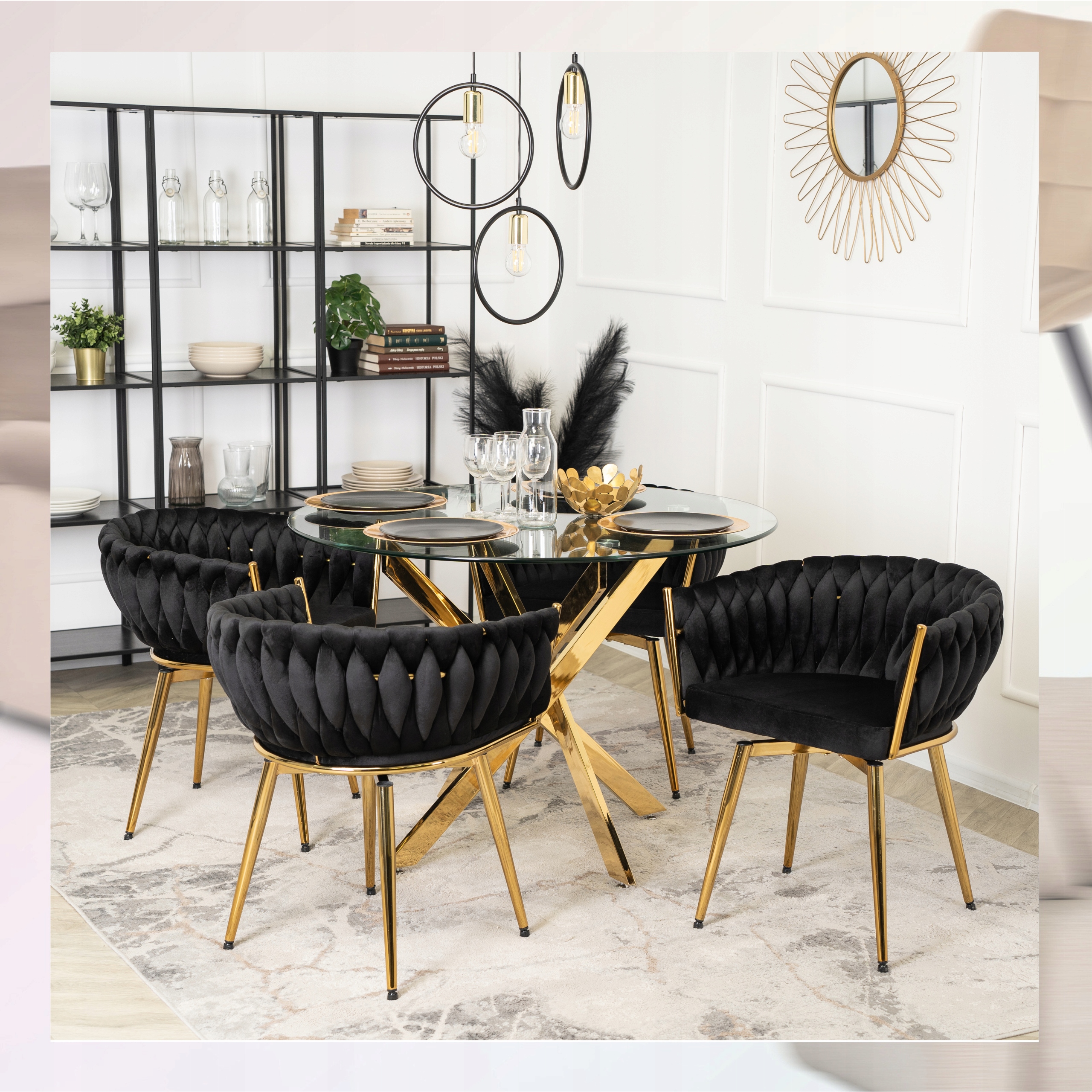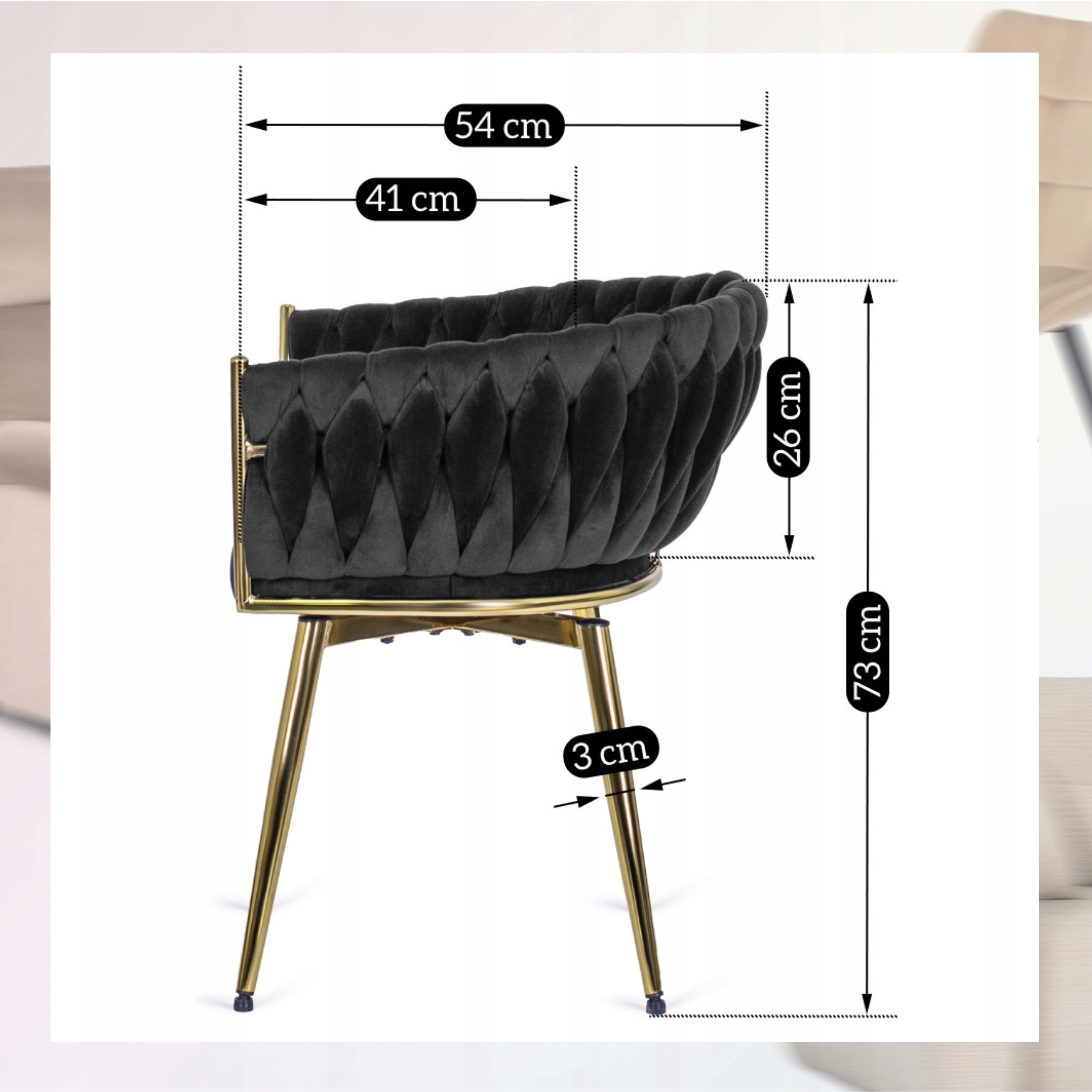 ⭐ Złoty kolor chromowanych nóg podkreśla szykowny wygląd krzesła.