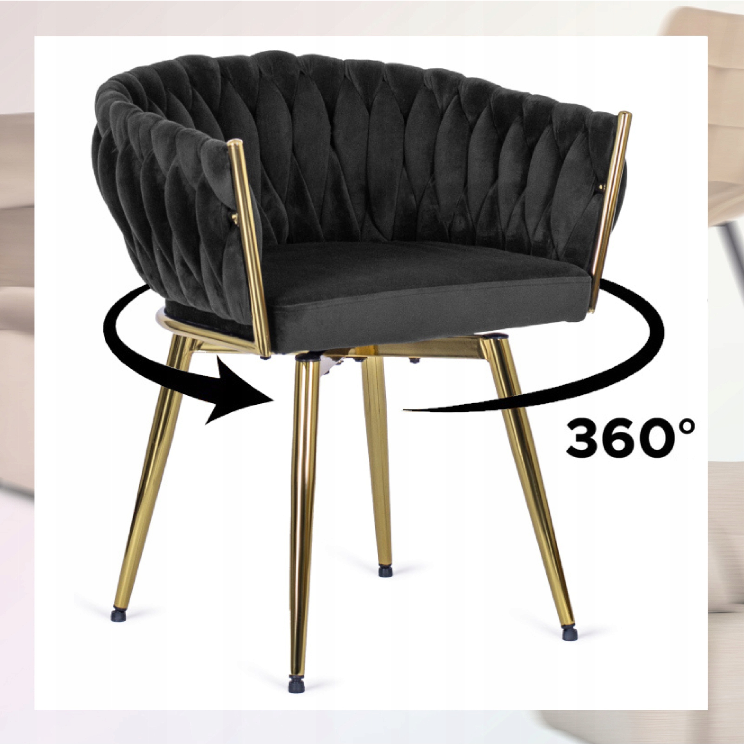 Krzesło Tapicerowane Welur Obrotowe RUBI Czarne Do Salonu Jadalni Toaletki ⭐⭐⭐⭐⭐