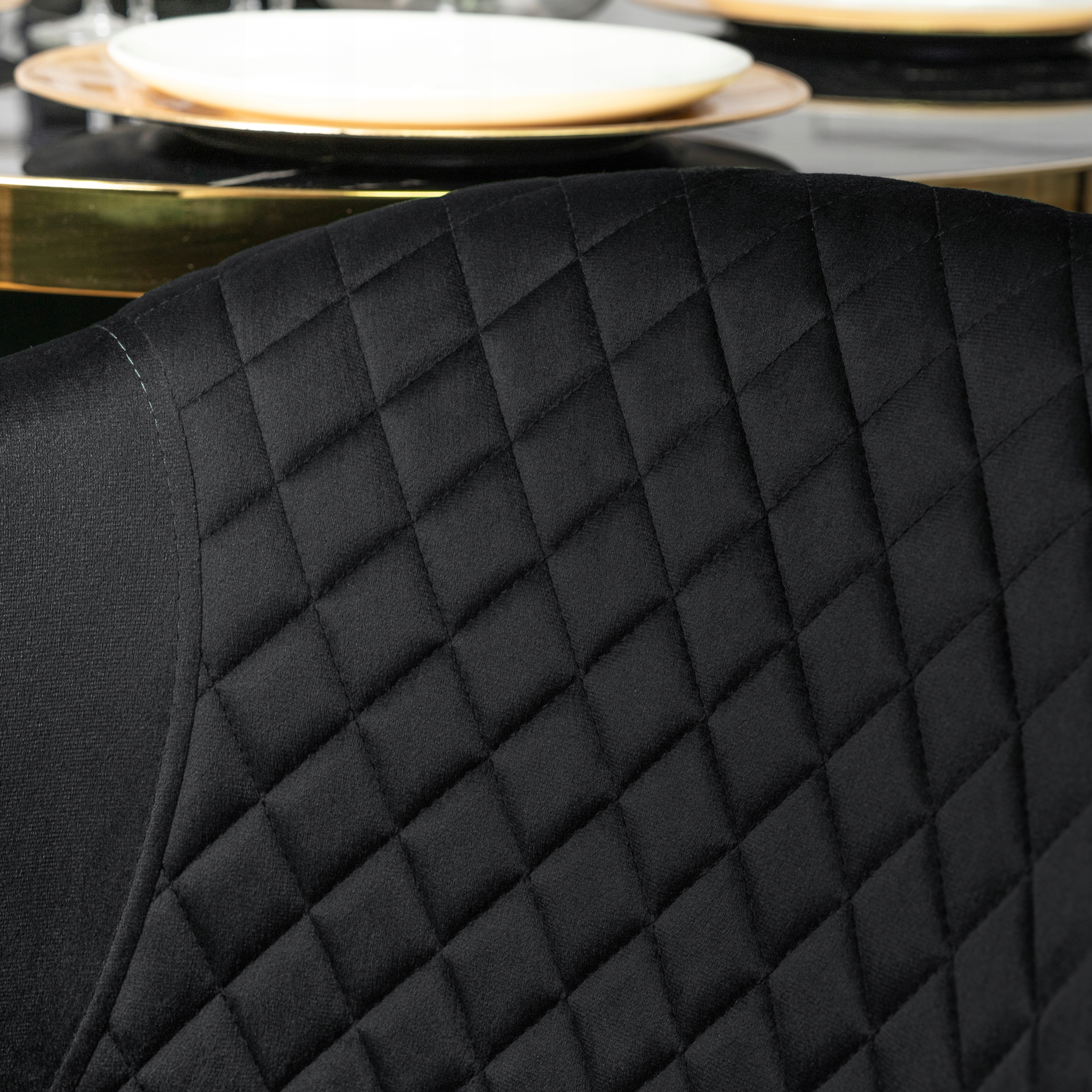 Krzesło Tapicerowane Welurowe Do Jadalni Salonu Glamour Czarne Złote INNES ⭐⭐⭐⭐⭐