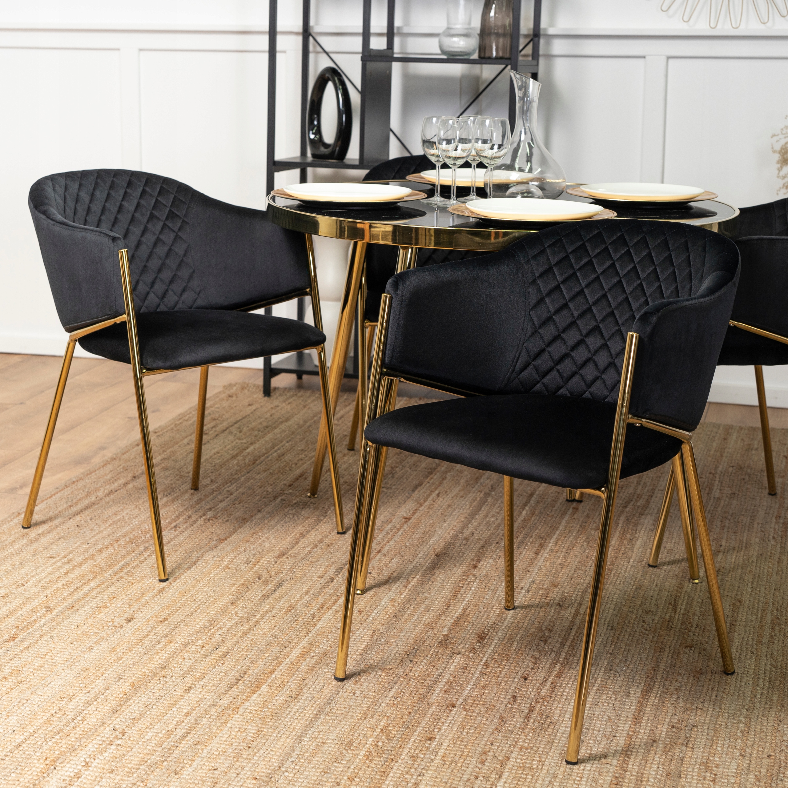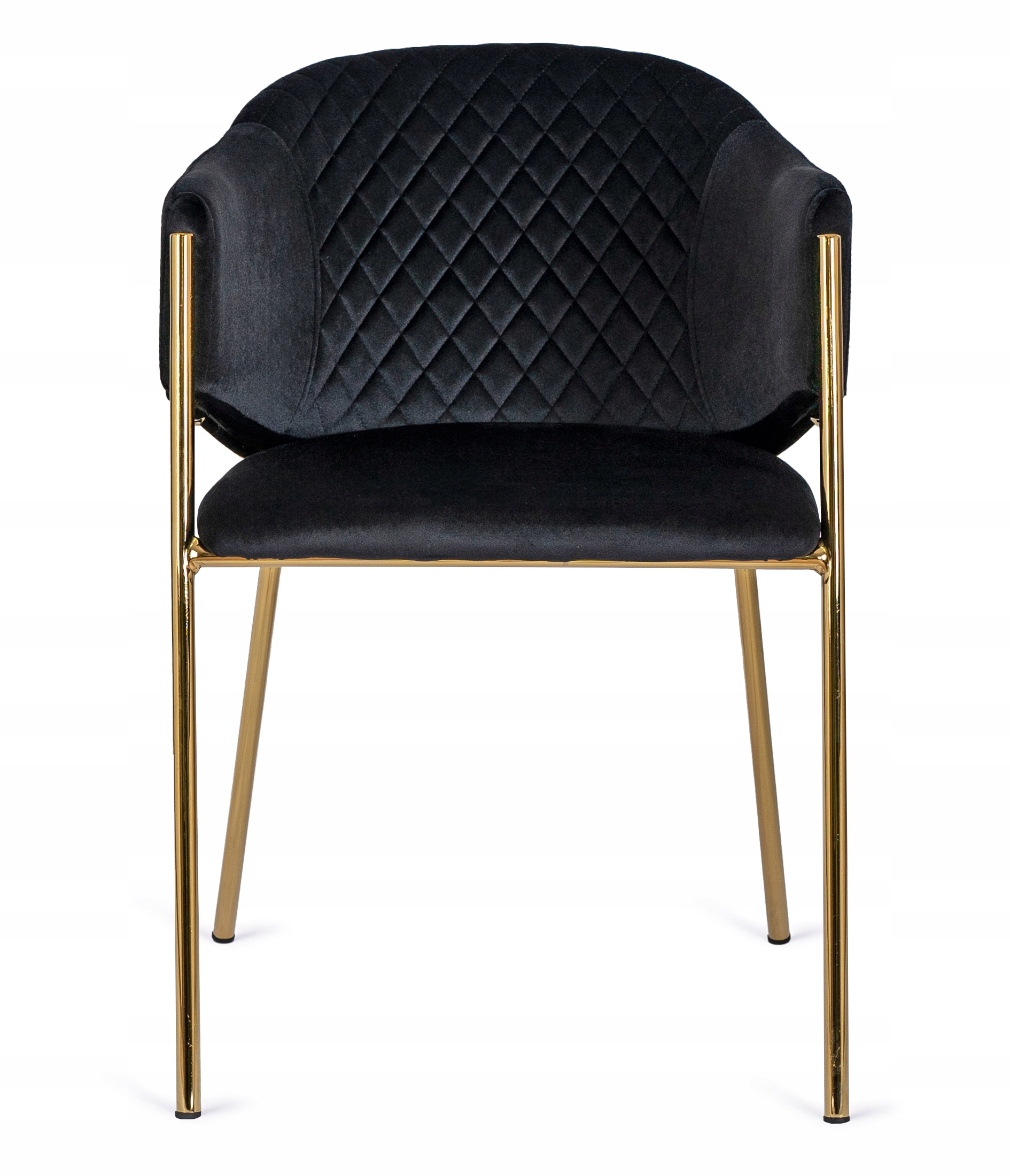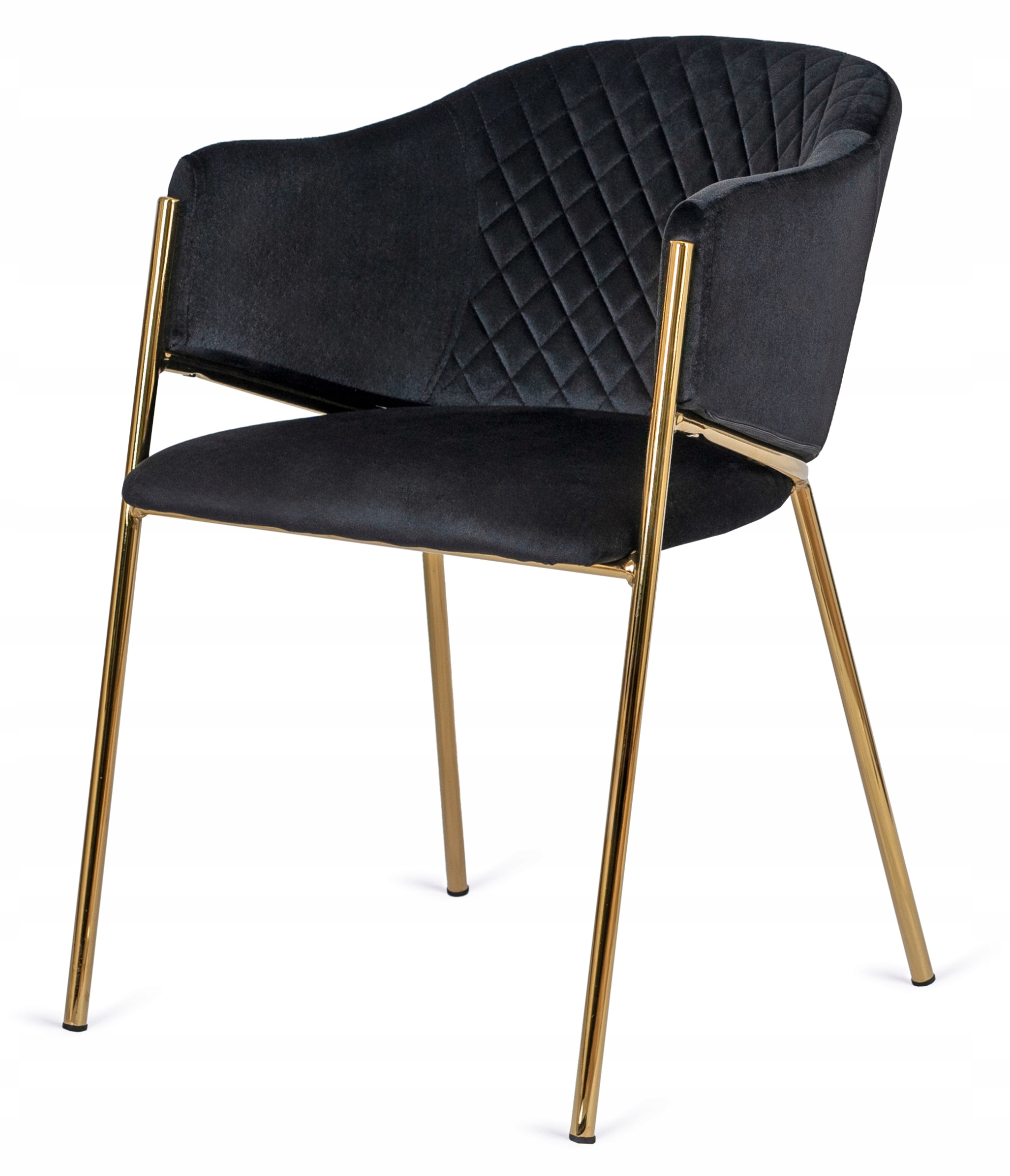 - Krzesło welurowe INNES w kolorze czarnym ze złotymi nogami