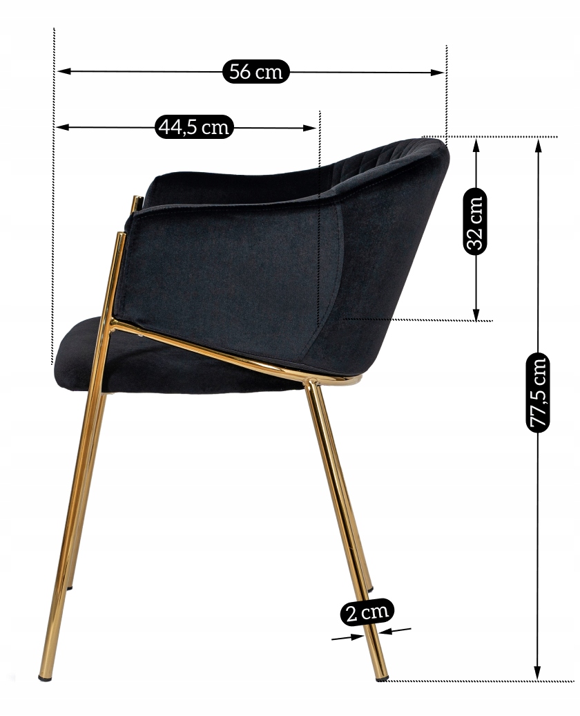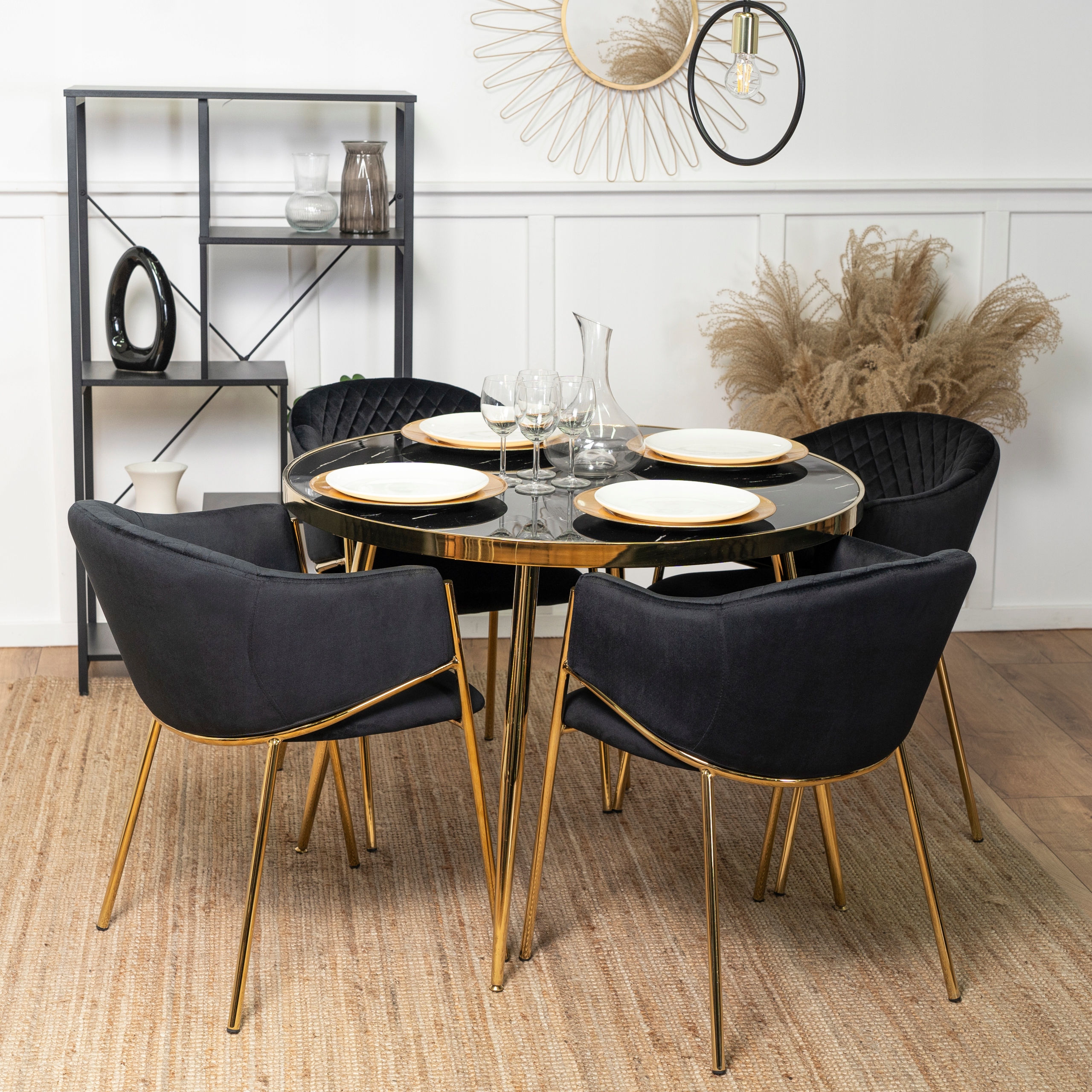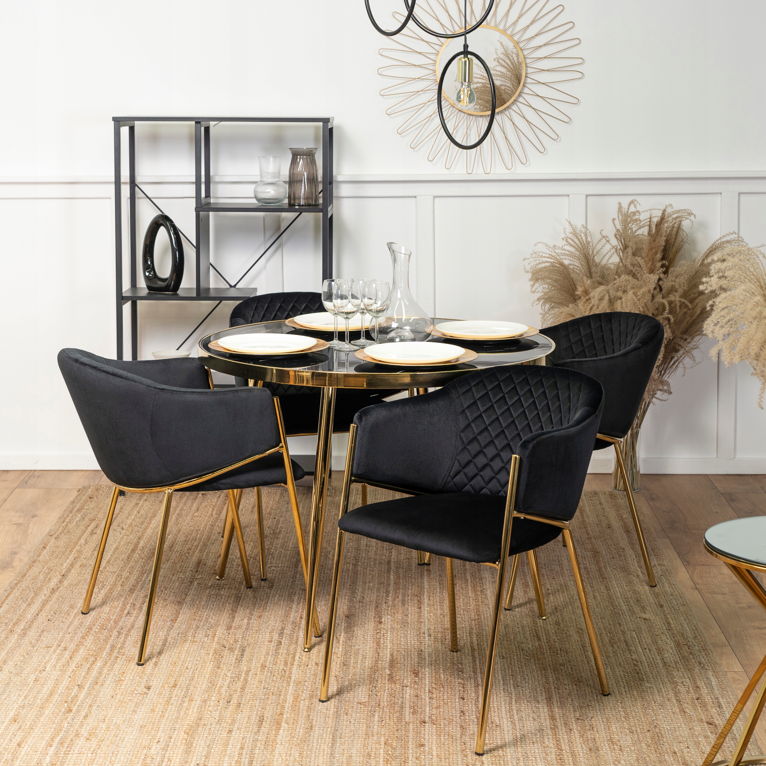 - Krzesło welurowe INNES w kolorze czarnym ze złotymi nogami