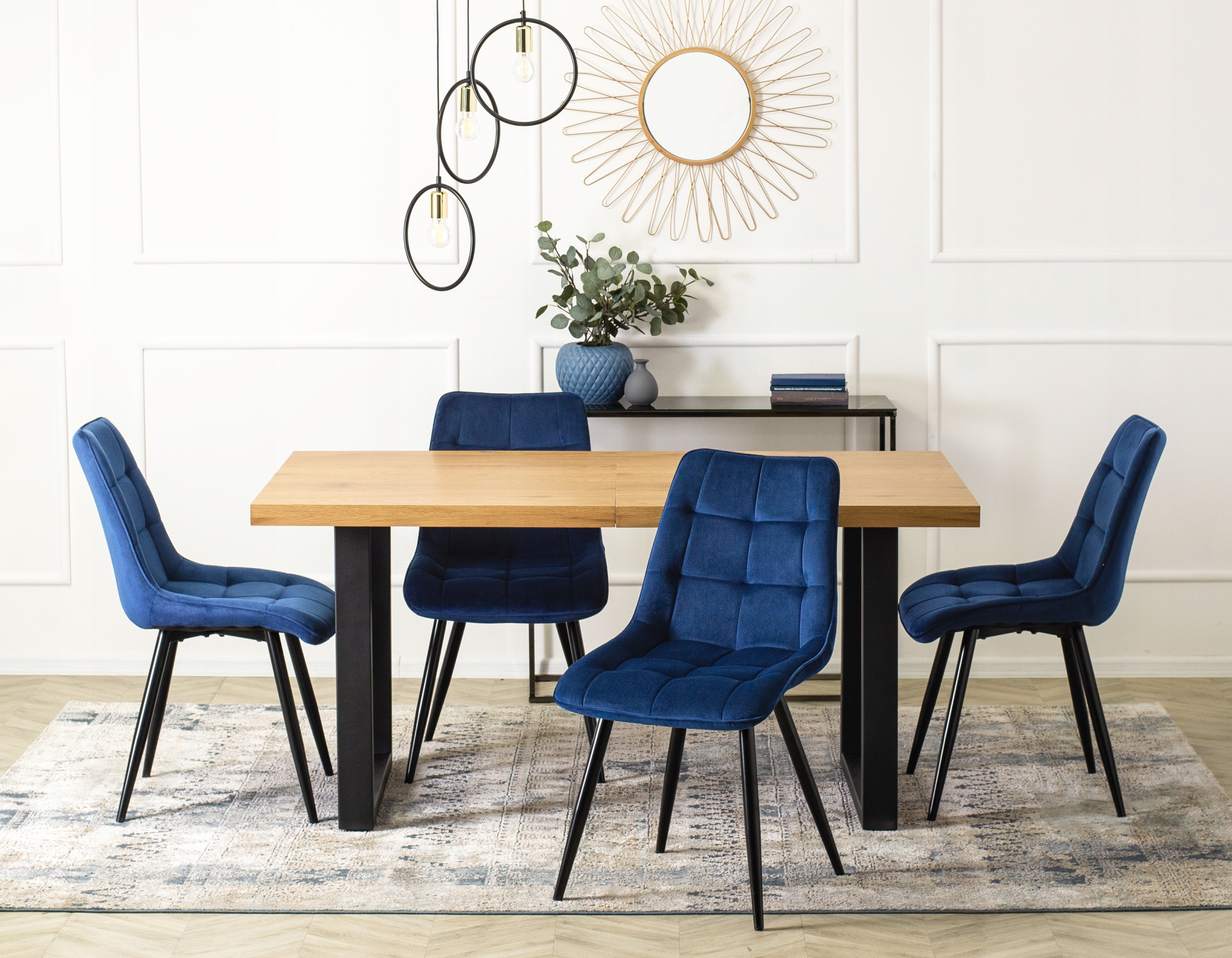 Nogi wykonane są z wytrzymałej stali malowanej proszkowo na czarno – stabilne, odporne na uszkodzenia i idealnie dopasowane do granatowej tapicerki.