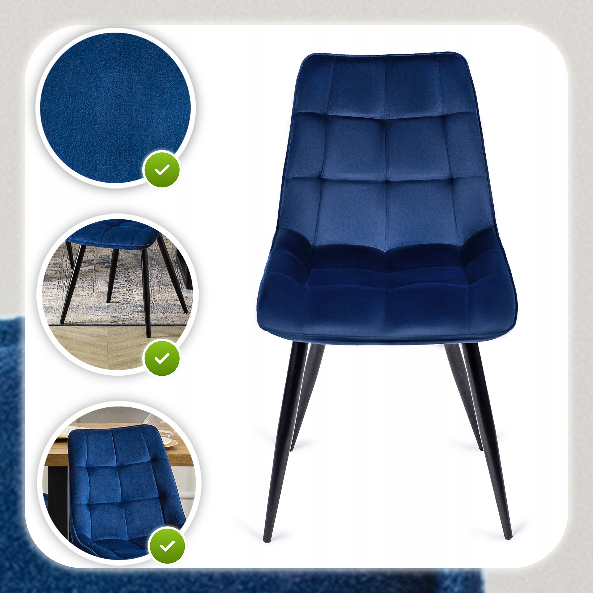 Krzesło Tapicerowane Welurowe Kuchenne Do jadalni Salonu Granatowe YORK ⭐⭐⭐⭐⭐