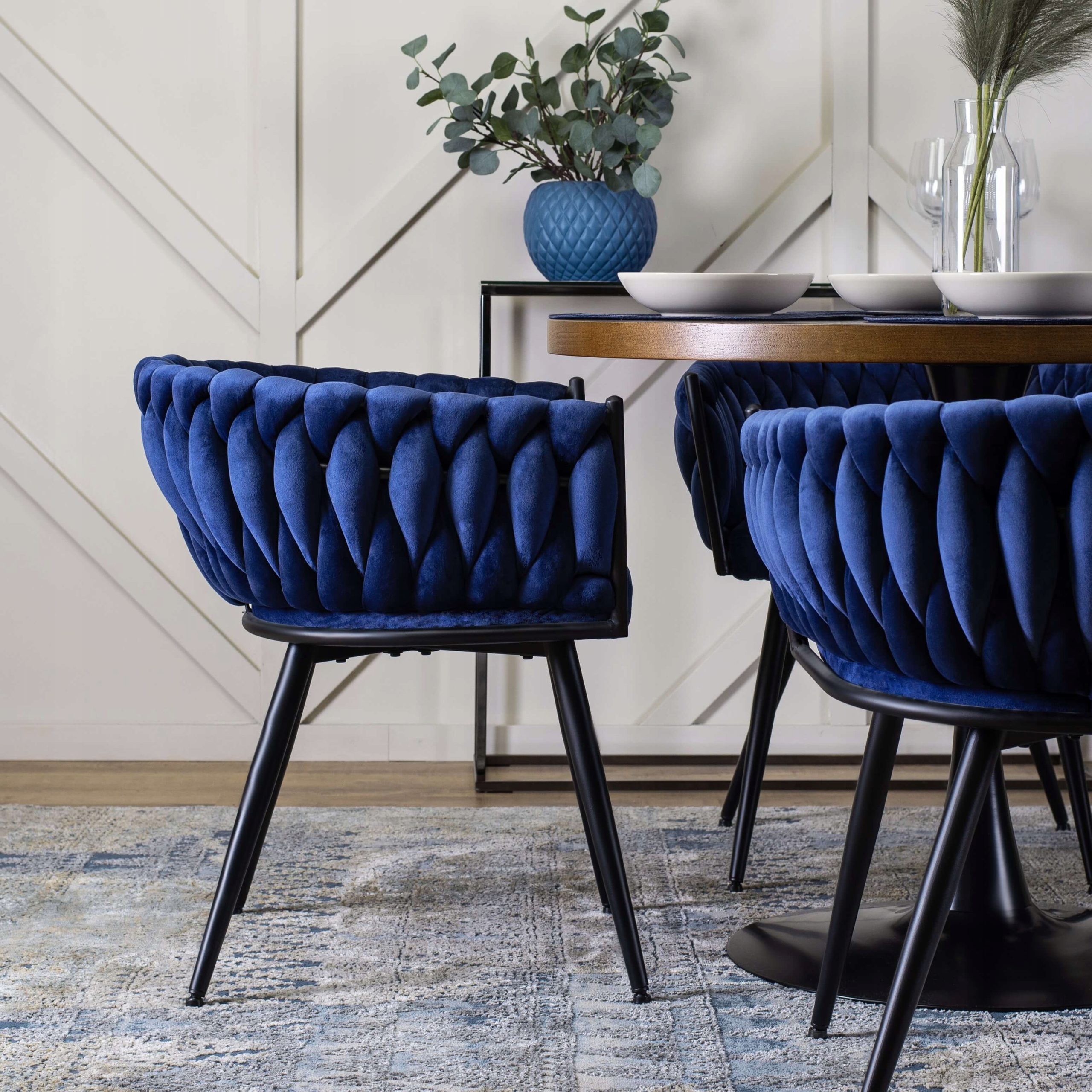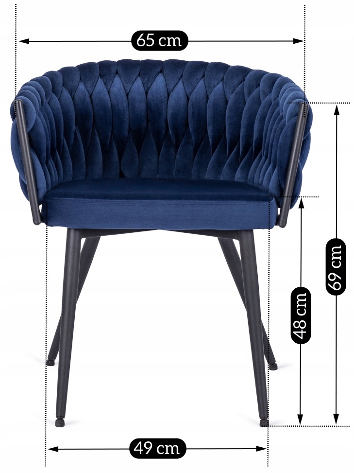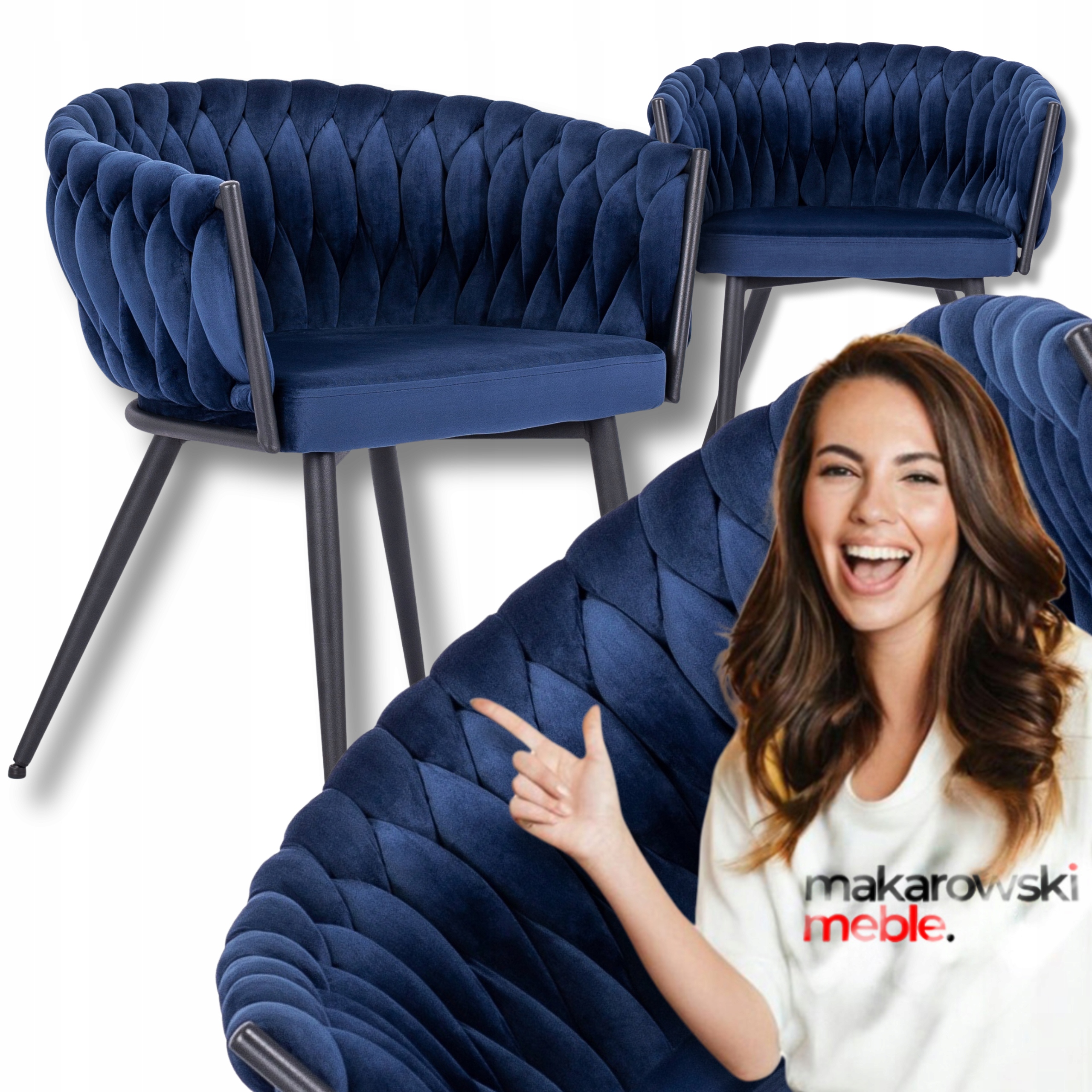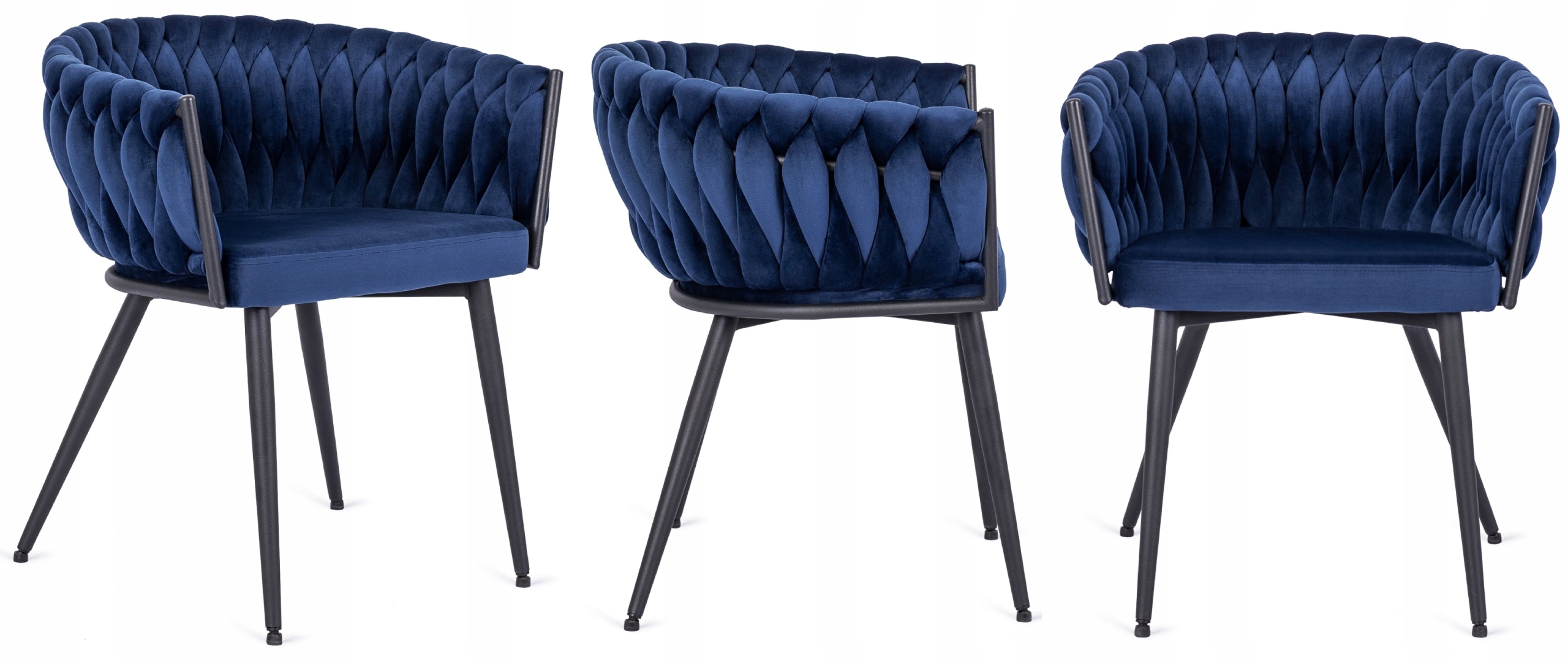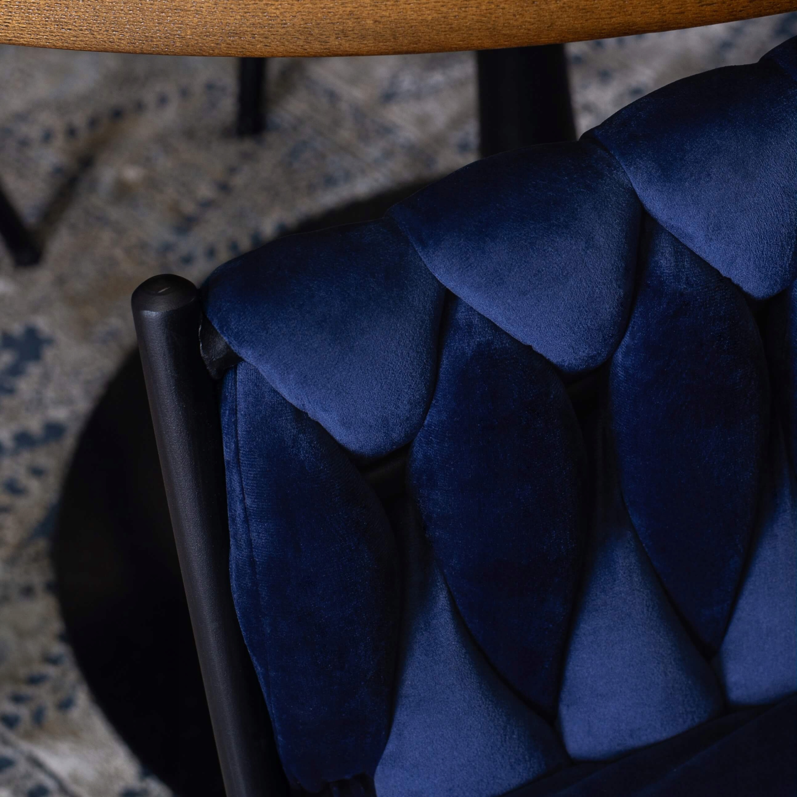 Krzesło Tapicerowane Welurowe Do Jadalni Salonu Plecione Granatowe EMPOLI ⭐⭐⭐⭐⭐