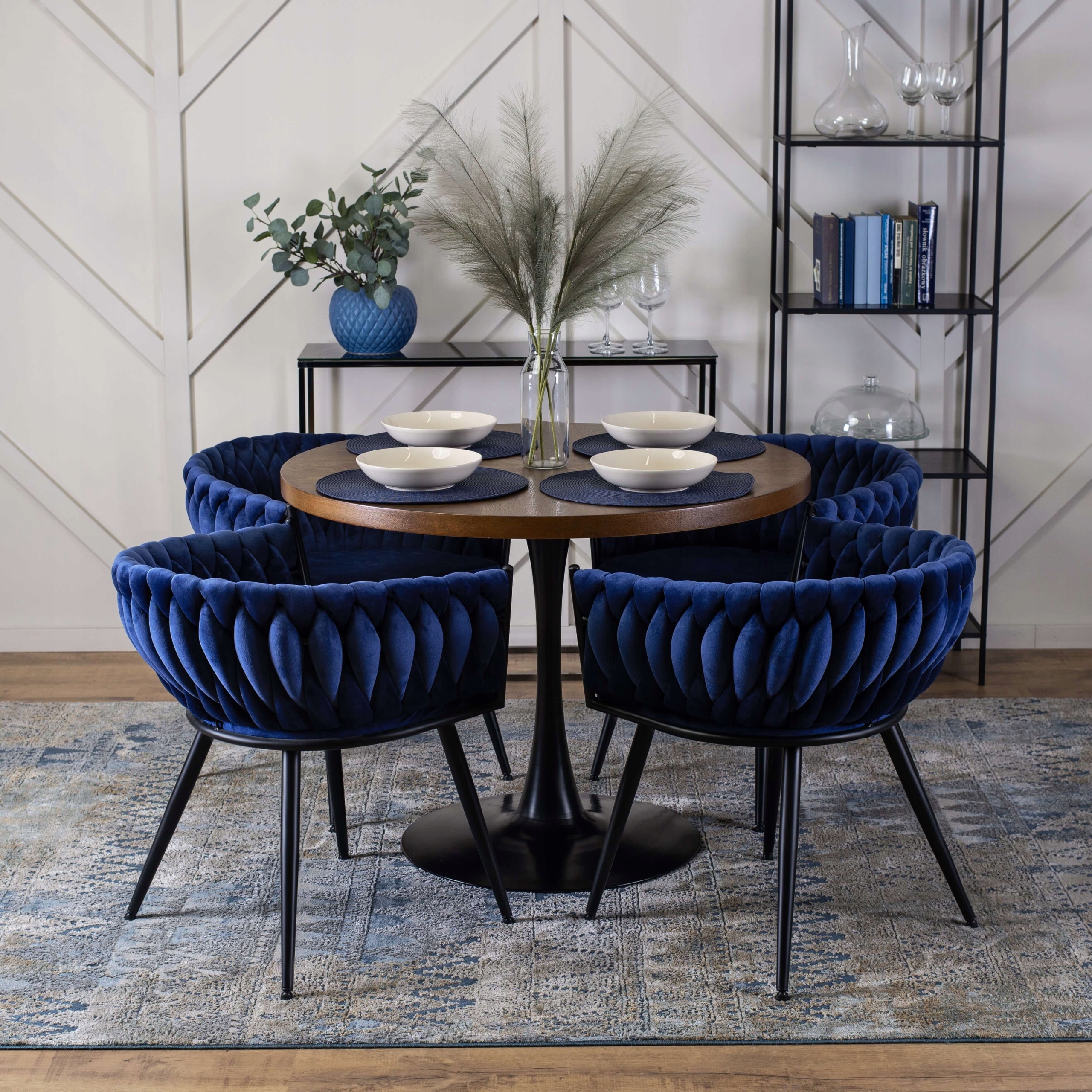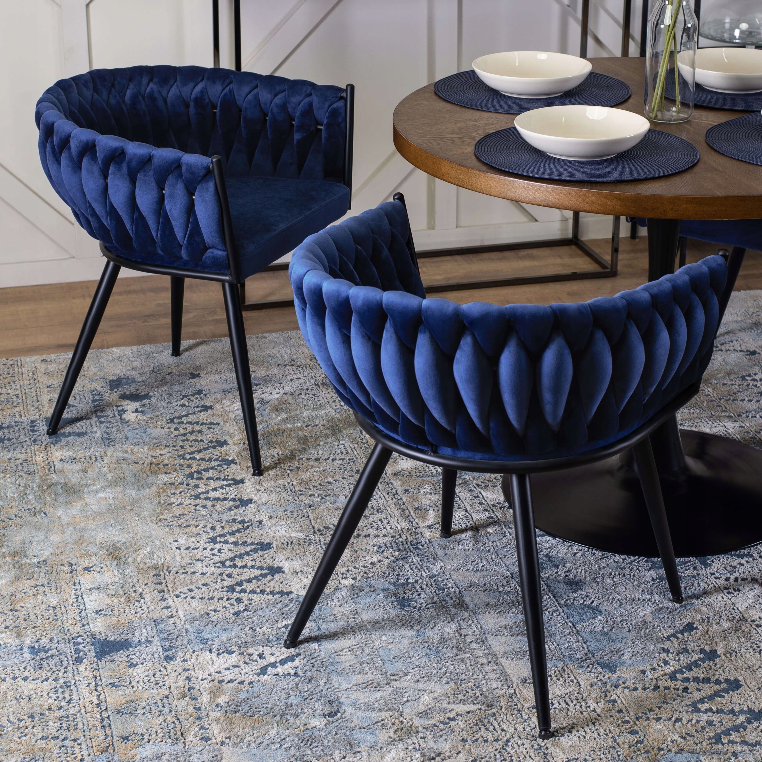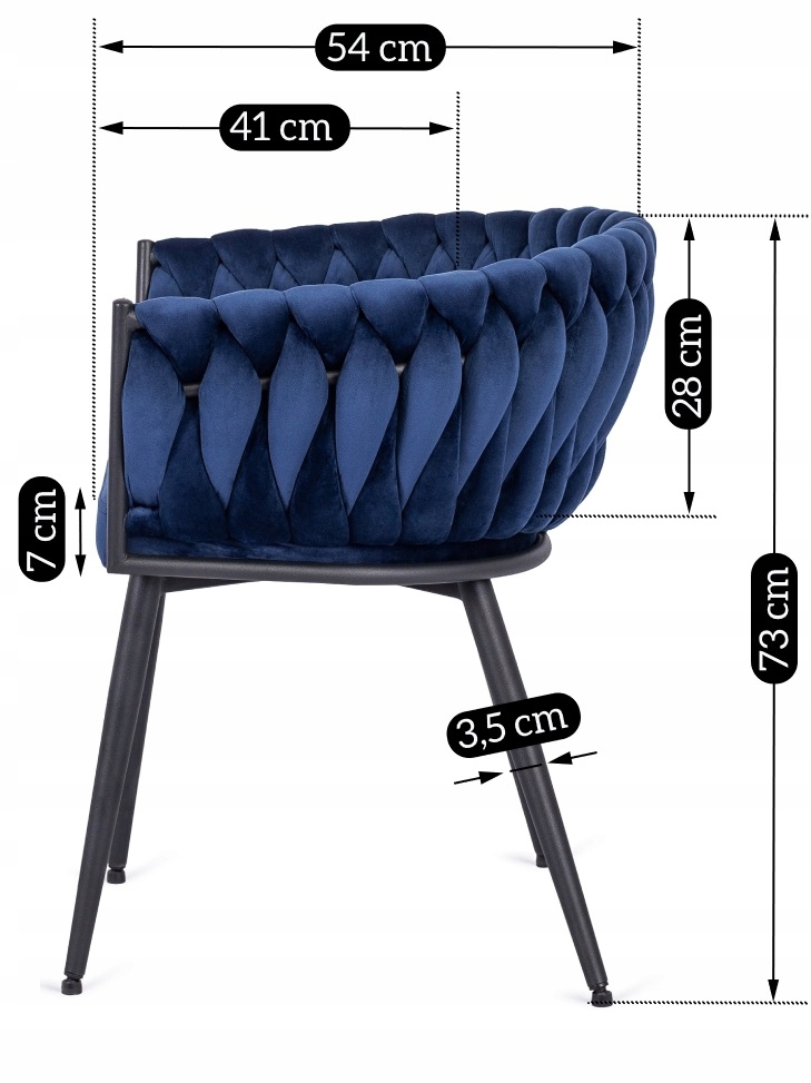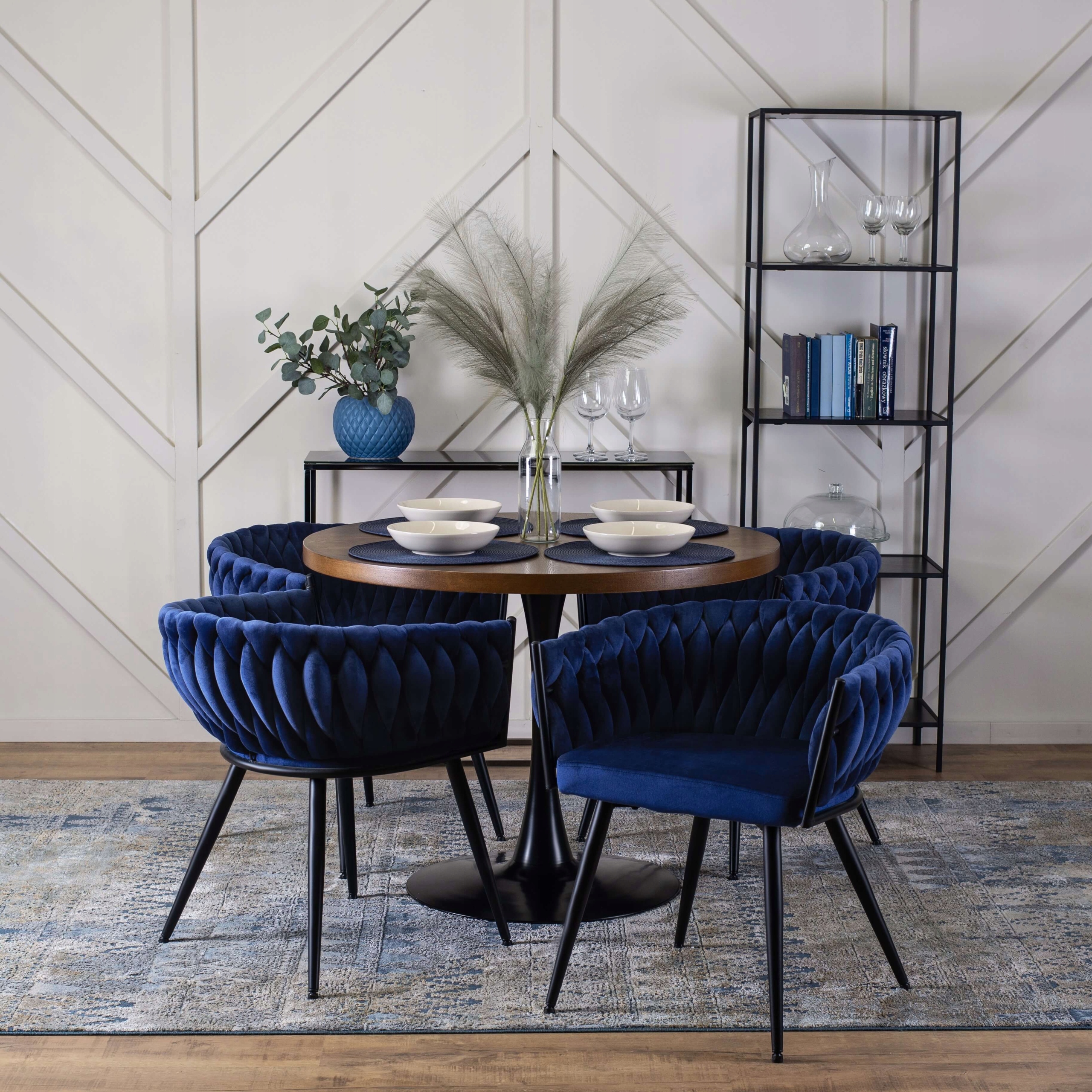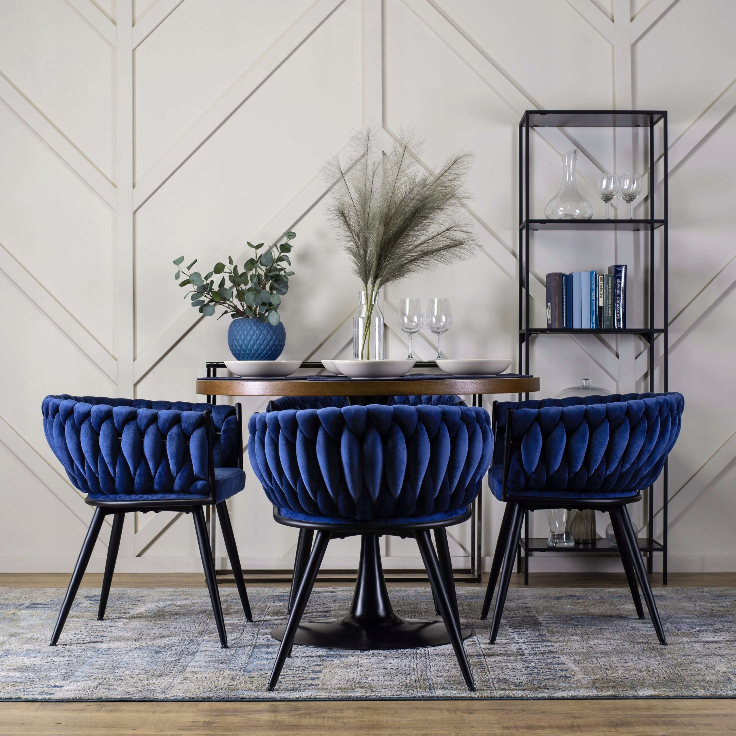 Krzesło Tapicerowane Welurowe Do Jadalni Salonu Plecione Granatowe EMPOLI ⭐⭐⭐⭐⭐