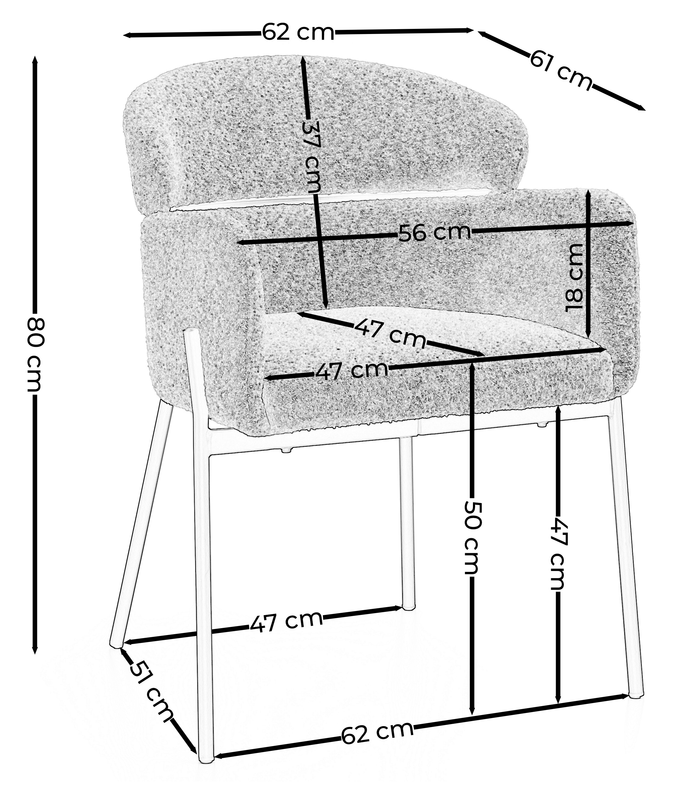 Metalowe nogi krzesła malowane proszkowo, utrzymane w matowej czerni, prezentują się zgrabnie i solidnie, jednocześnie wprowadzając element kontrastu do delikatności tkaniny welurowej. Ich smukła forma harmonizuje z designem, a zarazem sprawia, że krzesło nadaje się do różnych aranżacji wnętrz.