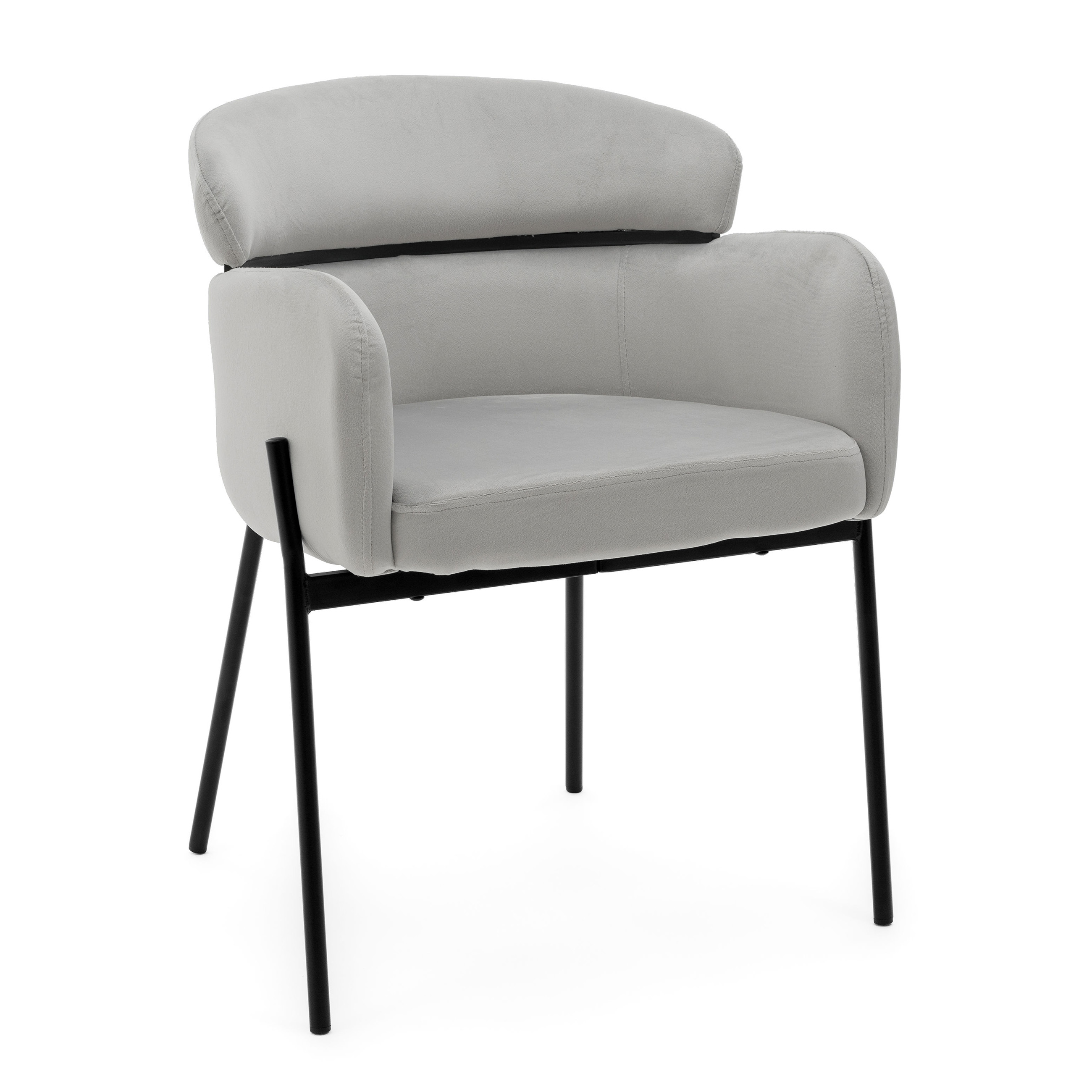 Metalowe nogi krzesła malowane proszkowo, utrzymane w matowej czerni, prezentują się zgrabnie i solidnie, jednocześnie wprowadzając element kontrastu do delikatności tkaniny welurowej. Ich smukła forma harmonizuje z designem, a zarazem sprawia, że krzesło nadaje się do różnych aranżacji wnętrz.