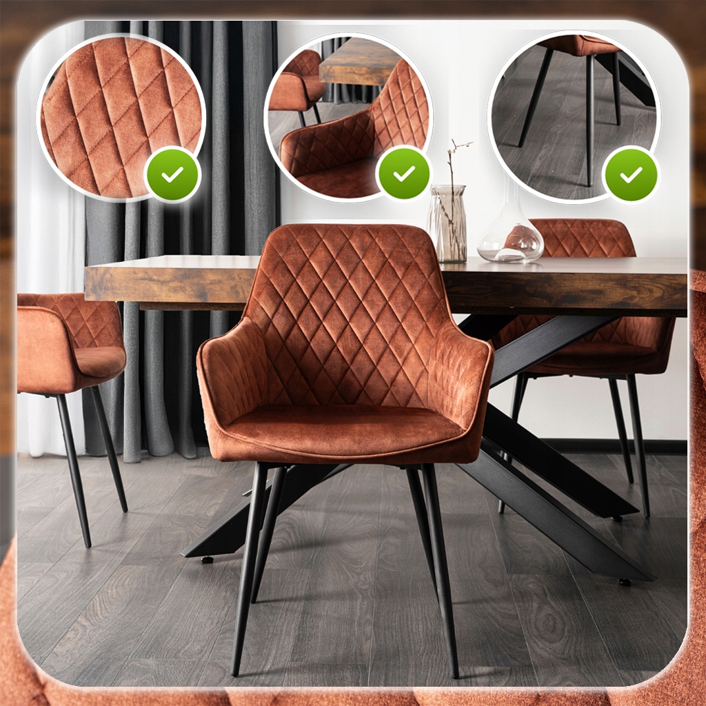 ✨ Krzesło Tapicerowane Welurowe Do Salonu Jadalni Kuchenne Rude BRESSO