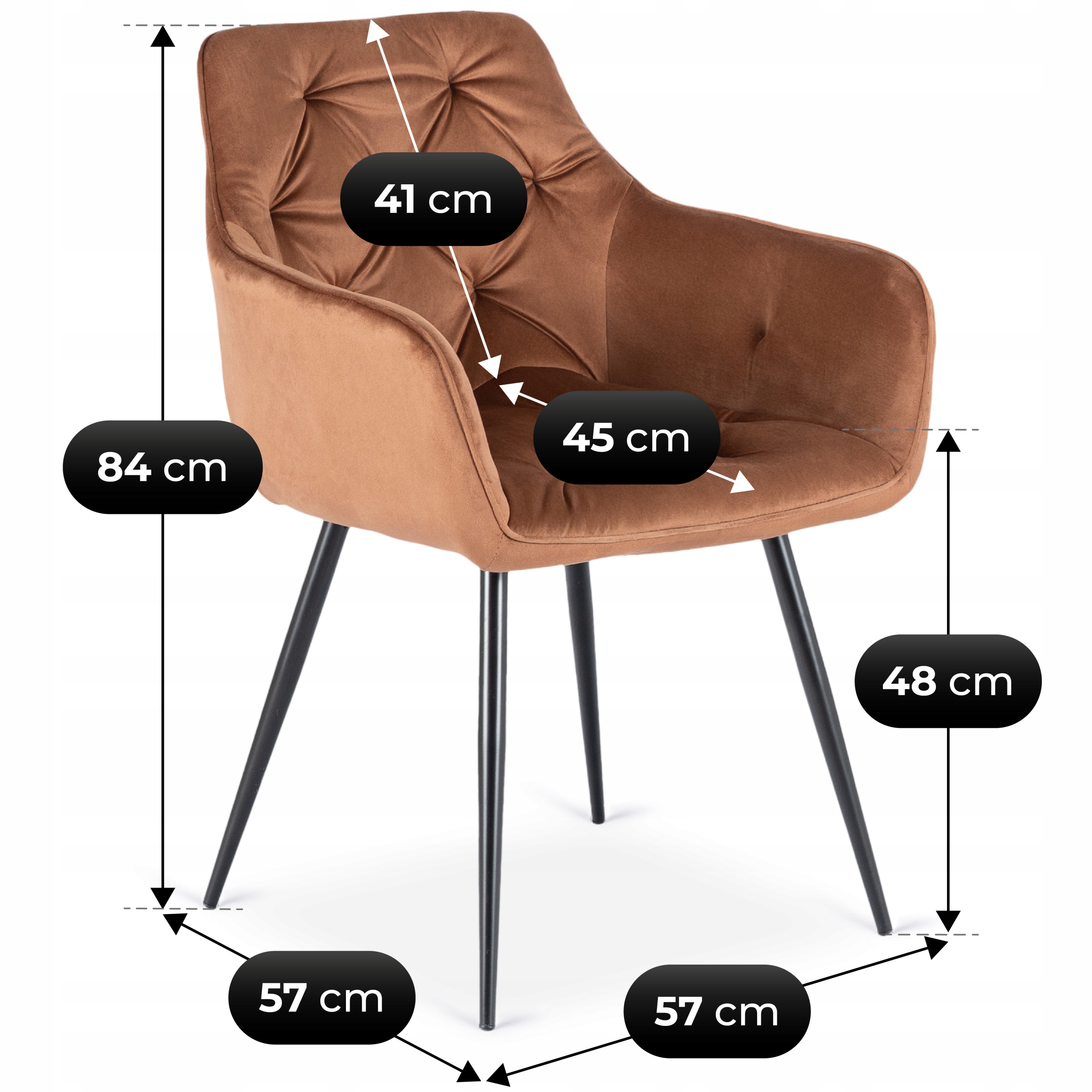 Krzesło MODESTO łączy w sobie wszystko, czego szukasz w idealnym krześle. Zachwyca eleganckim odcieniem rudym, który świetnie komponuje się z każdym wnętrzem – od nowoczesnego po klasyczne. Miękkie, welurowe siedzisko i starannie wyprofilowane, pikowane oparcie gwarantują nie tylko styl, ale też wygodę podczas codziennych posiłków i długich spotkań z bliskimi.