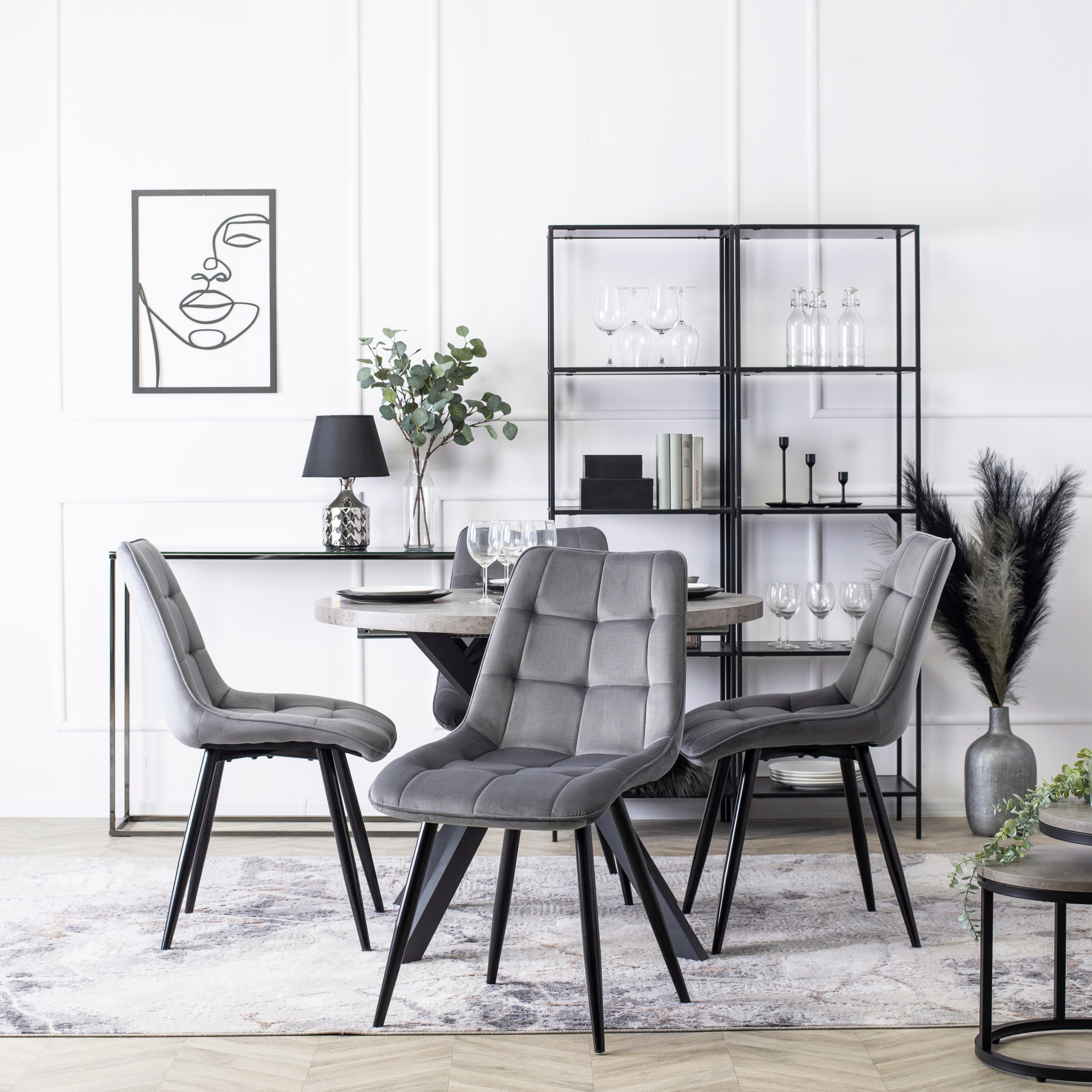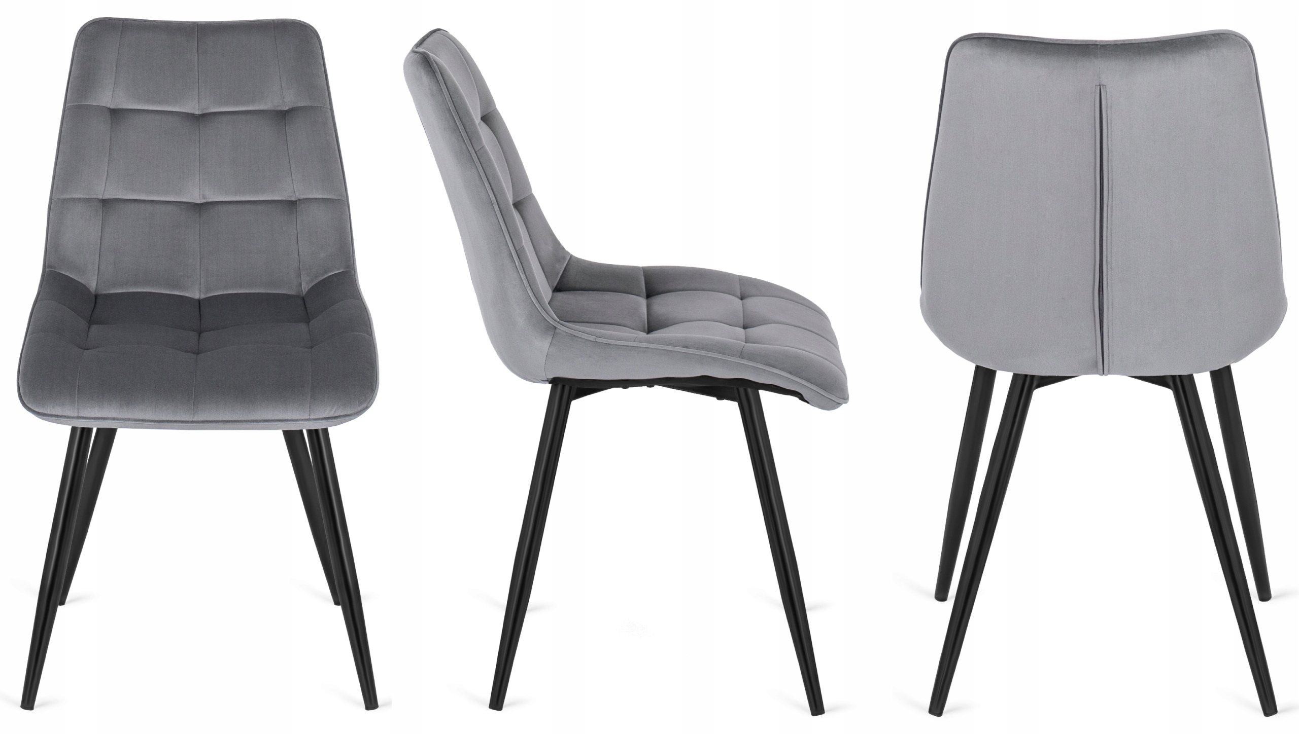 Zestaw 4x Krzesło RIO Szare Tapicerowane Welurowe Pikowane ⭐⭐⭐⭐⭐