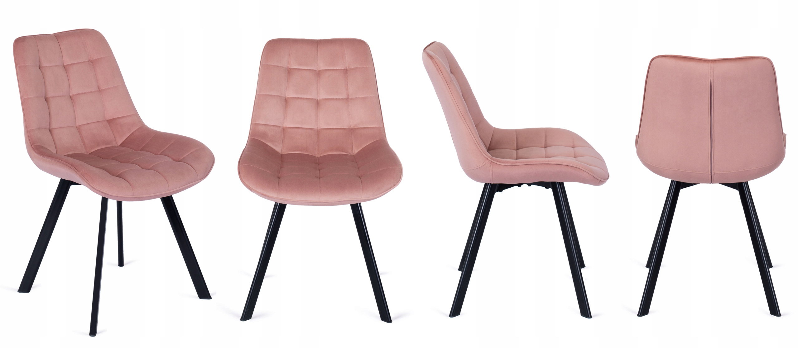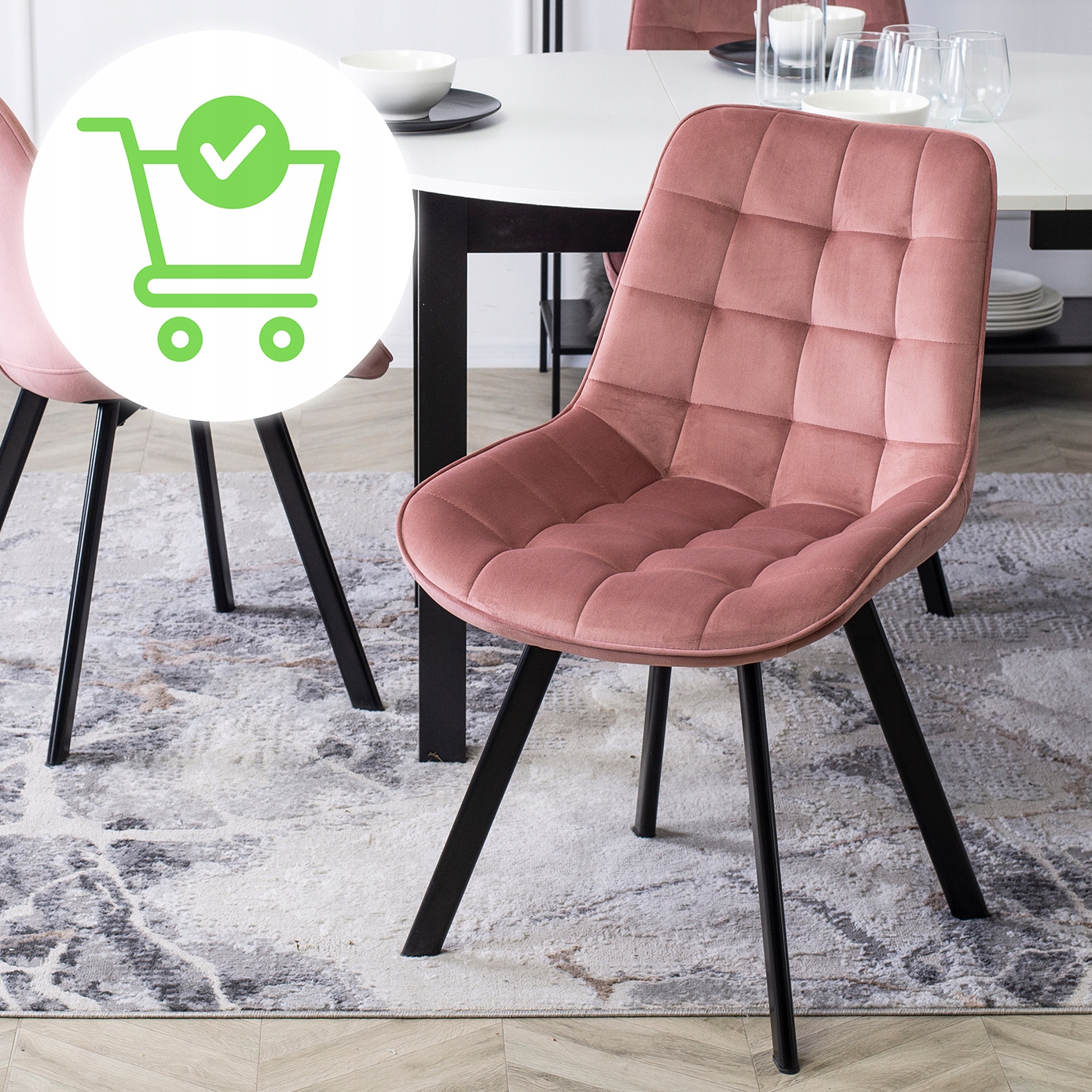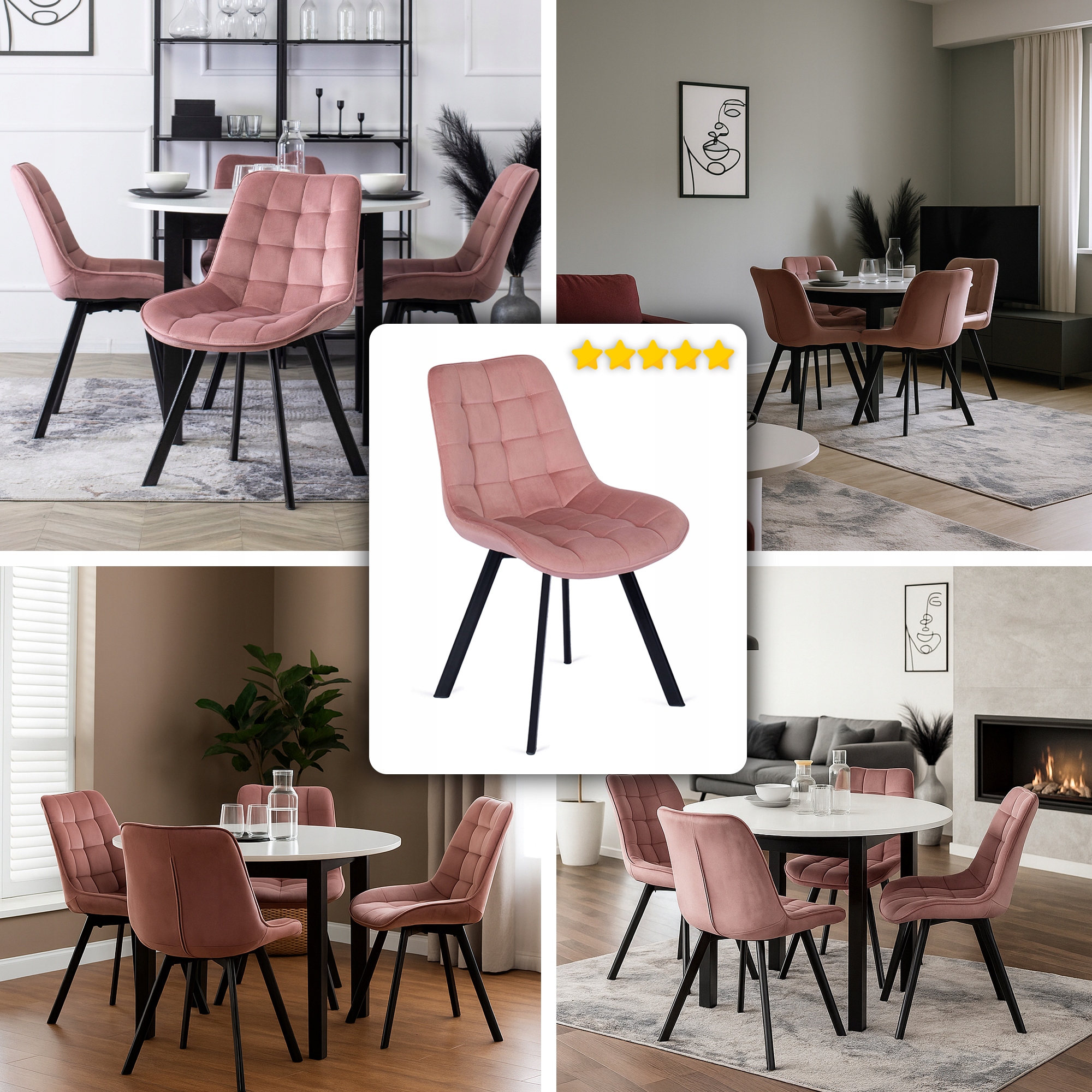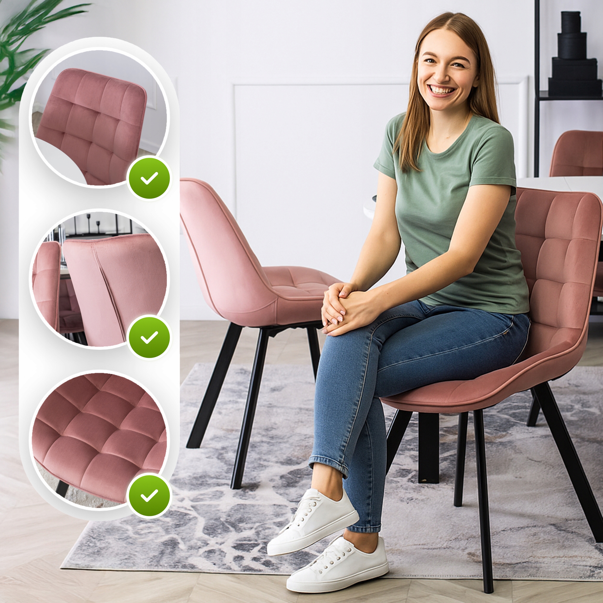 ✨ Krzesło Tapicerowane Welurowe 6x Kuchenne Do Salonu Jadalni RICK Różowe