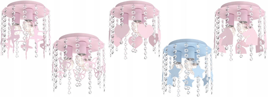 Kolekcja ELZA to nowa odsłona lamp dziecięcych. Lampa posiada dwa niezależne obwody elektryczne, dzięki którym możemy sterować ilością włączonych żarówek. Wiszące kryształki lśnią przy każdym ruchu powietrza a motylki, gwiazdki, jednorożce, serca i baletnice to elementy, które dodają uroku i delikatności. To wyjątkowa dekoracja, która sprawi, że wnętrze stanie się magiczne, przytulne i idealne do stworzenia bajkowej atmosfery.