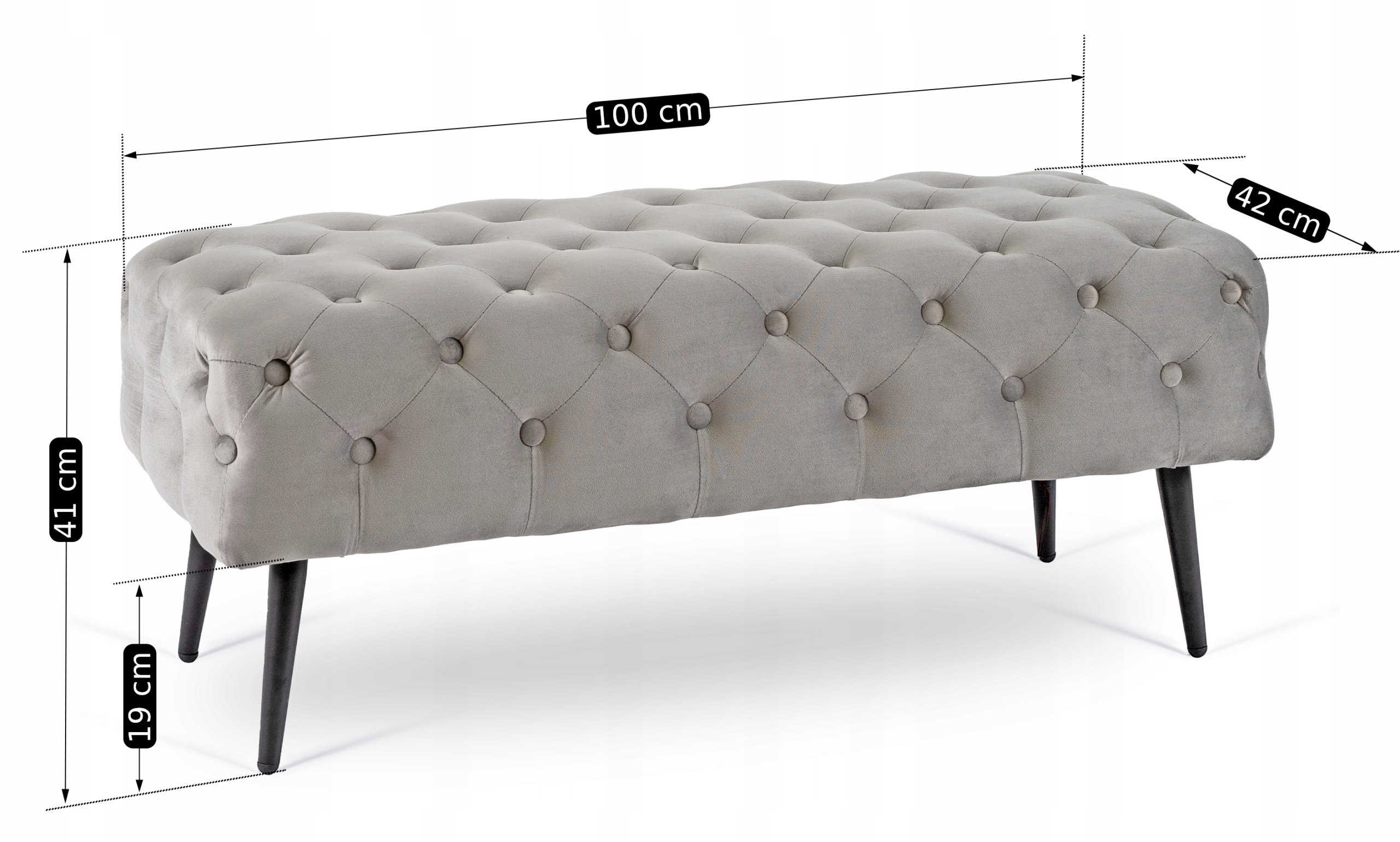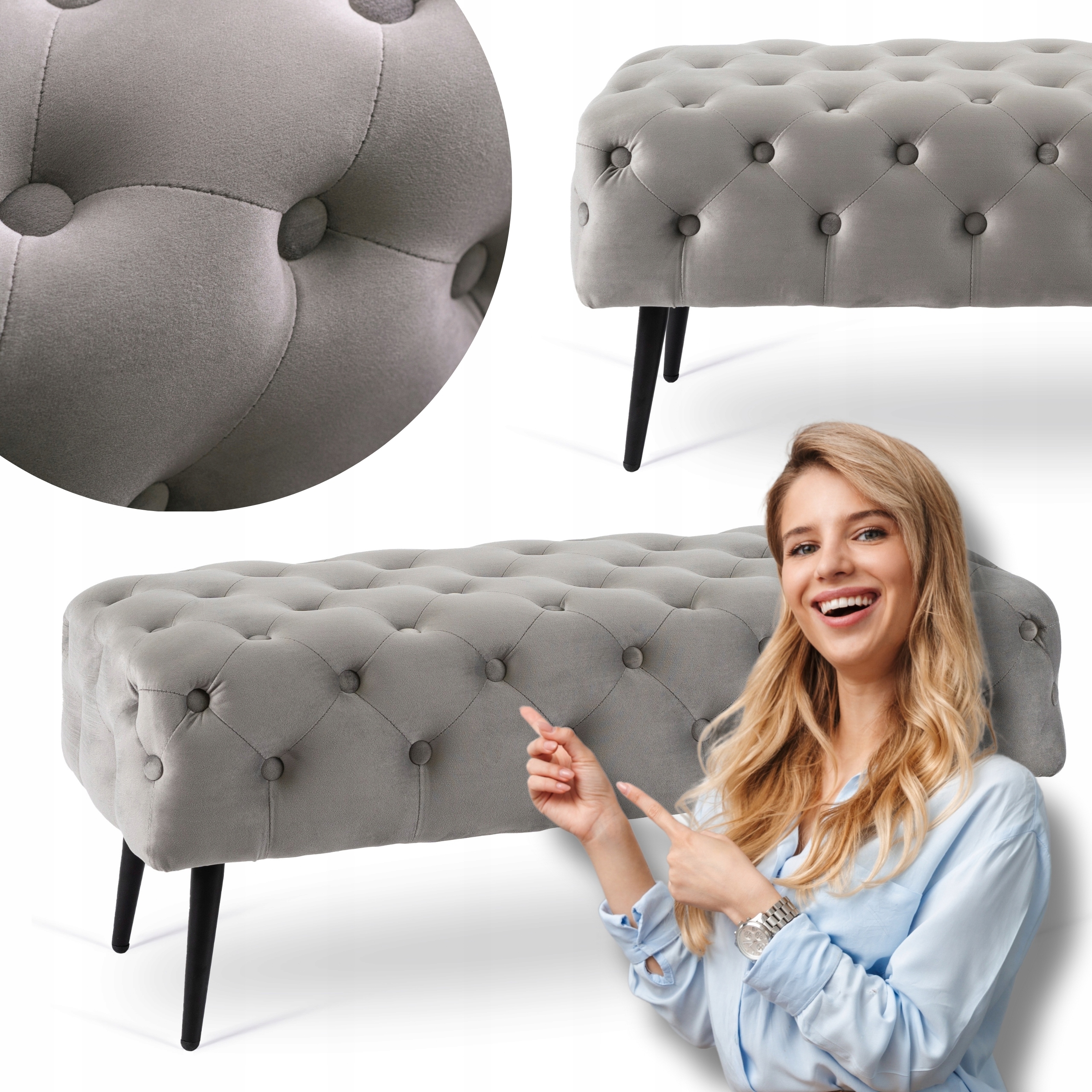 Ławka Siedzisko Ławeczka Do Przedpokoju Sypialni Welurowa Szara VERA 2 Puf ⭐⭐⭐⭐⭐