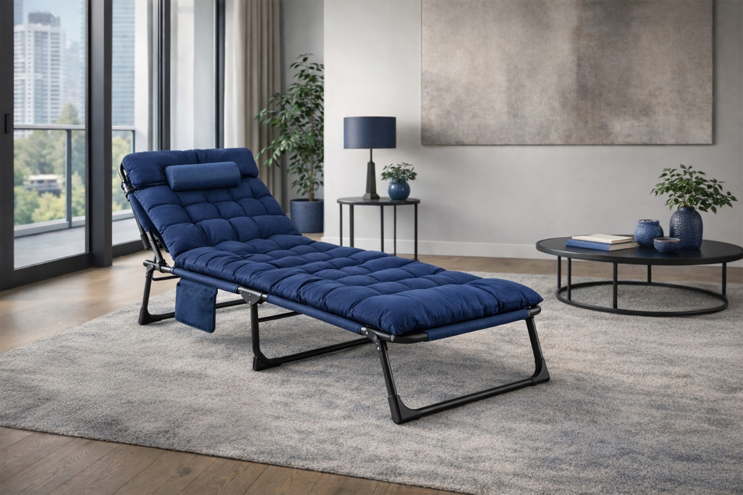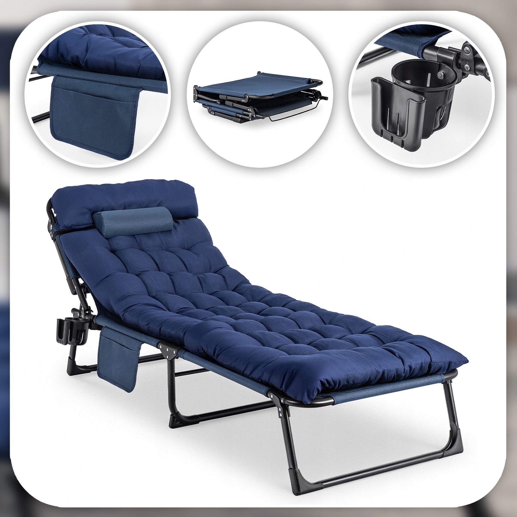 Leżak Fotel Rozkładany Do Spania Leżanka Jednoosobowa Granatowy SATURN