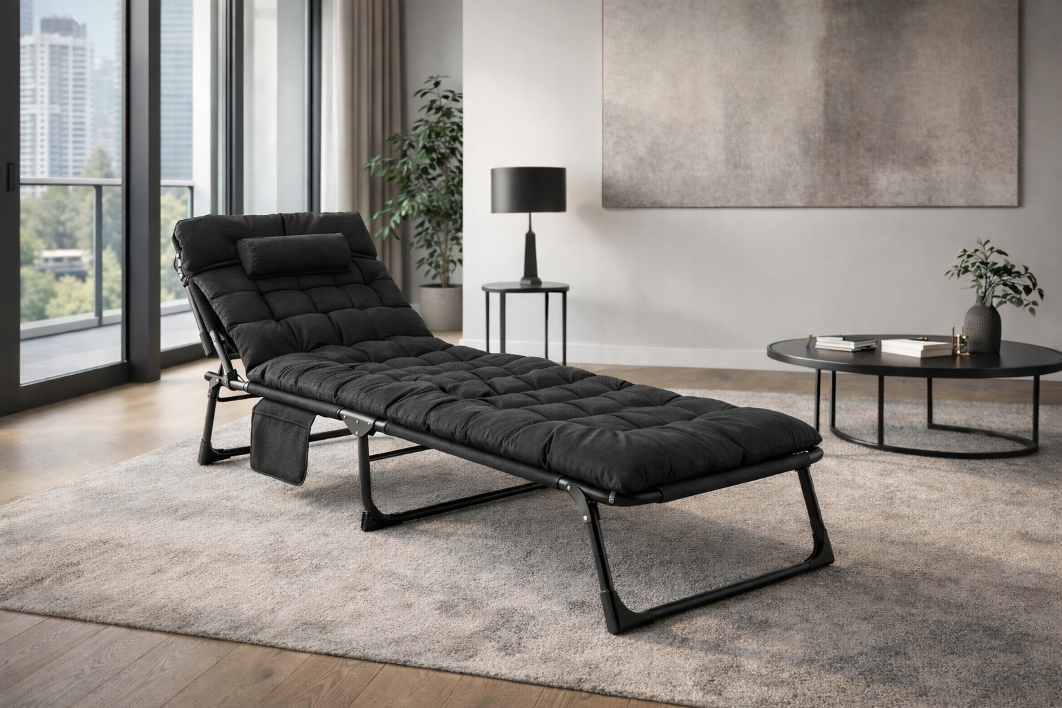Leżak Fotel Rozkładany Do Spania Salonu Leżanka Jednoosobowa Czarny SATURN