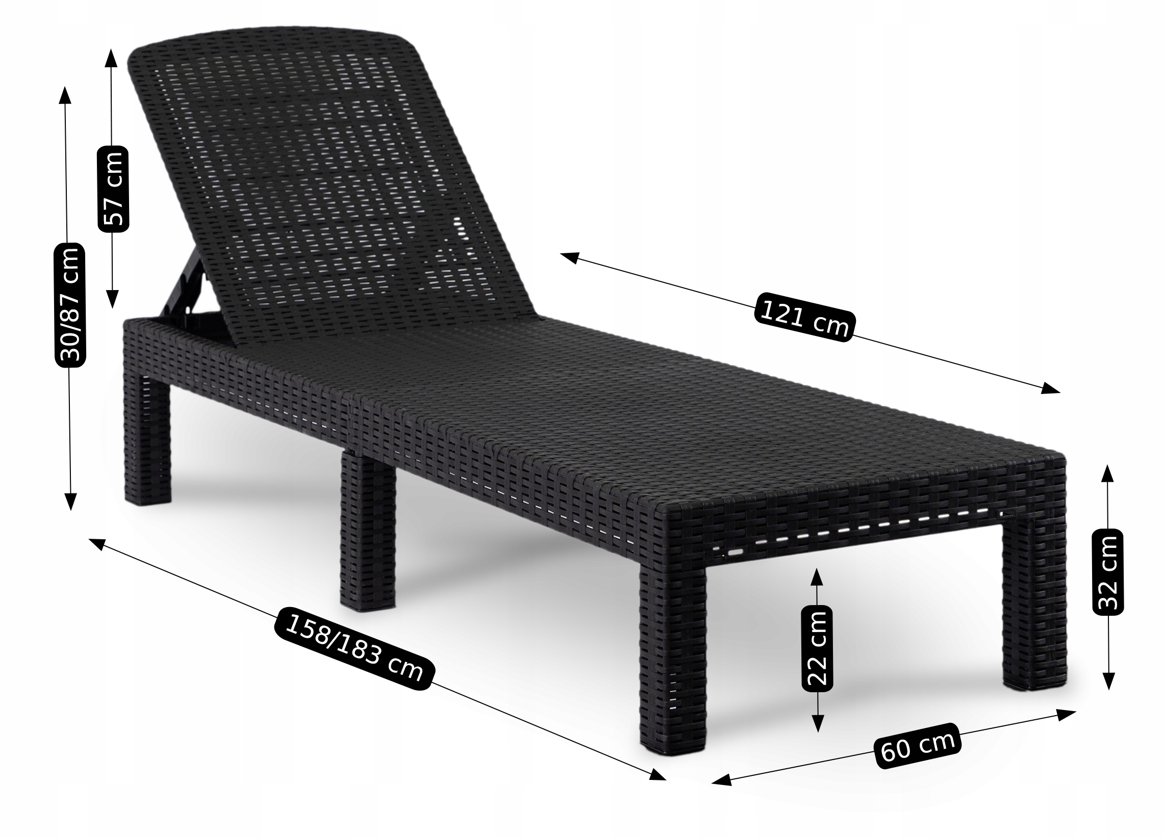 - Leżanka rattanowa ARIZONA w kolorze czarnym