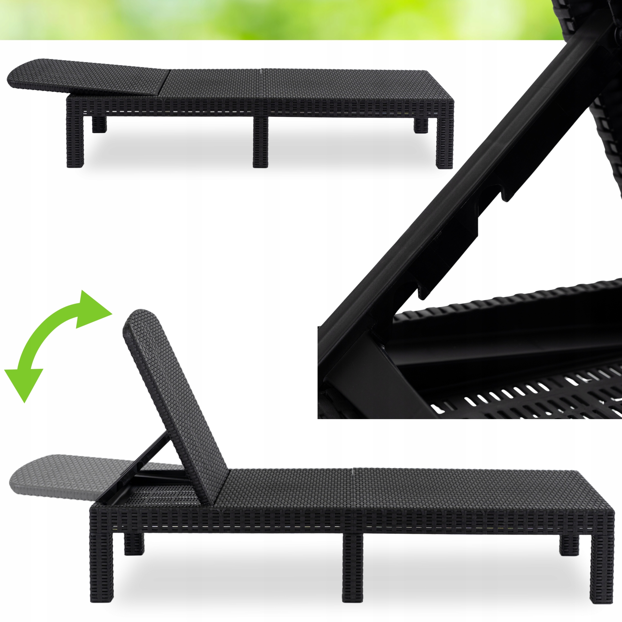 ✅ Leżak ma regulowane oparcie, dzięki czemu możesz dostosować kąt nachylenia według własnych potrzeb.