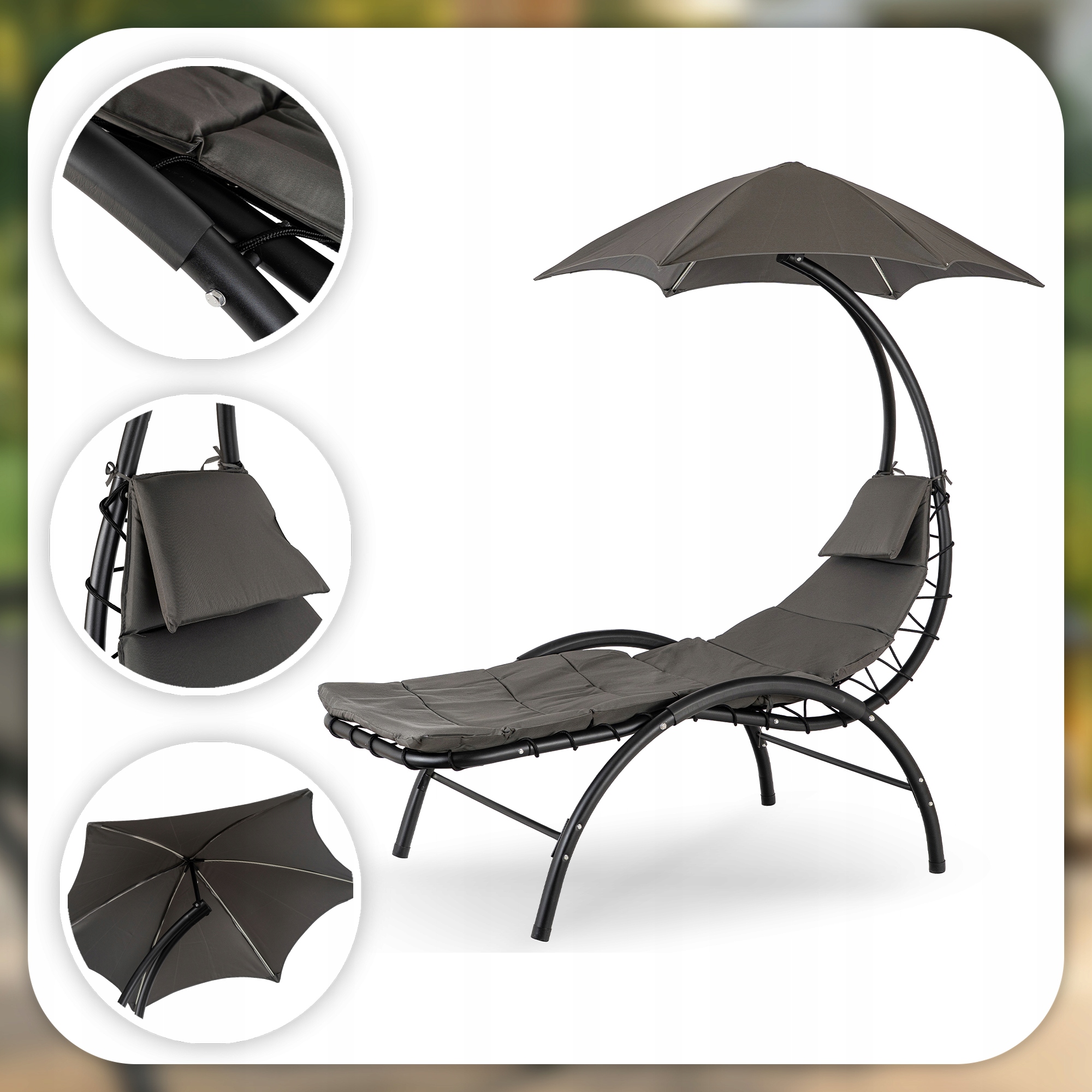 - Leżak ogrodowy z parasolem CARPA w kolorze szarym