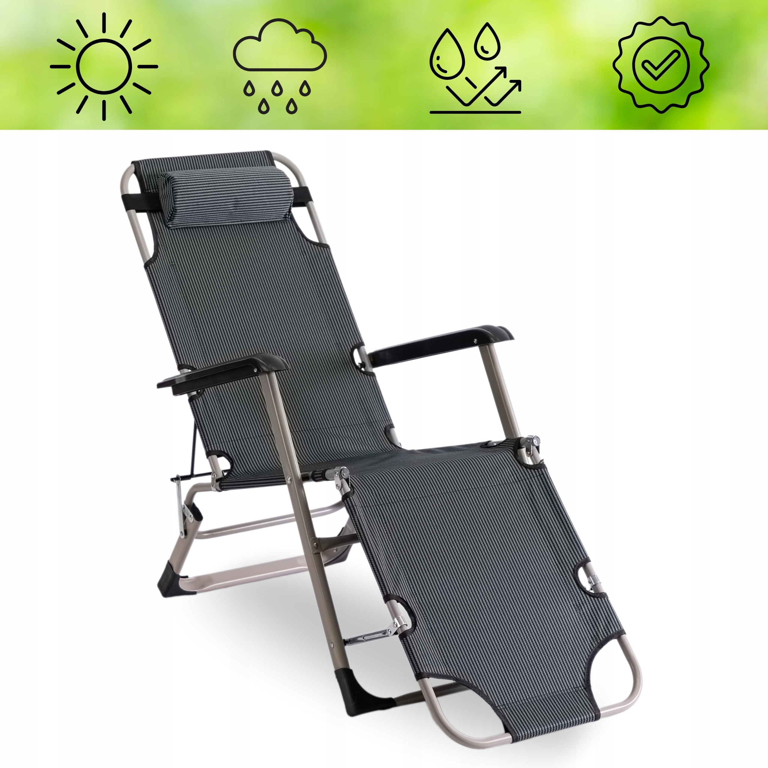 ✅ Leżak ma regulowane oparcie, dzięki czemu możesz dostosować kąt nachylenia według własnych potrzeb.
