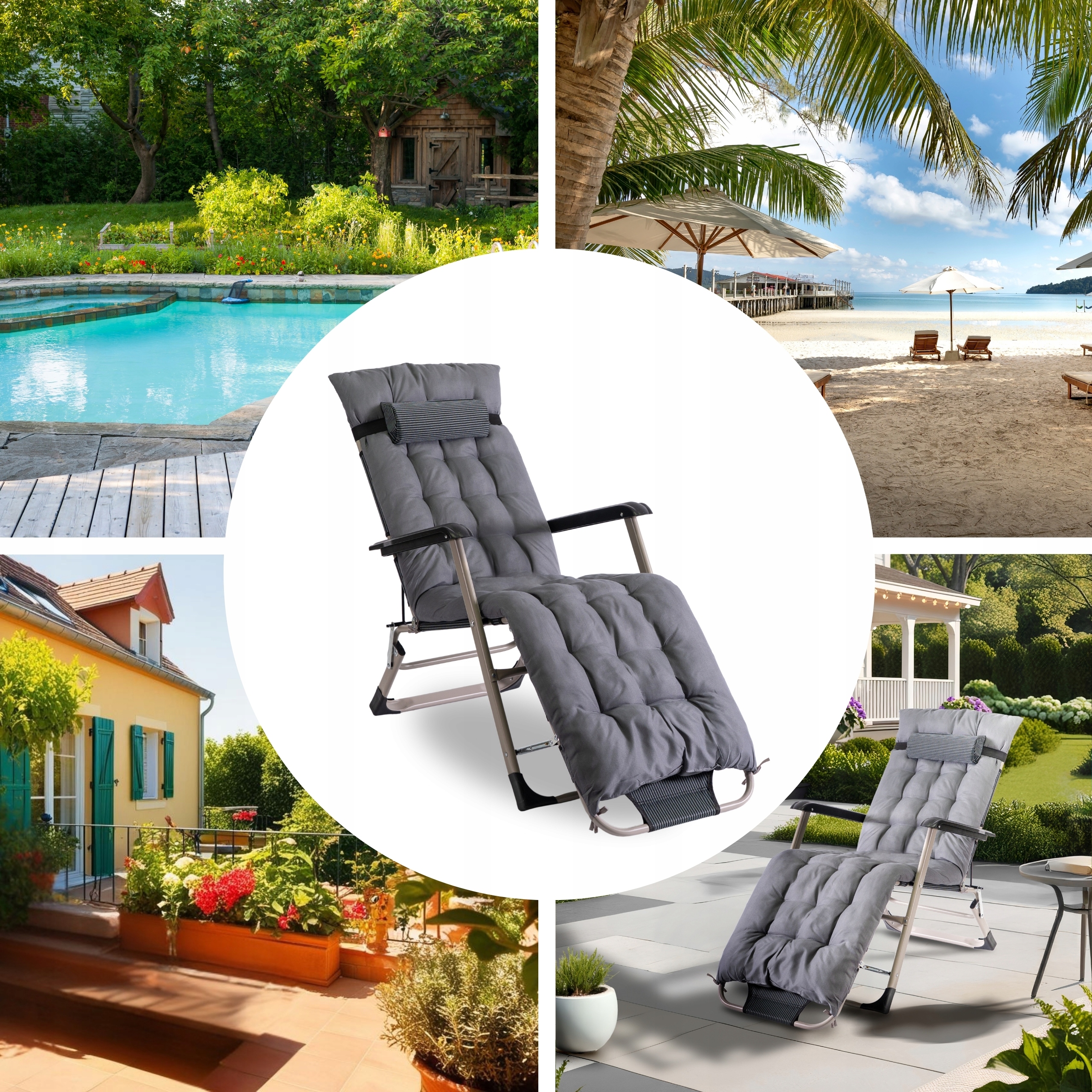 Miękka, zdejmowana poduszka na leżak sprawia, że odpoczynek jest jeszcze bardziej komfortowy. Ciesz się wygodą przez długie godziny – niezależnie od tego, czy siedzisz, czy leżysz.