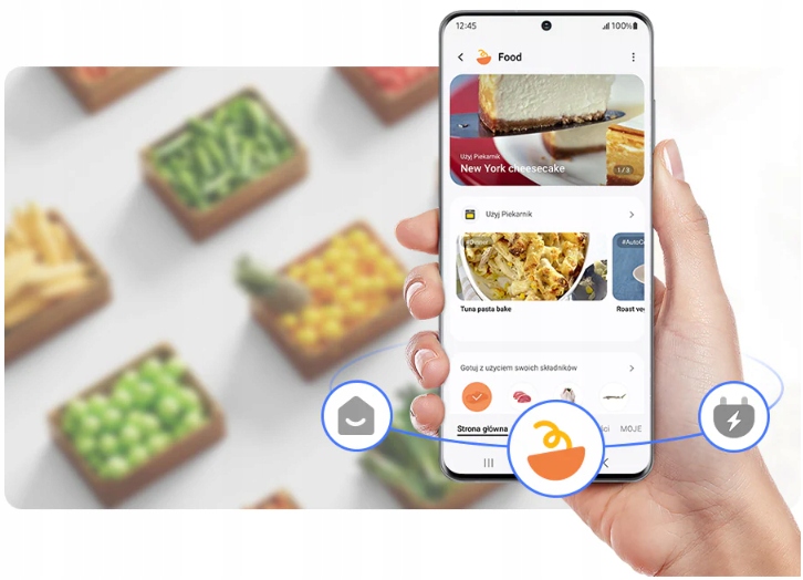 Świadomie planuj, gotuj i kupuj żywność. Samsung Food* umożliwia tworzenie listy przechowywanych produktów i zarządzanie ich datami ważności - dzięki temu zawsze możesz sprawdzić, co akurat masz w lodówce. Proponuje również spersonalizowane przepisy na podstawie Twoich preferencji oraz posiadanych składników.