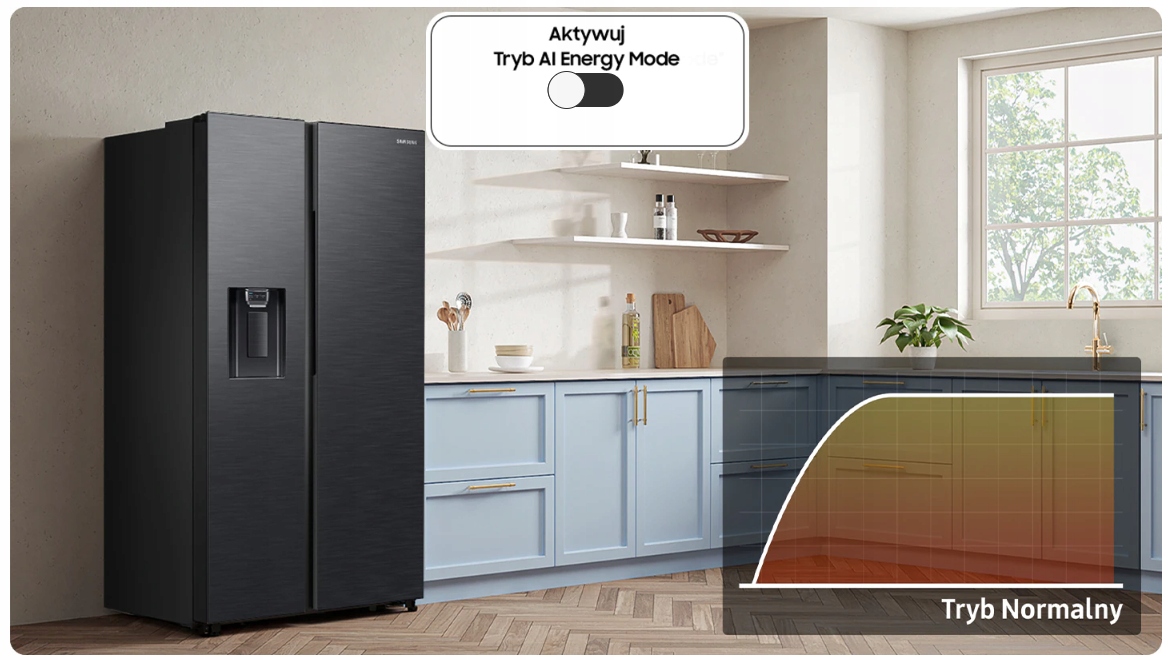 Zmniejsz zużycie energii nawet o 10%* dzięki trybowi AI Energy**. Jeśli szacowany rachunek za energię elektryczną przekracza założony cel, urządzenie oferuje opcję oszczędzania energii***. Optymalizuje pracę sprężarki i cykl odszraniania na podstawie wzorca sposobu użytkowania i warunków otoczenia.