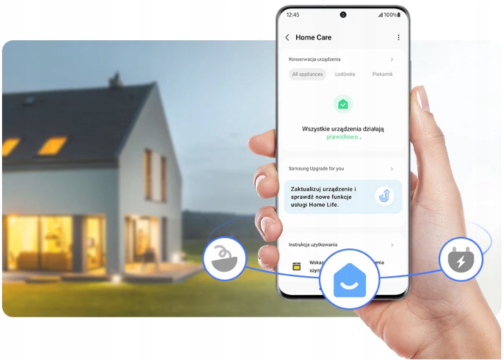 Teraz łatwiej zadbasz o lodówkę. SmartThings Home Care* zapewnia jej monitorowanie i alerty w czasie rzeczywistym, więc możesz sprawdzać bieżący stan urządzenia. Automatycznie powiadamia o konieczności wymiany części lub wykrytych problemach i sugeruje rozwiązanie.