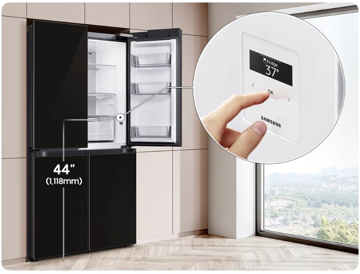 Pewnie i łatwo korzystaj z lodówki, nawet jeśli masz ograniczone ruchy. Wewnętrzny wyświetlacz jest zgodny ze standardami Americans with Disabilities Act (ADA)*, co oznacza, że wszystkie elementy sterujące znajdują się w zasięgu ręki i można je obsługiwać za pomocą jednej dłoni.