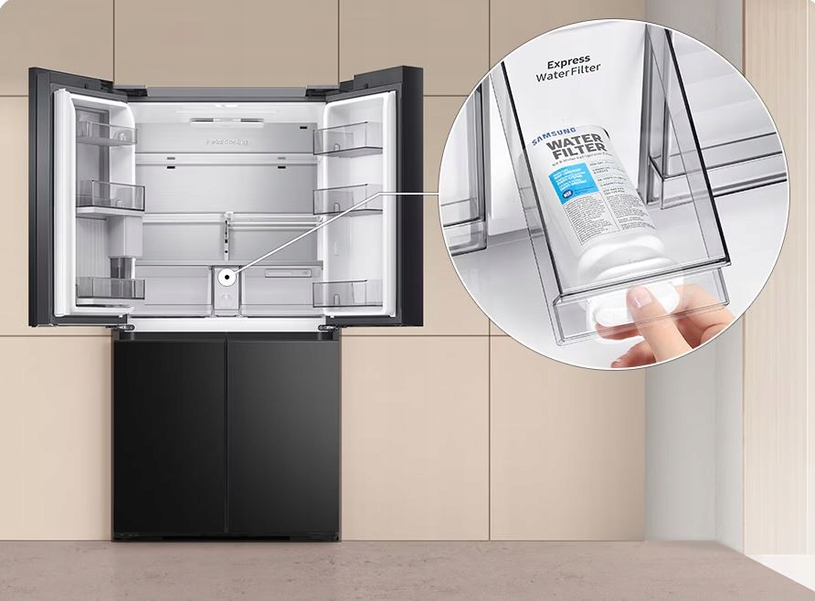 Pij świeżą i smaczną wodę. Wewnętrzny filtr wody usuwa niektóre obecne w dostarczanej przez dystrybutor wodzie zanieczyszczenia. Dzięki temu możesz cieszyć się chłodnymi napojami, nie martwiąc się o jakość wody. Filtr jest łatwo dostępny i prosty w konserwacji − wystarczy go wymieniać co 6 miesięcy.