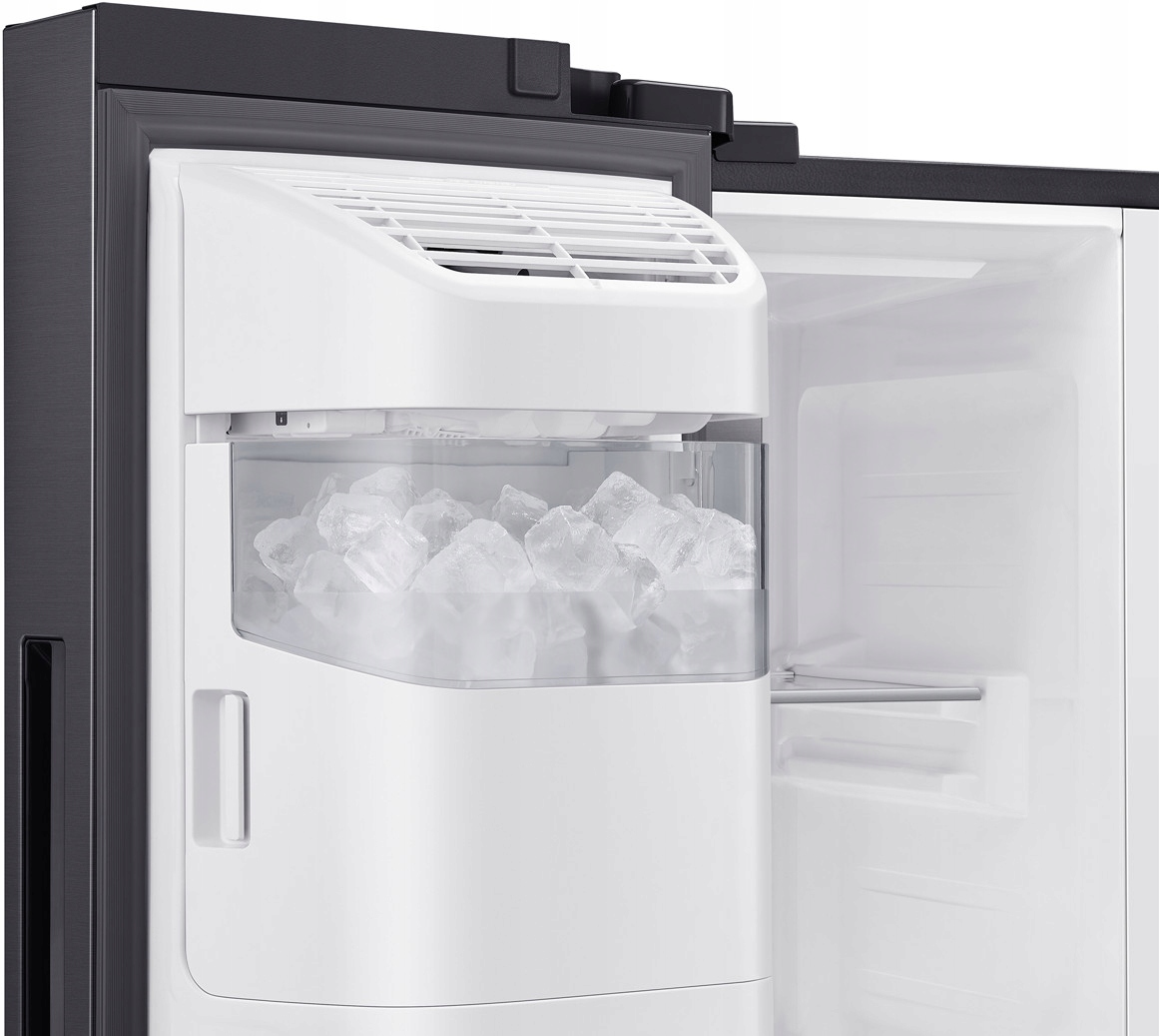 Więcej przestrzeni, by pomieścić więcej żywności, bez rezygnowania ze swobodnego dostępu do lodu w kostkach. Jako że kostkarka jest wbudowana w drzwi, zapewnia więcej miejsca, ponieważ zwalnia przestrzeń na półce zamrażarki, oferując przy tym dużą liczbę kostek lodu. A jej przezroczysta plastikowa pokrywa sprawia, że bez trudu sprawdzisz, ile kostek jeszcze pozostało.