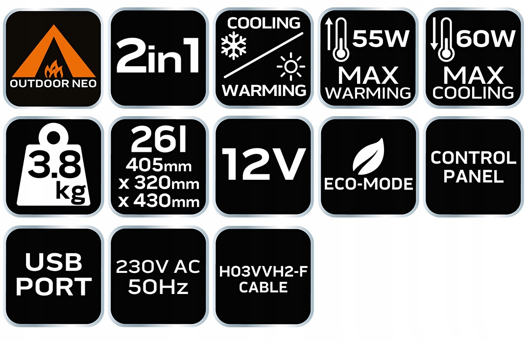 - Lodówka turystyczna NEO 2w1 z funkcją grzania i chłodzenia – 26 l