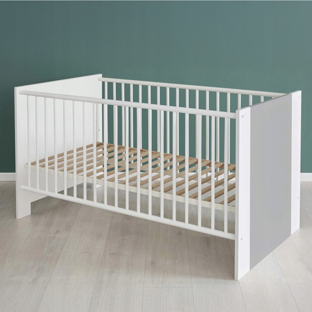 Łóżeczko Dziecięce Łóżko dla Dziecka Niemowlaka Drewniane Biały Szary Pola