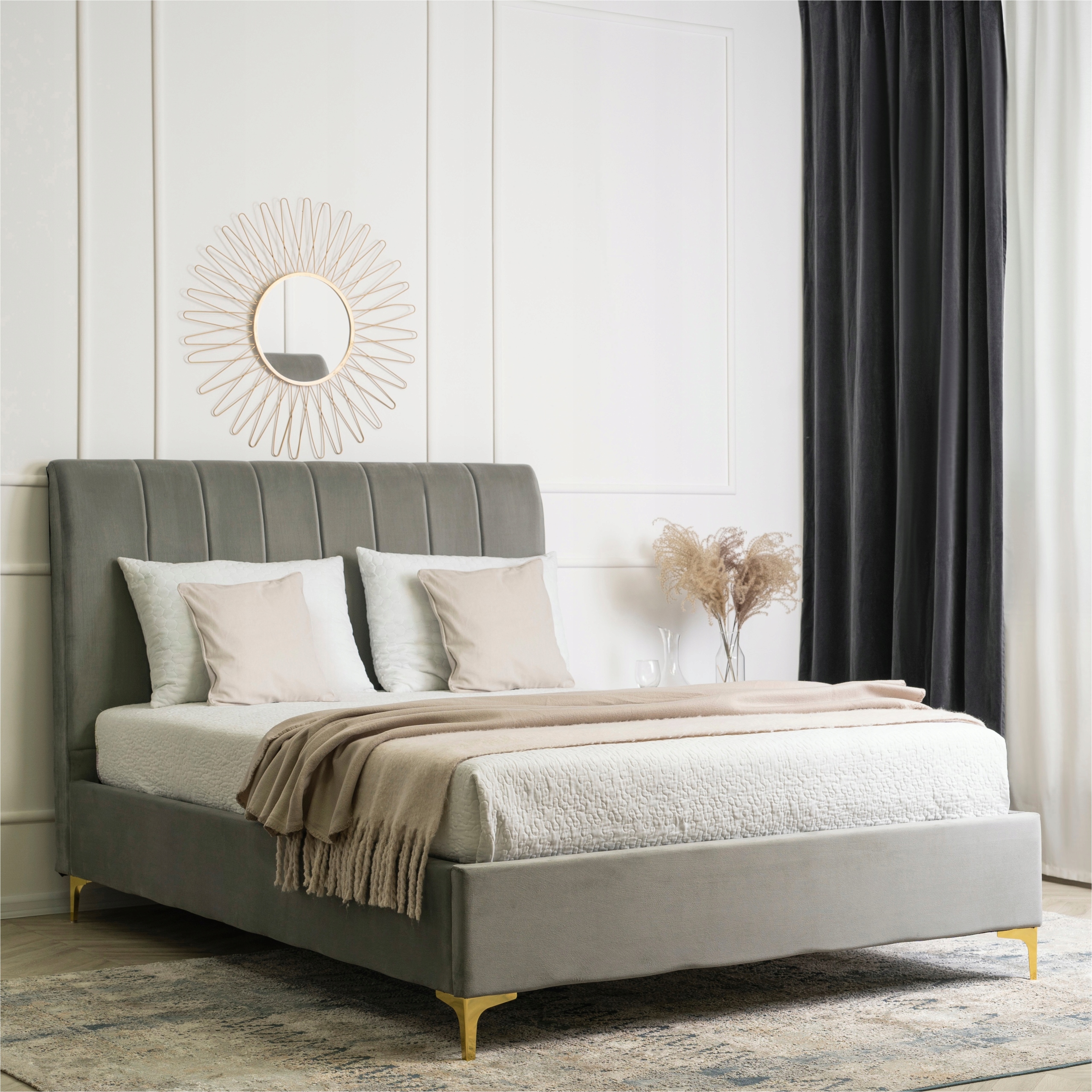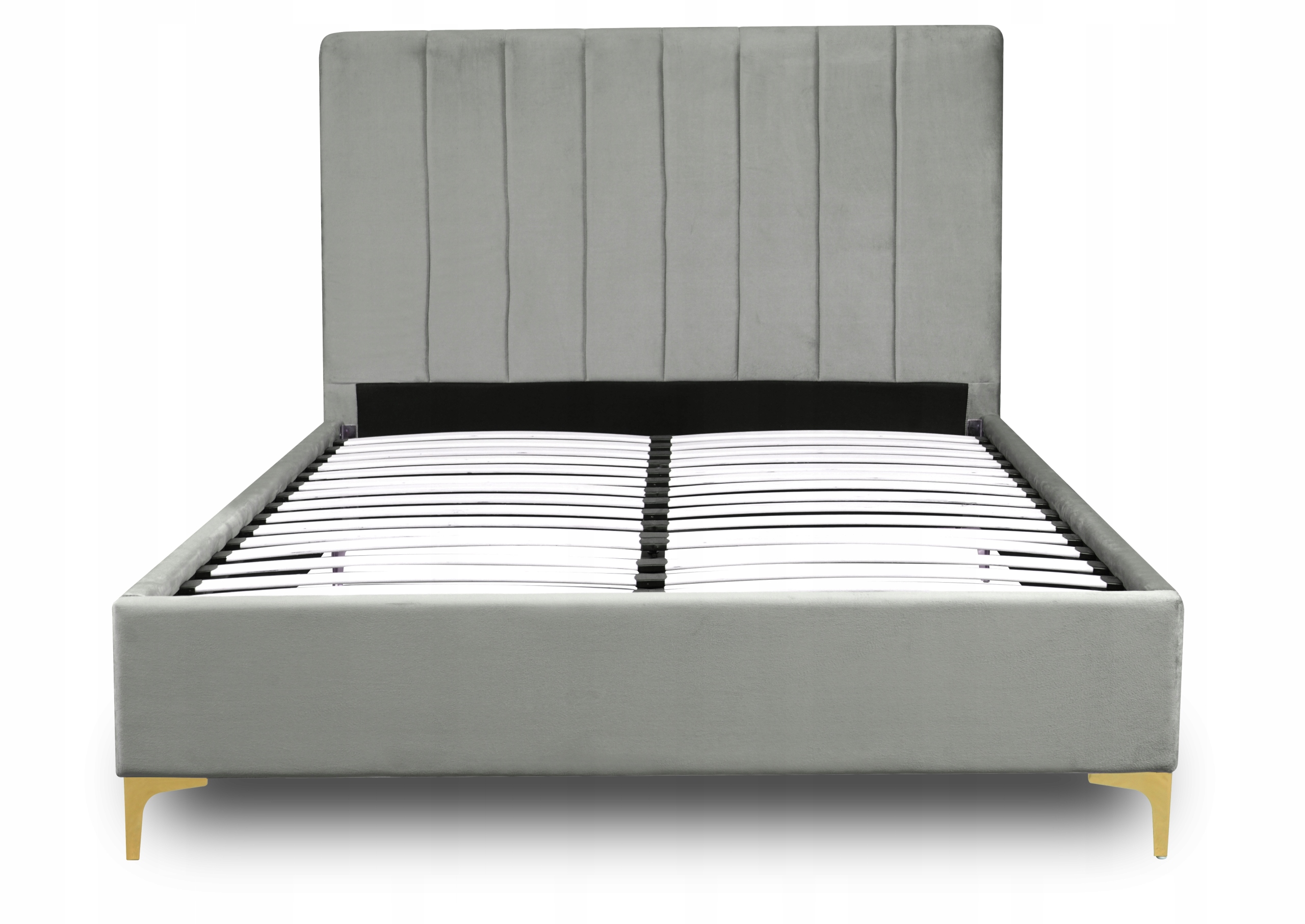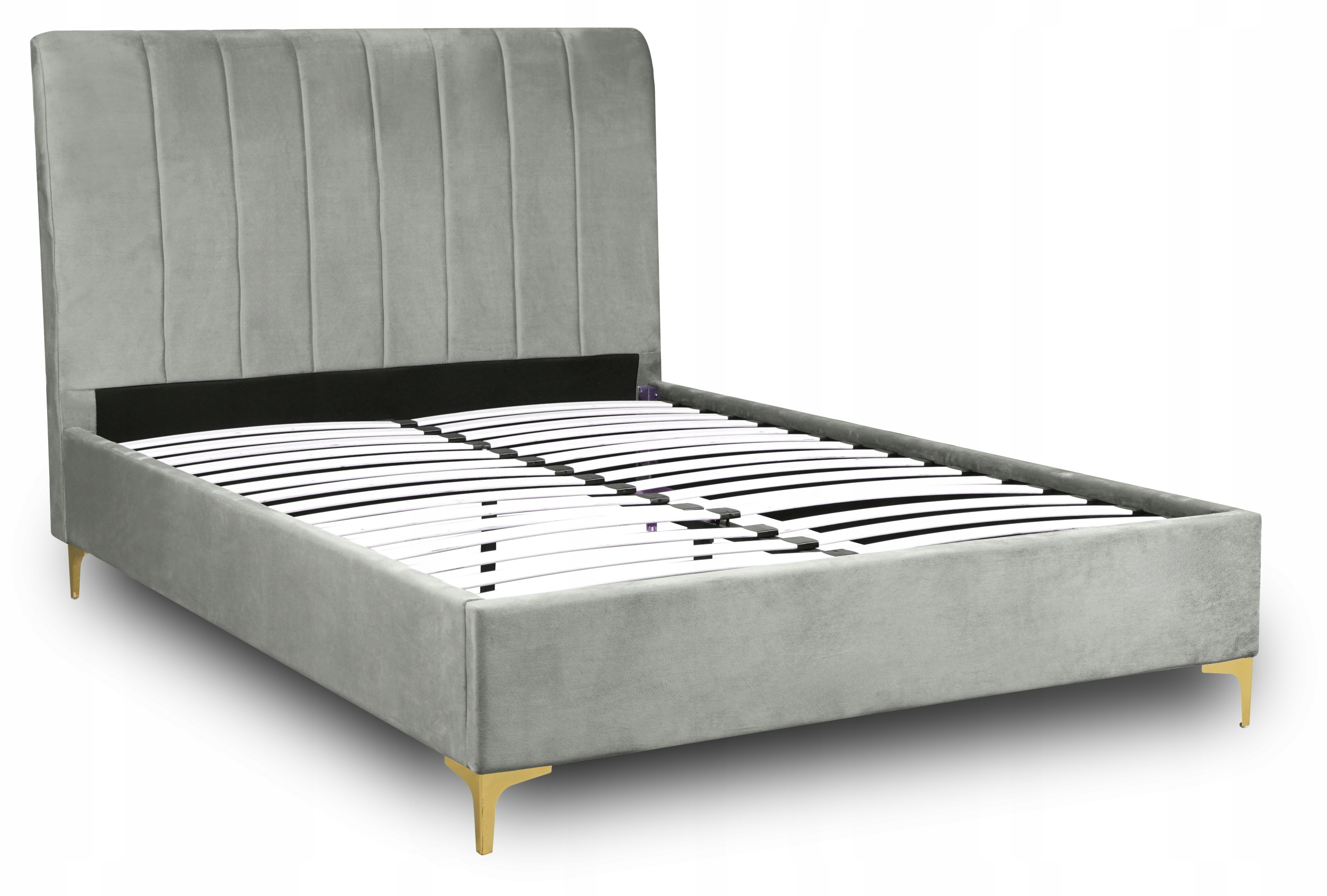 - Łóżko 140x200 MARCELO w kolorze popielatym ze złotymi nóżkami (Uwaga: łóżko jest sprzedawane bez materaca)