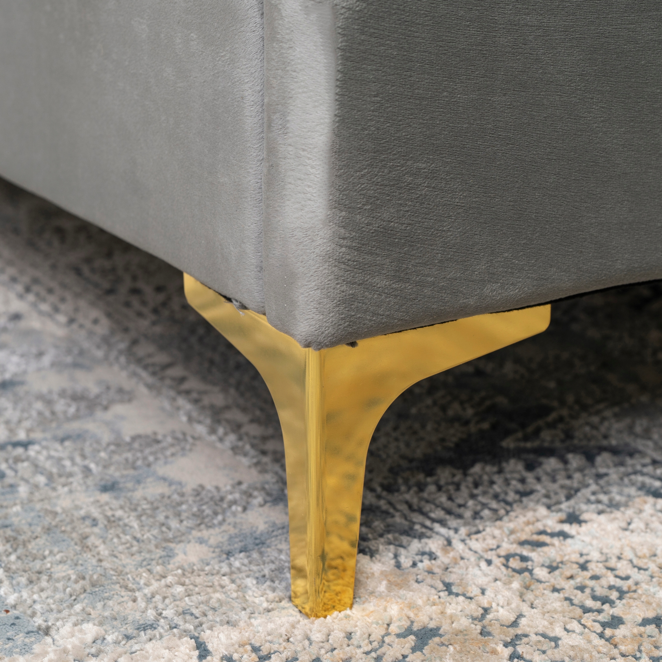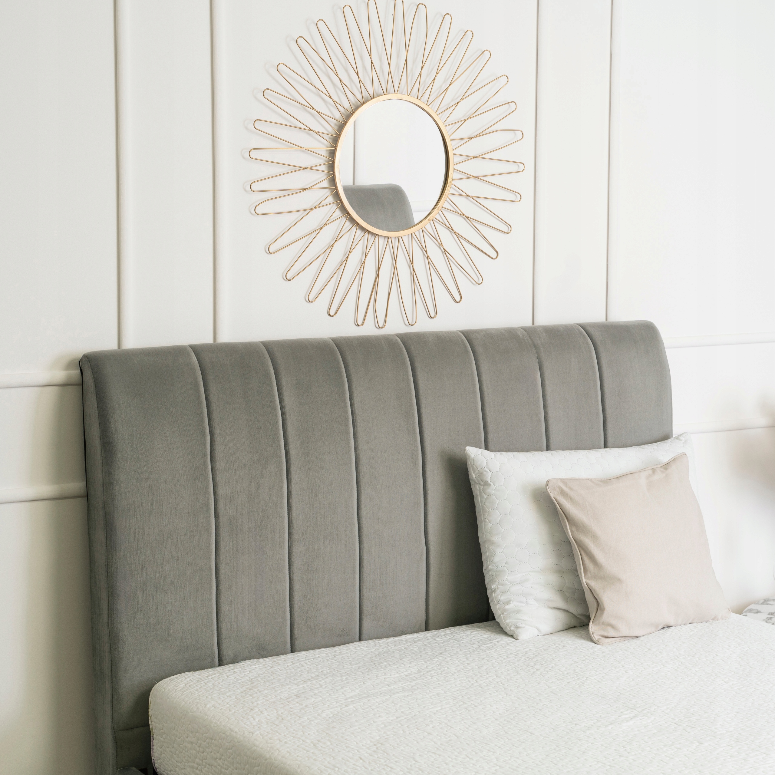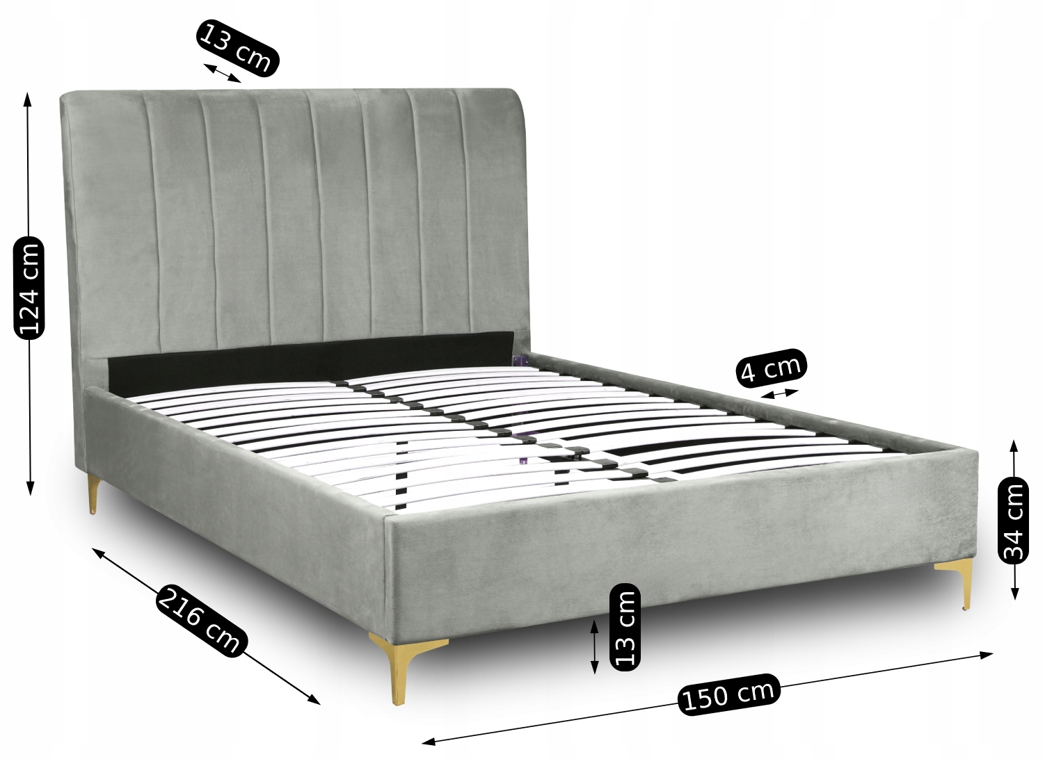 - Łóżko 140x200 MARCELO w kolorze popielatym ze złotymi nóżkami (Uwaga: łóżko jest sprzedawane bez materaca)