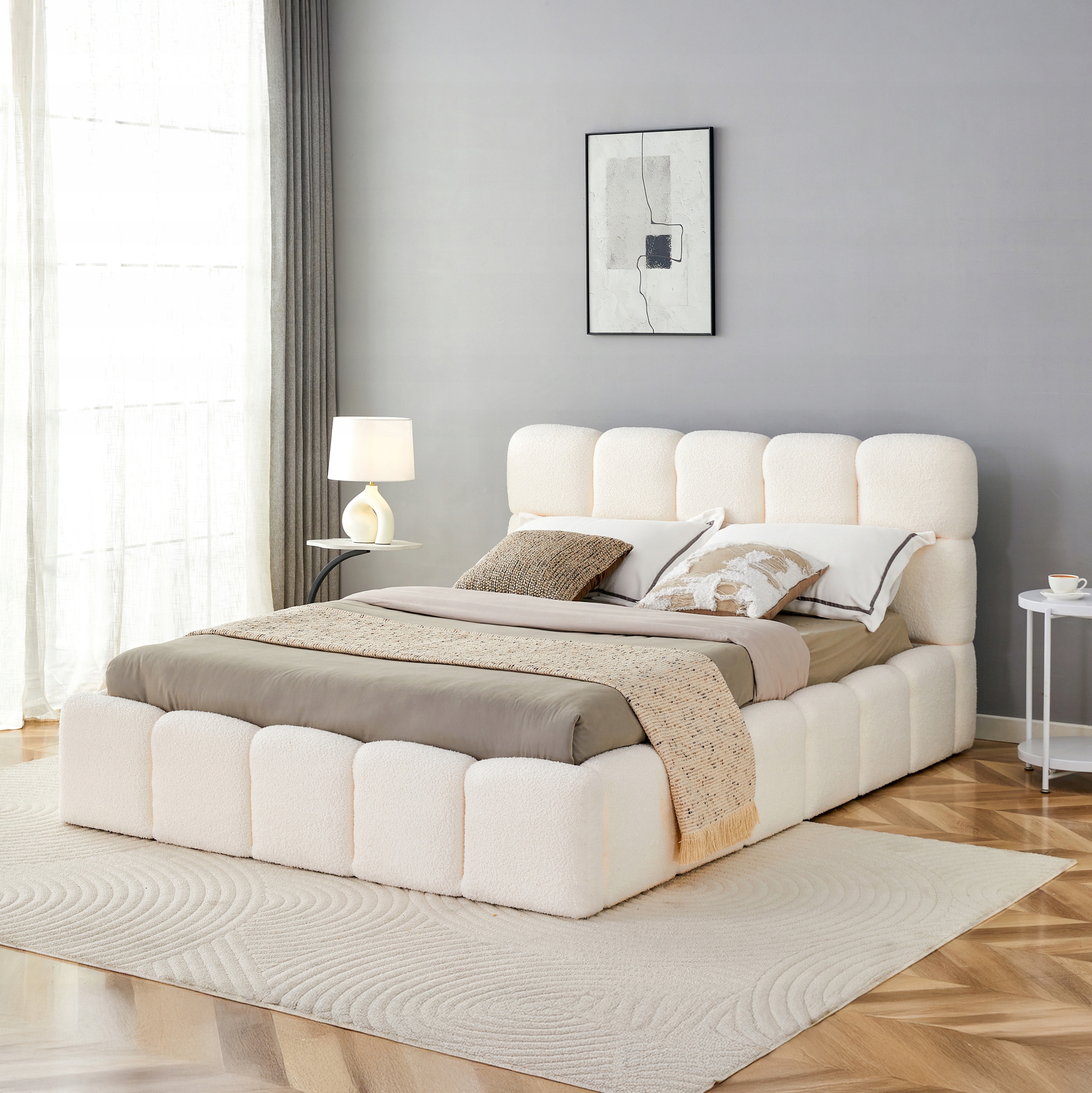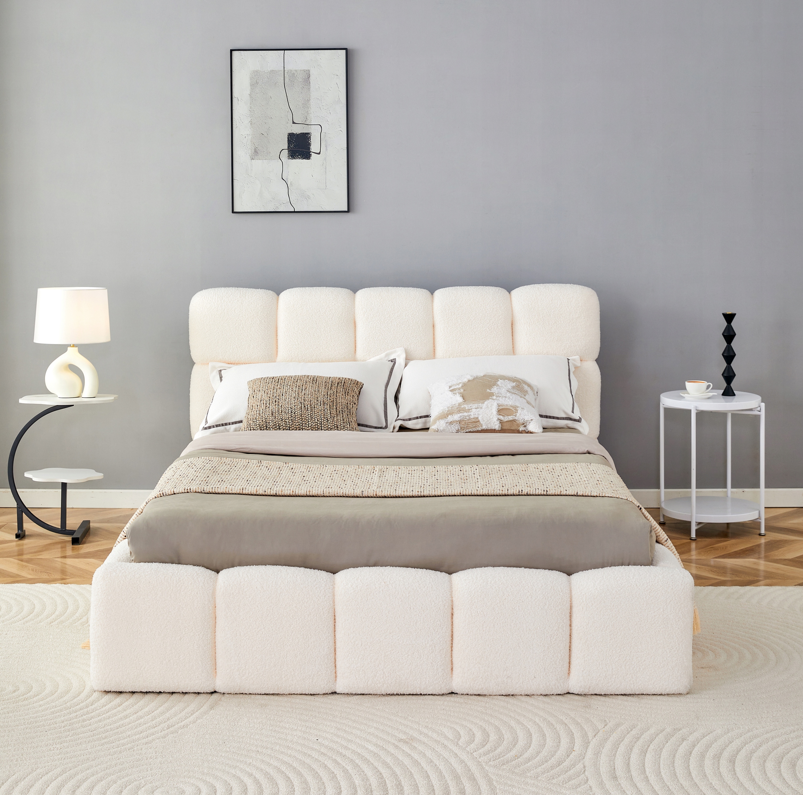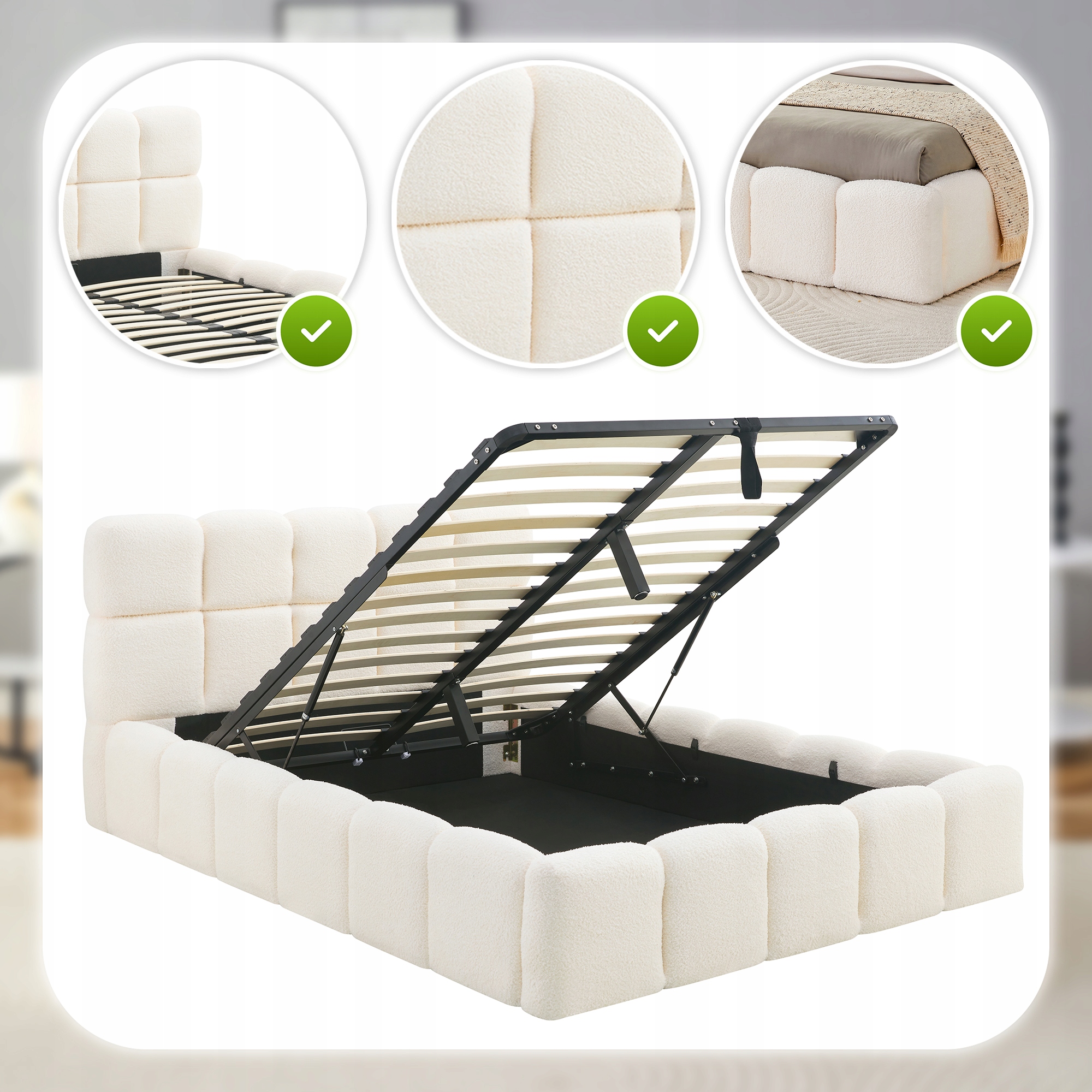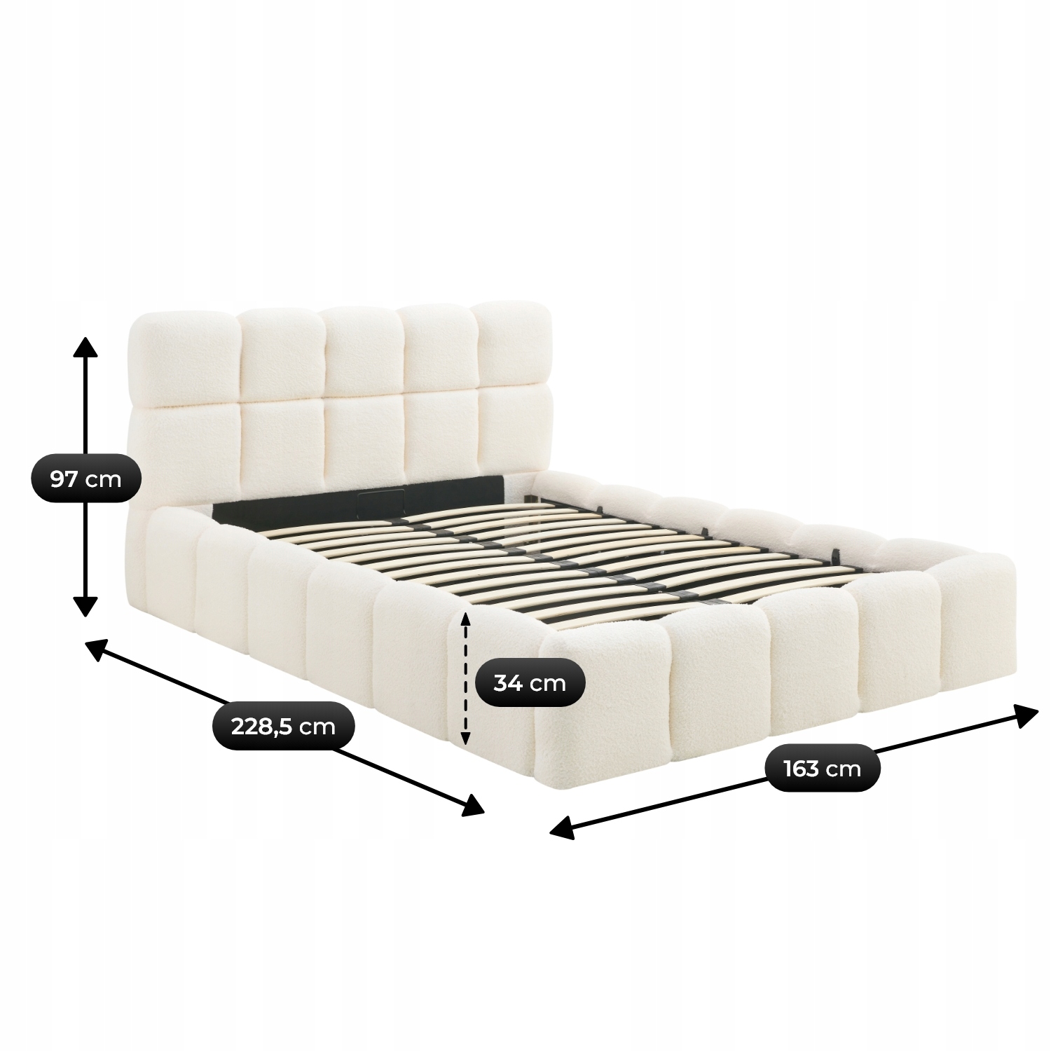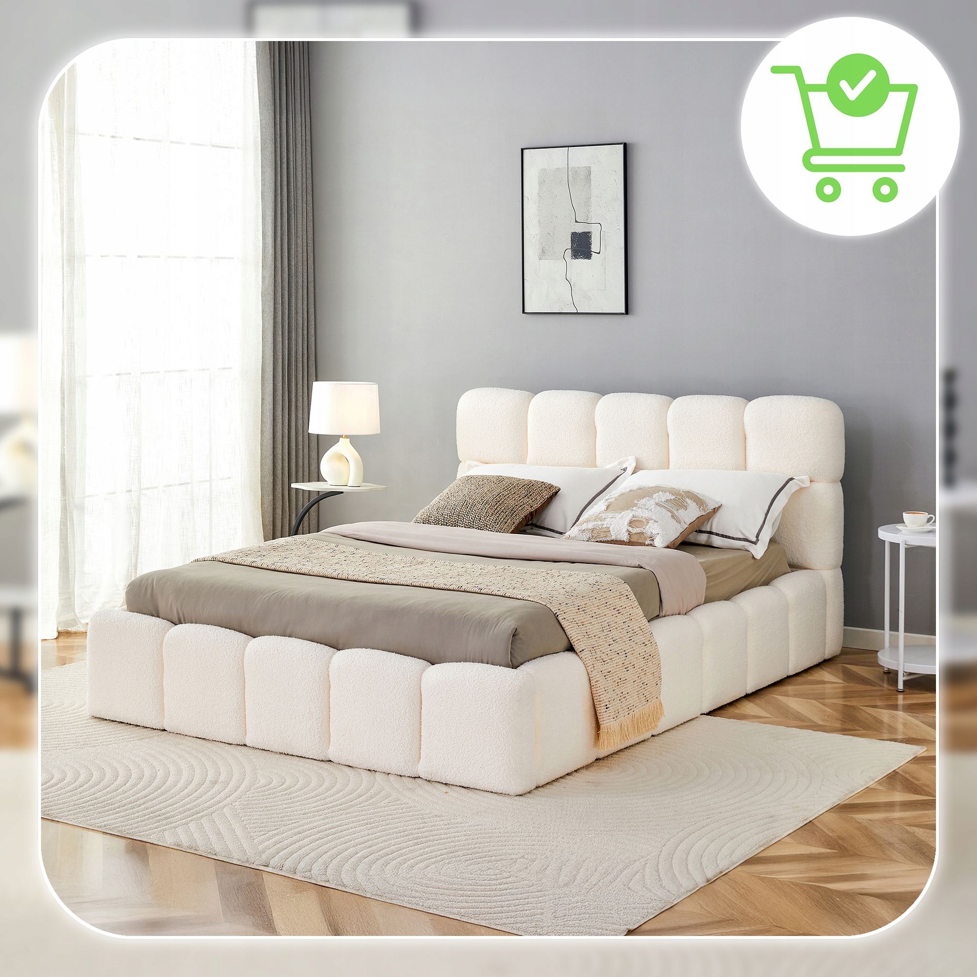✨ Łóżko 140x200 Tapicerowane Dwuosobowe Do Sypialni Baranek Krem MURCJA