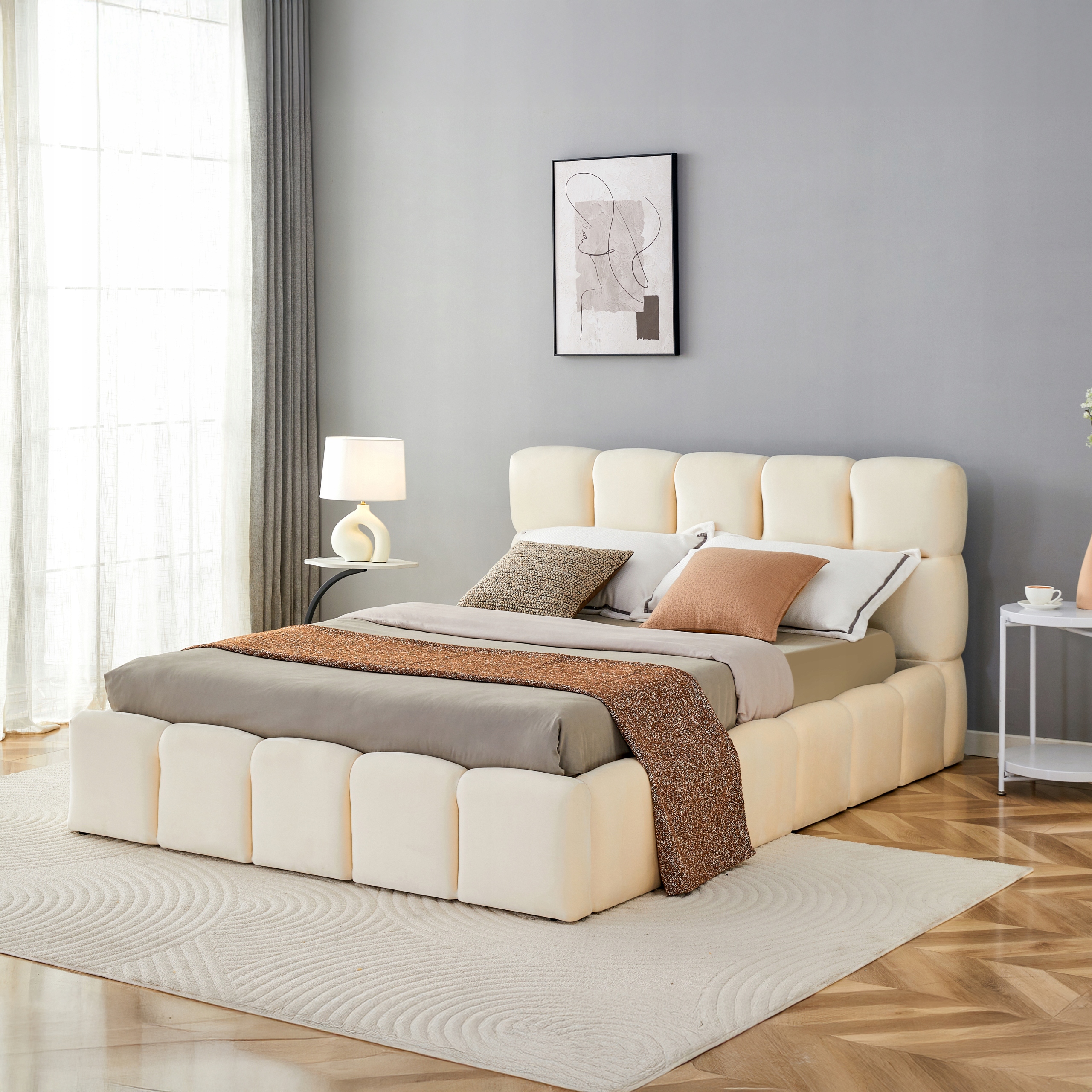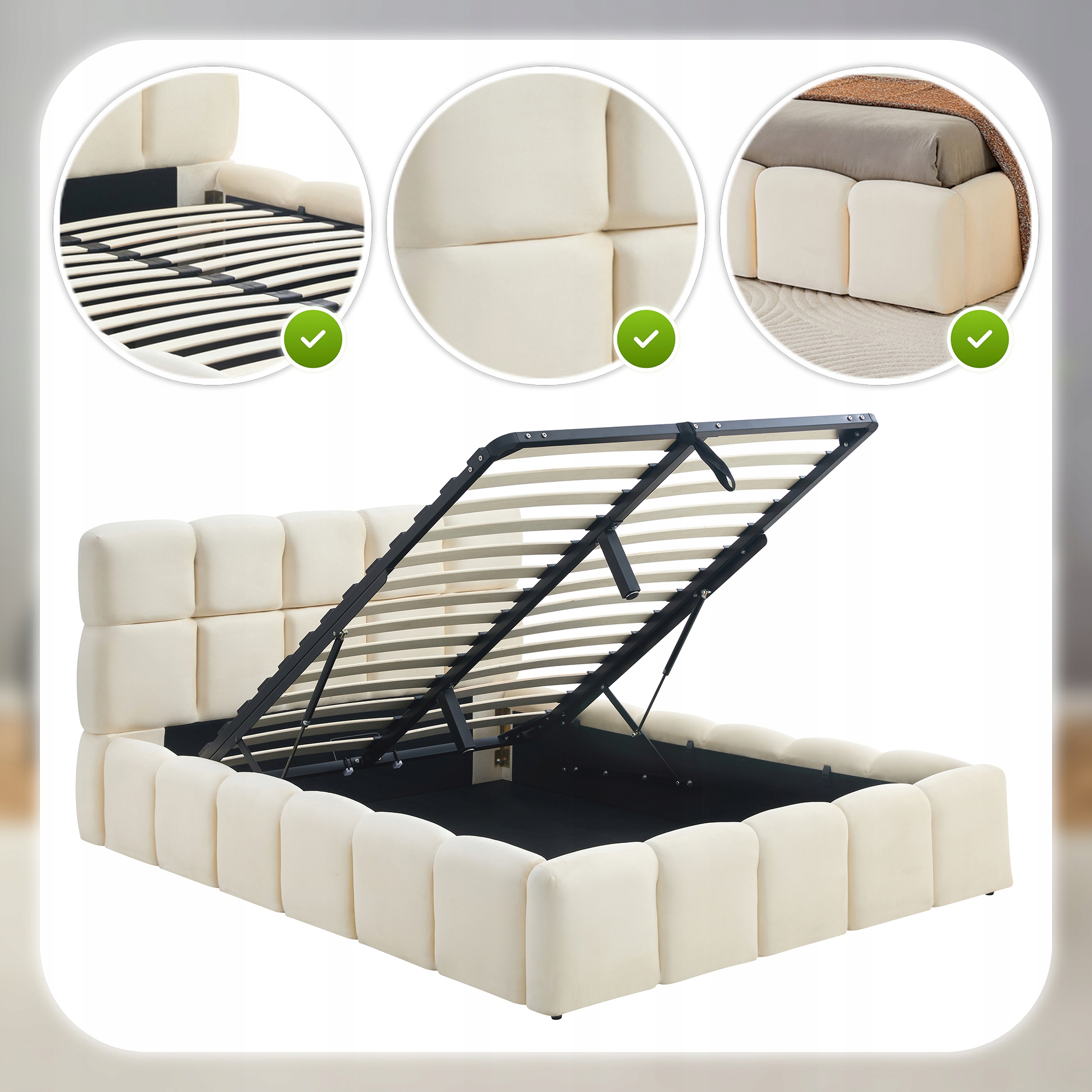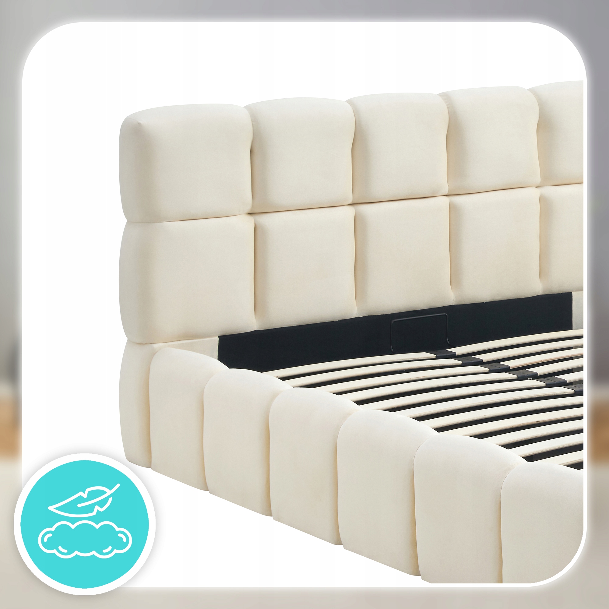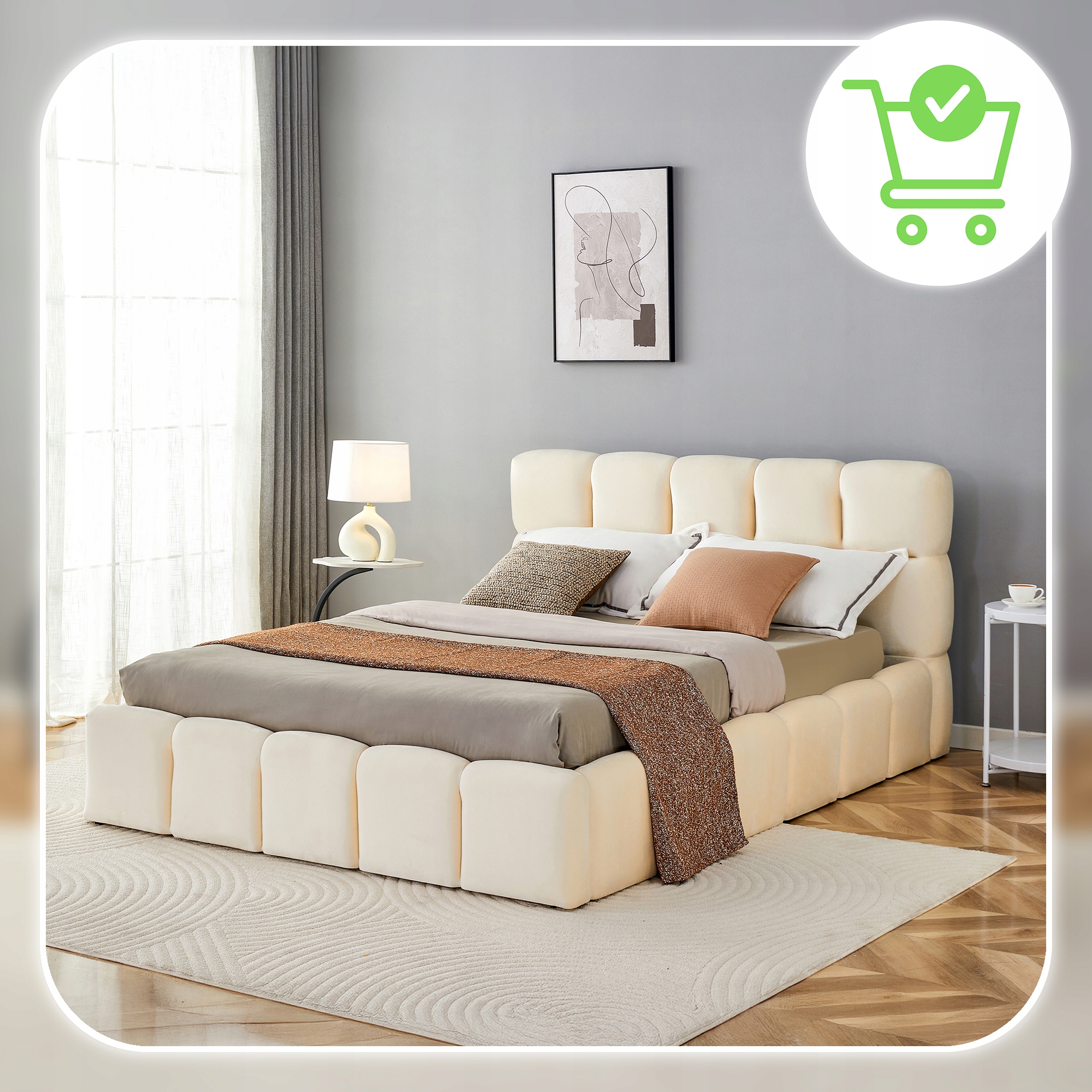 ✨ Łóżko 140x200 Tapicerowane Dwuosobowe Do Sypialni Welurowe Krem MURCJA