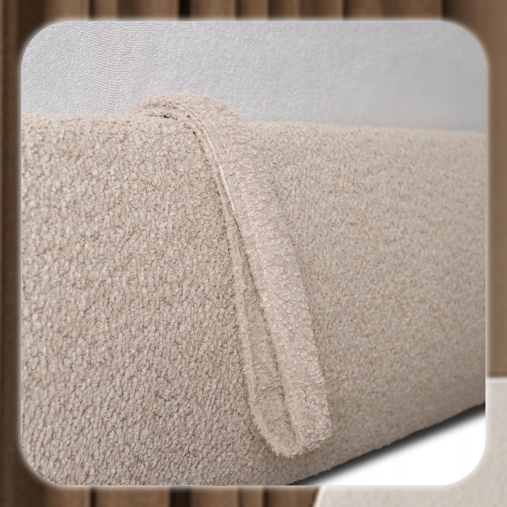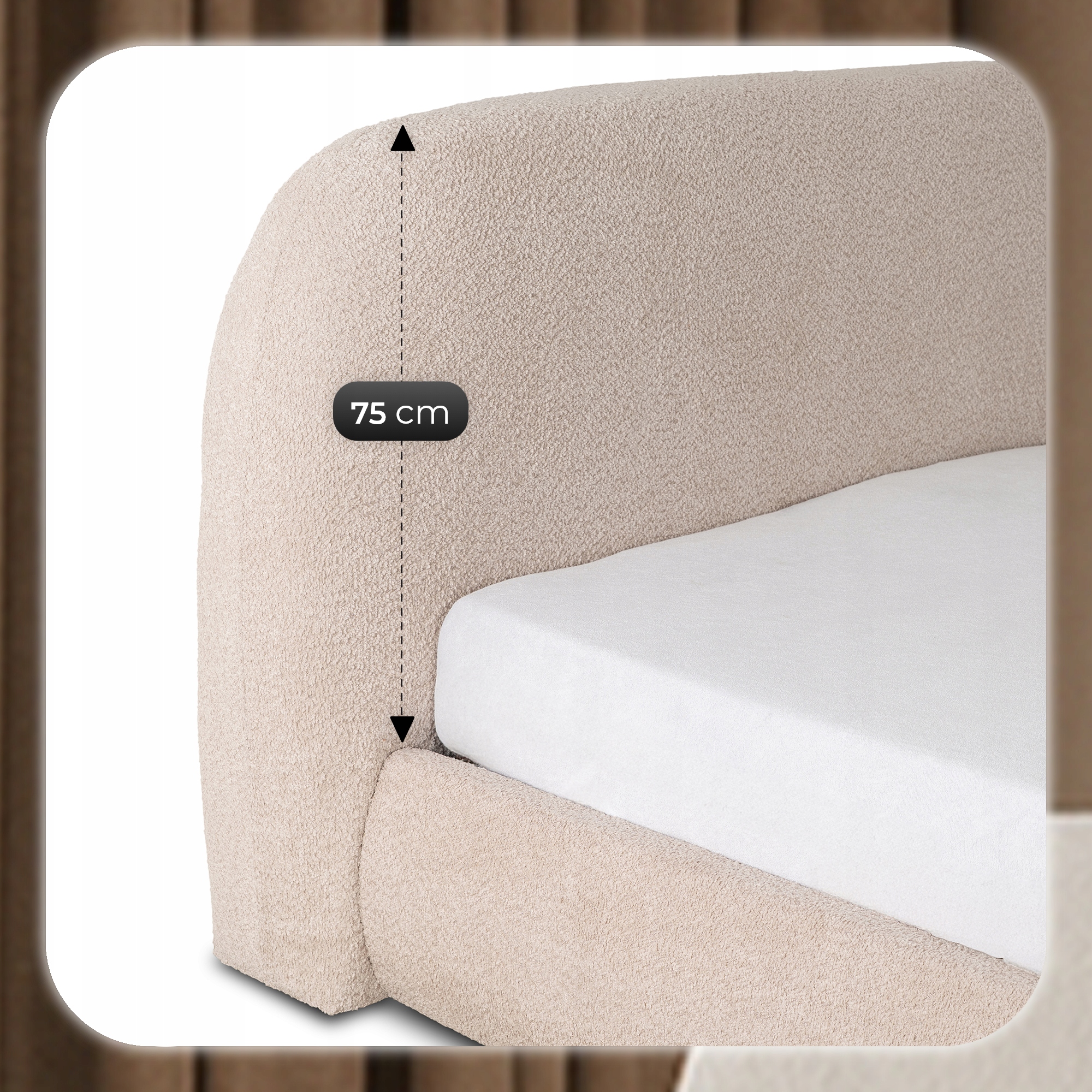Tapicerowany zagłówek o wysokości 75 cm to gwarancja wygody podczas wieczornego czytania, oglądania telewizji czy relaksu z ulubioną kawą. Jego miękka pikowana konstrukcja i eleganckie wykończenie w beżowej barankowej tkaninie dodają wnętrzu nowoczesnego charakteru, a jednocześnie sprawiają, że łóżko prezentuje się niezwykle stylowo i przytulnie.