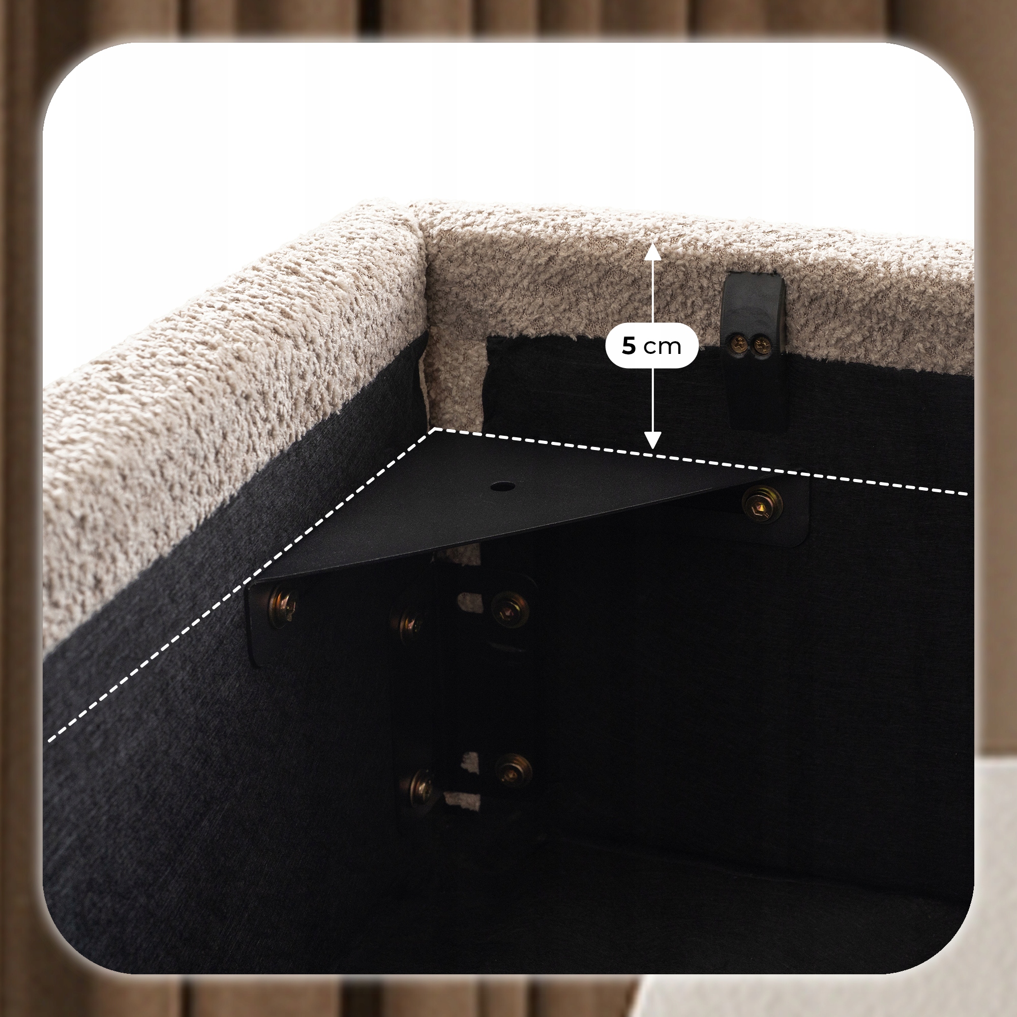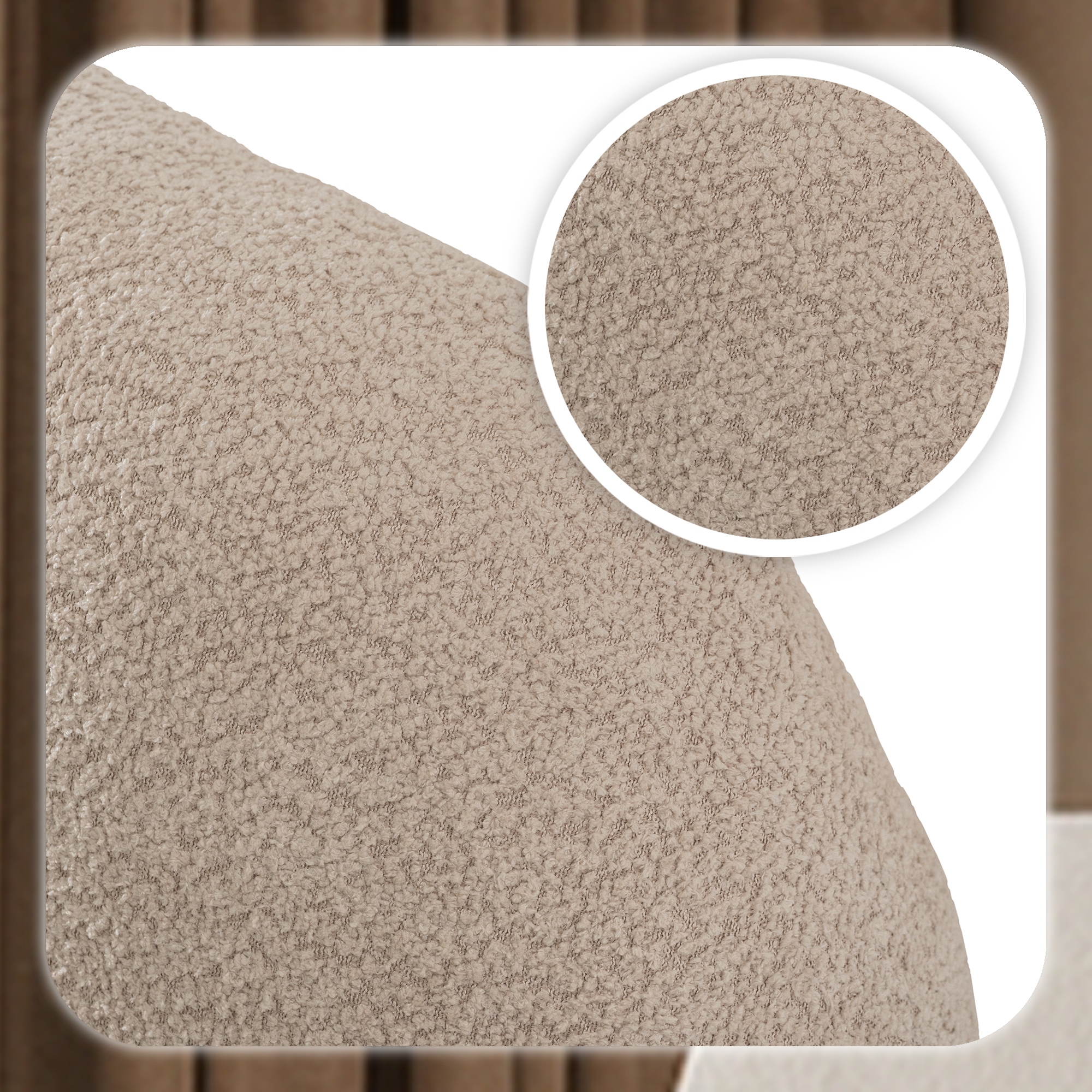- Miękka tapicerka typu teddy w beżowym kolorze – elegancka, przyjemna w dotyku i nadająca wnętrzu wyjątkowej przytulności.