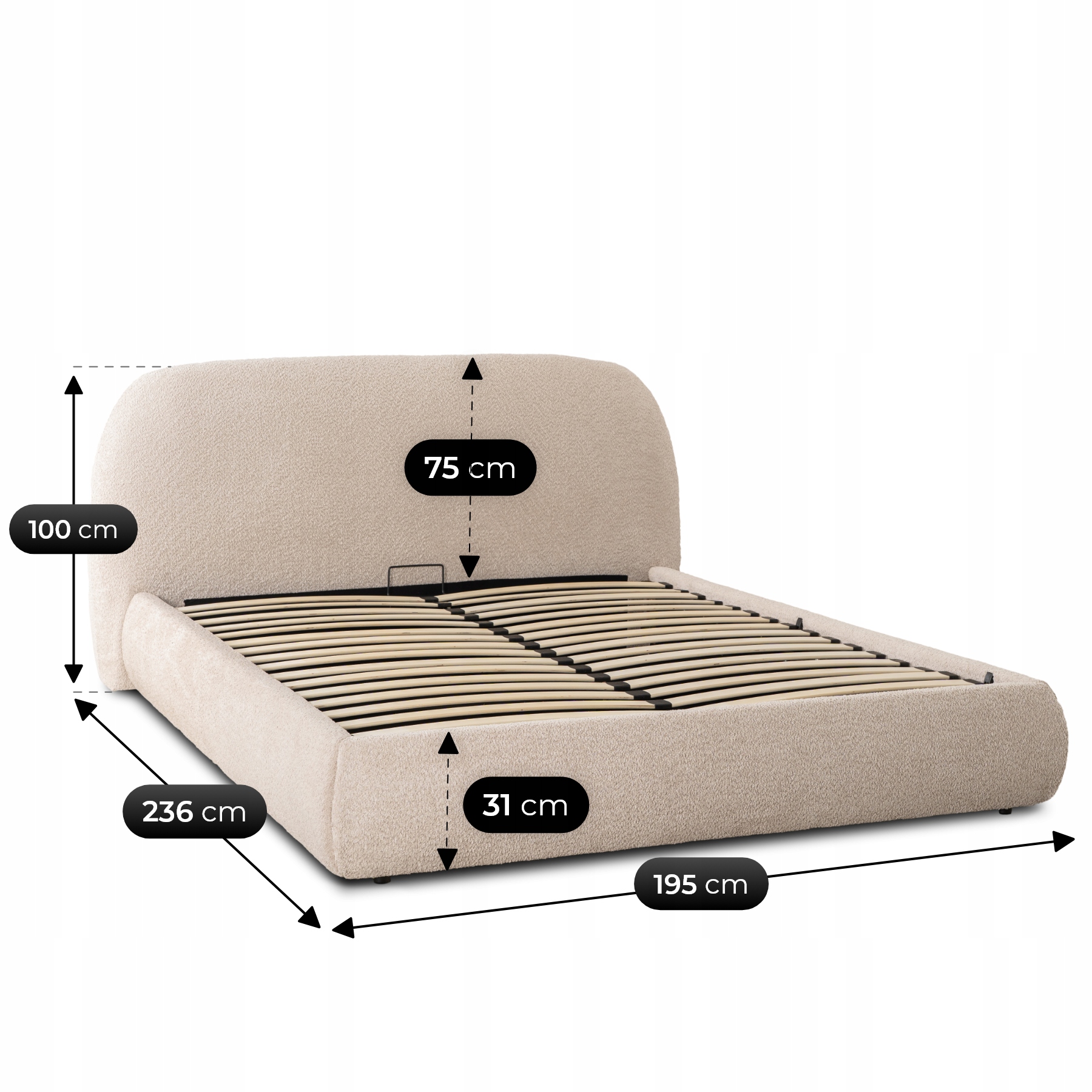 Zachwyca eleganckim beżowym kolorem i miękką barankową tapicerką, która wnosi do wnętrza przytulność i styl. Dzięki praktycznemu pojemnikowi na pościel z solidnymi podnośnikami, łączy w sobie design i funkcjonalność. To gwarancja wygody i nowoczesnego wyglądu w Twojej sypialni.