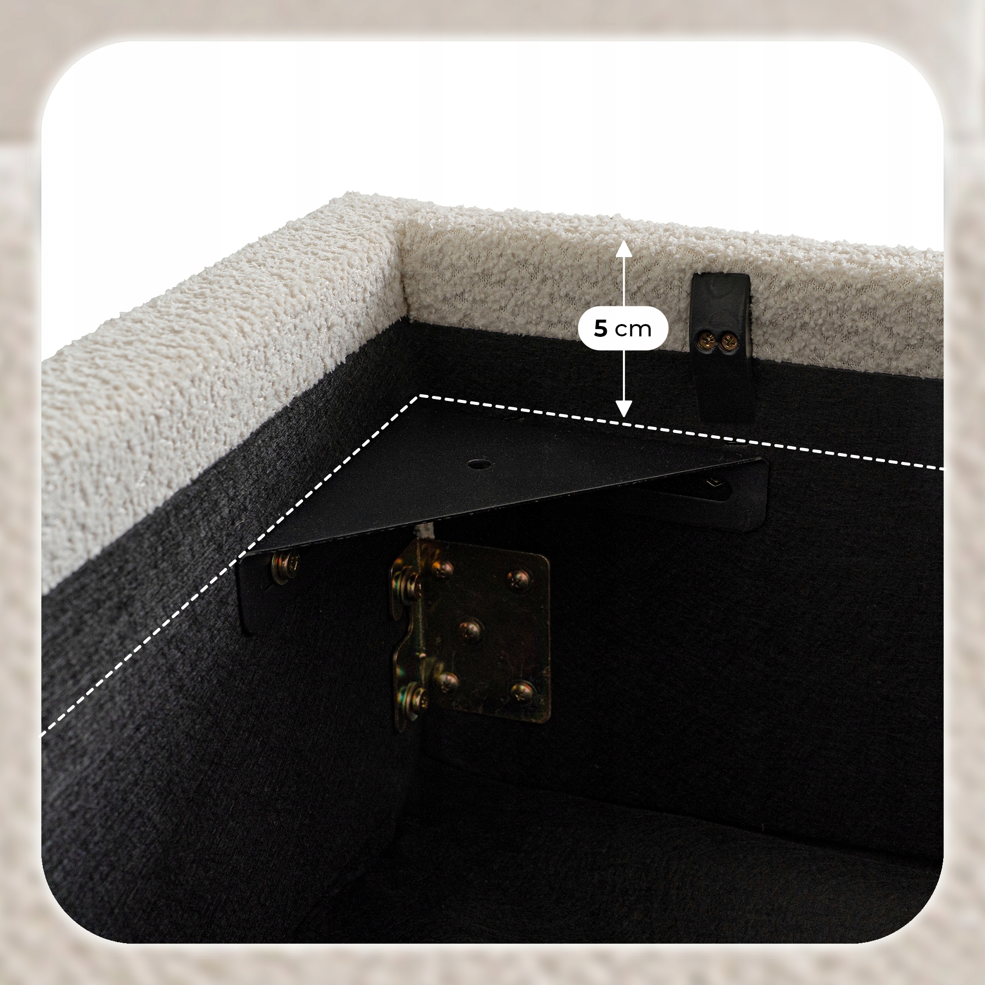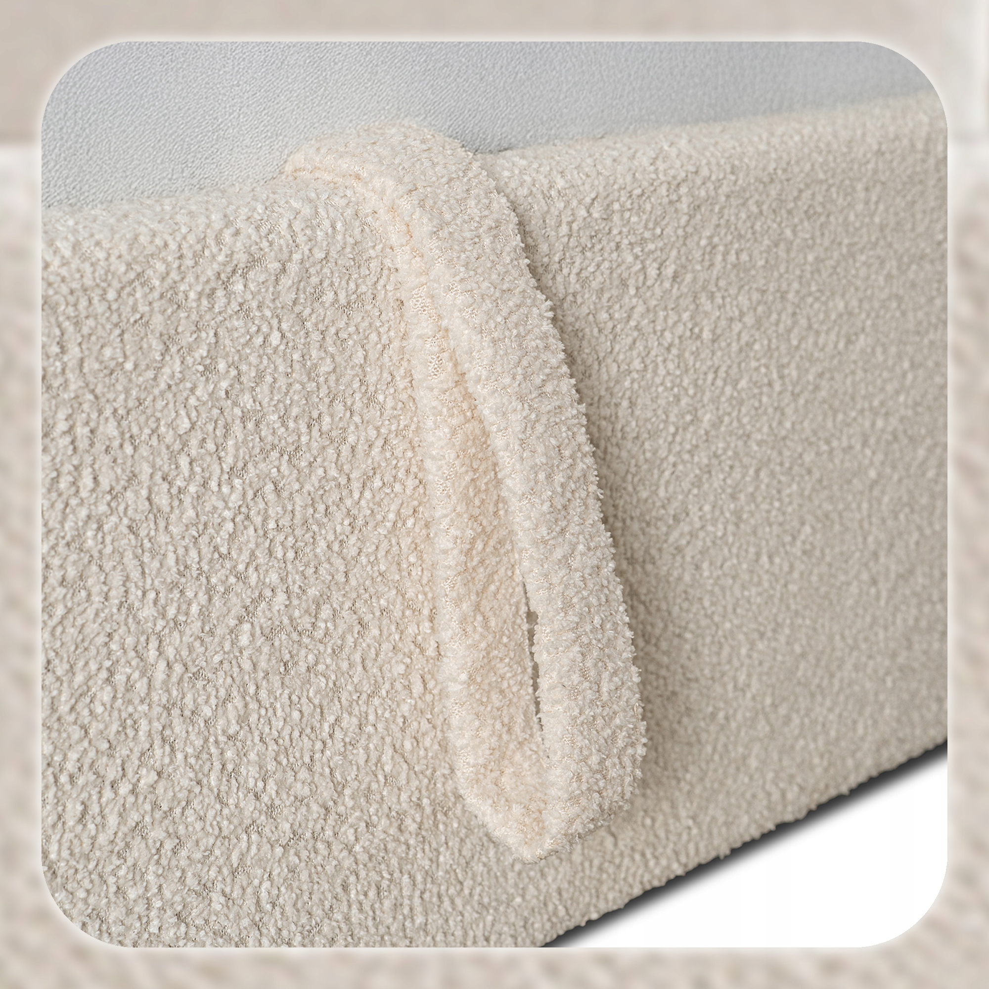 - Miękka tapicerka typu teddy w kremowym kolorze – elegancka, przyjemna w dotyku i nadająca wnętrzu wyjątkowej przytulności.