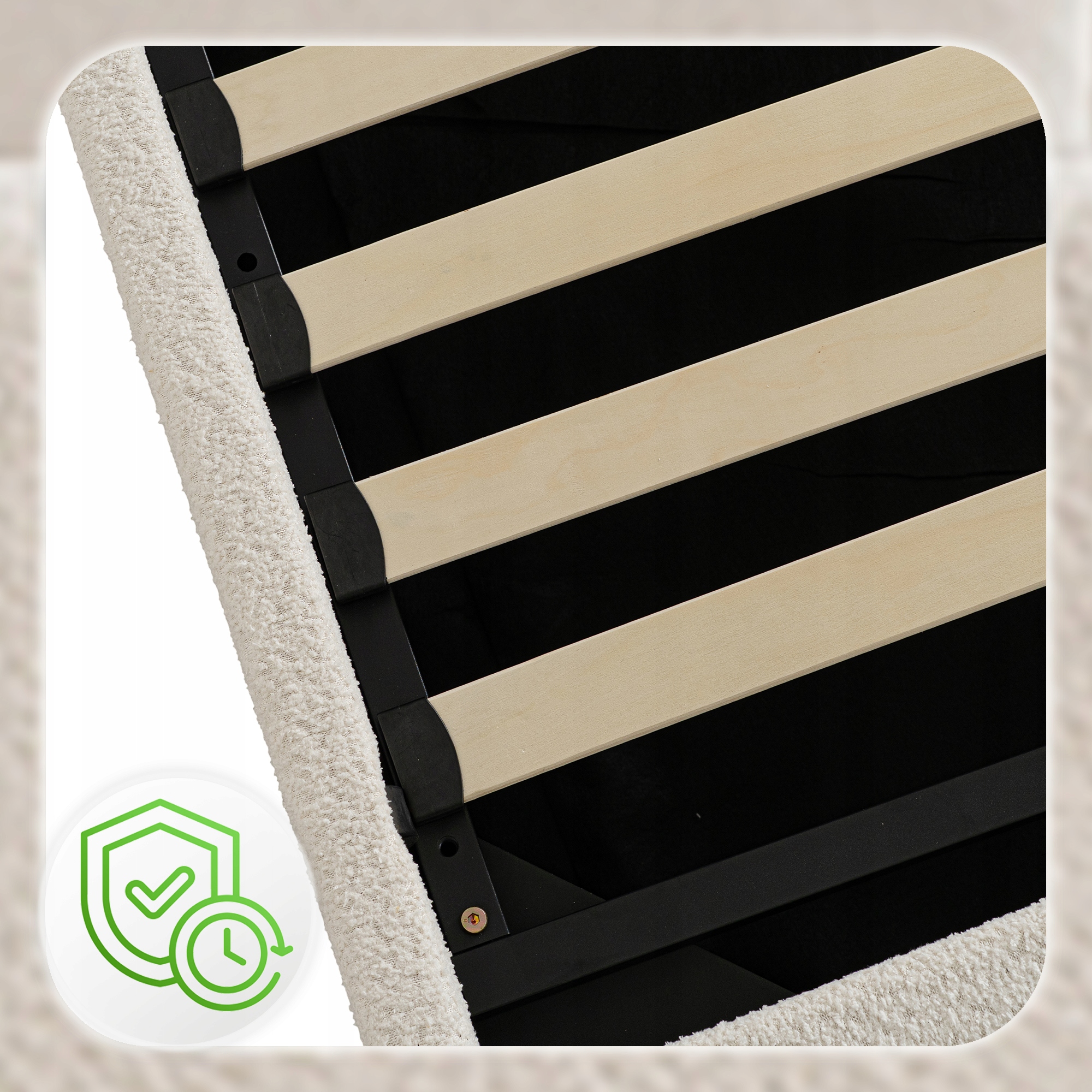 ✨ Łóżko 160x200 Tapicerowane Dwuosobowe Do Sypialni Baranek Kremowe MARSYLIA