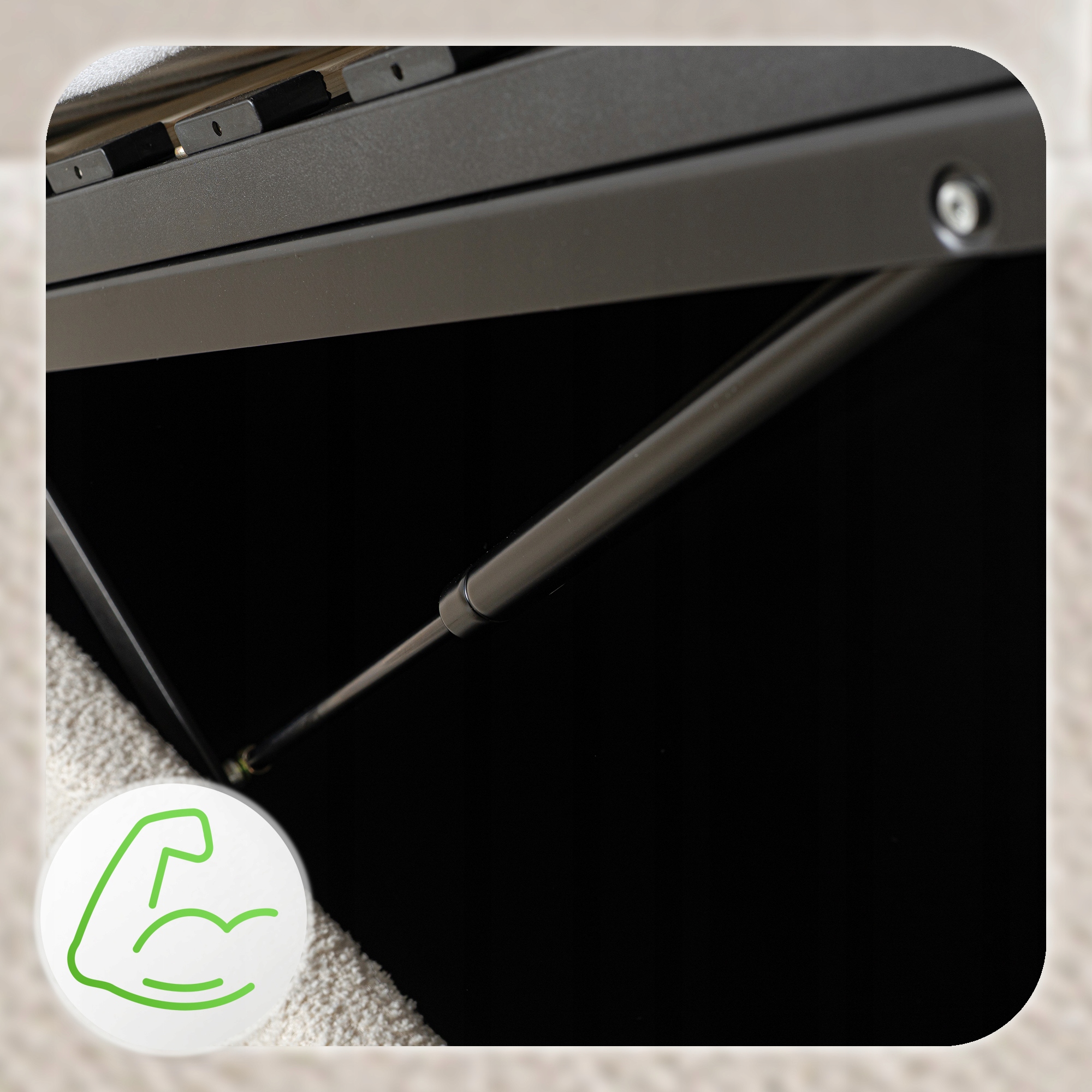 - Solidne podnośniki gazowe – ułatwiają codzienne korzystanie z pojemnika na pościel i zapewniają wygodę użytkowania.