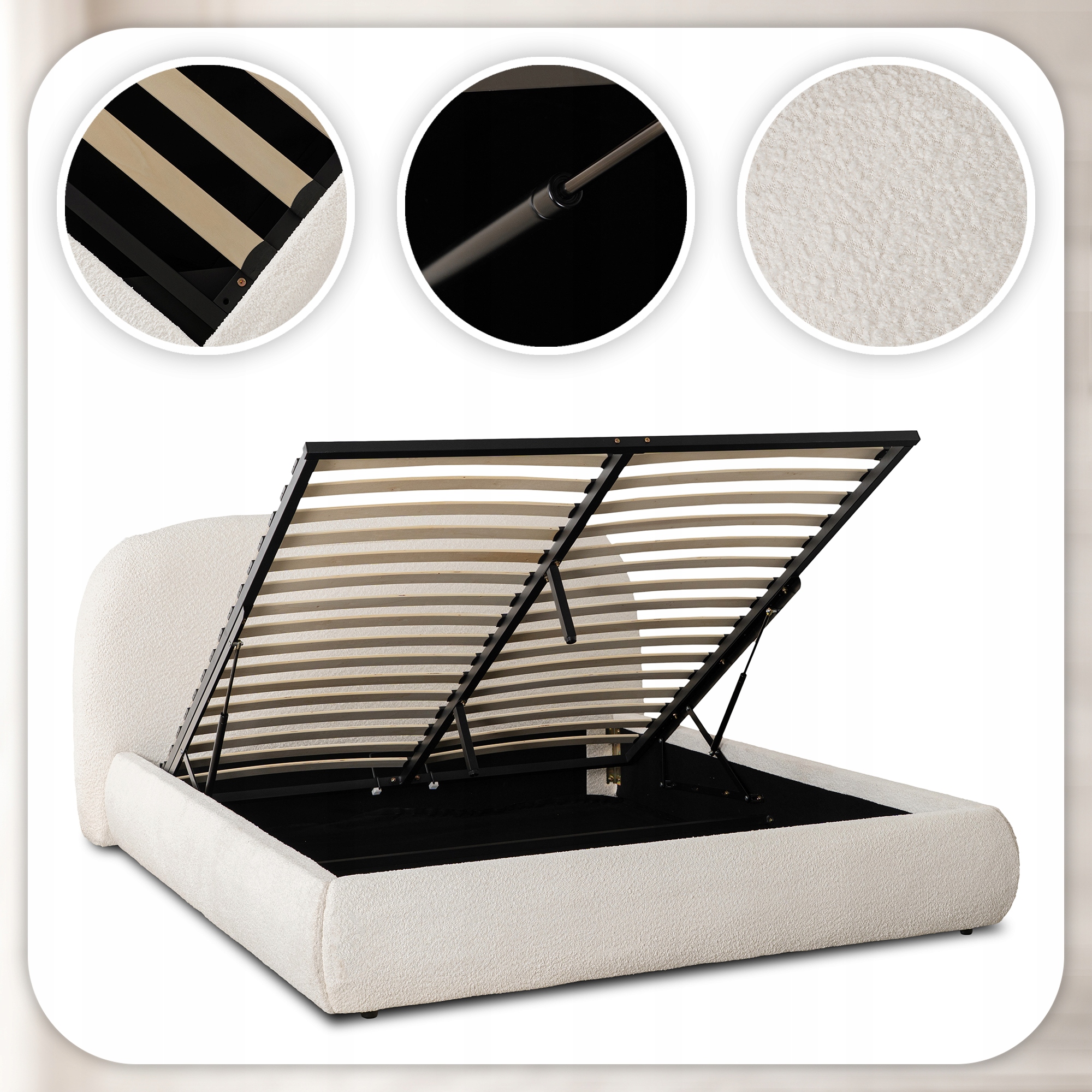 Zachwyca eleganckim kremowym kolorem i miękką barankową tapicerką, która wnosi do wnętrza przytulność i styl. Dzięki praktycznemu pojemnikowi na pościel z solidnymi podnośnikami, łączy w sobie design i funkcjonalność. To gwarancja wygody i nowoczesnego wyglądu w Twojej sypialni.